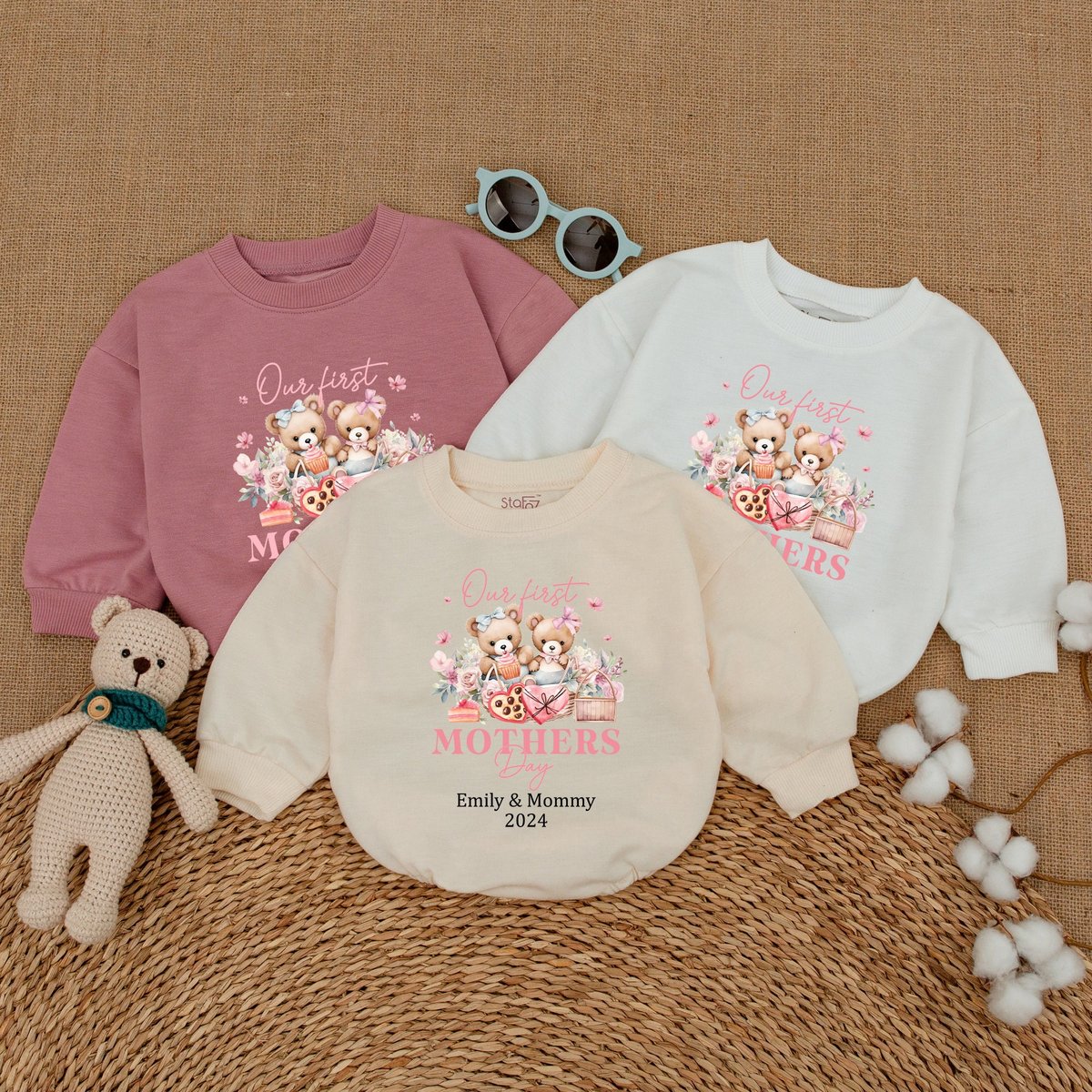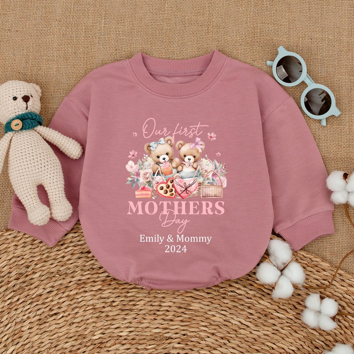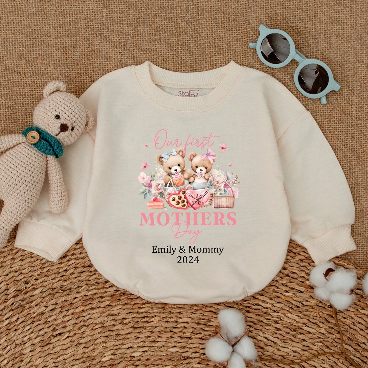 Personalized Cute Bear Mothers Day Baby Romper Our First Mother’s Day Bodysuit Mother’s Day Gift N 170
