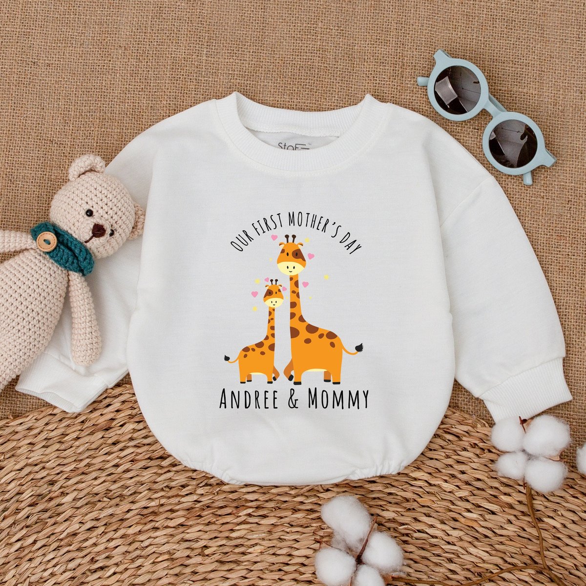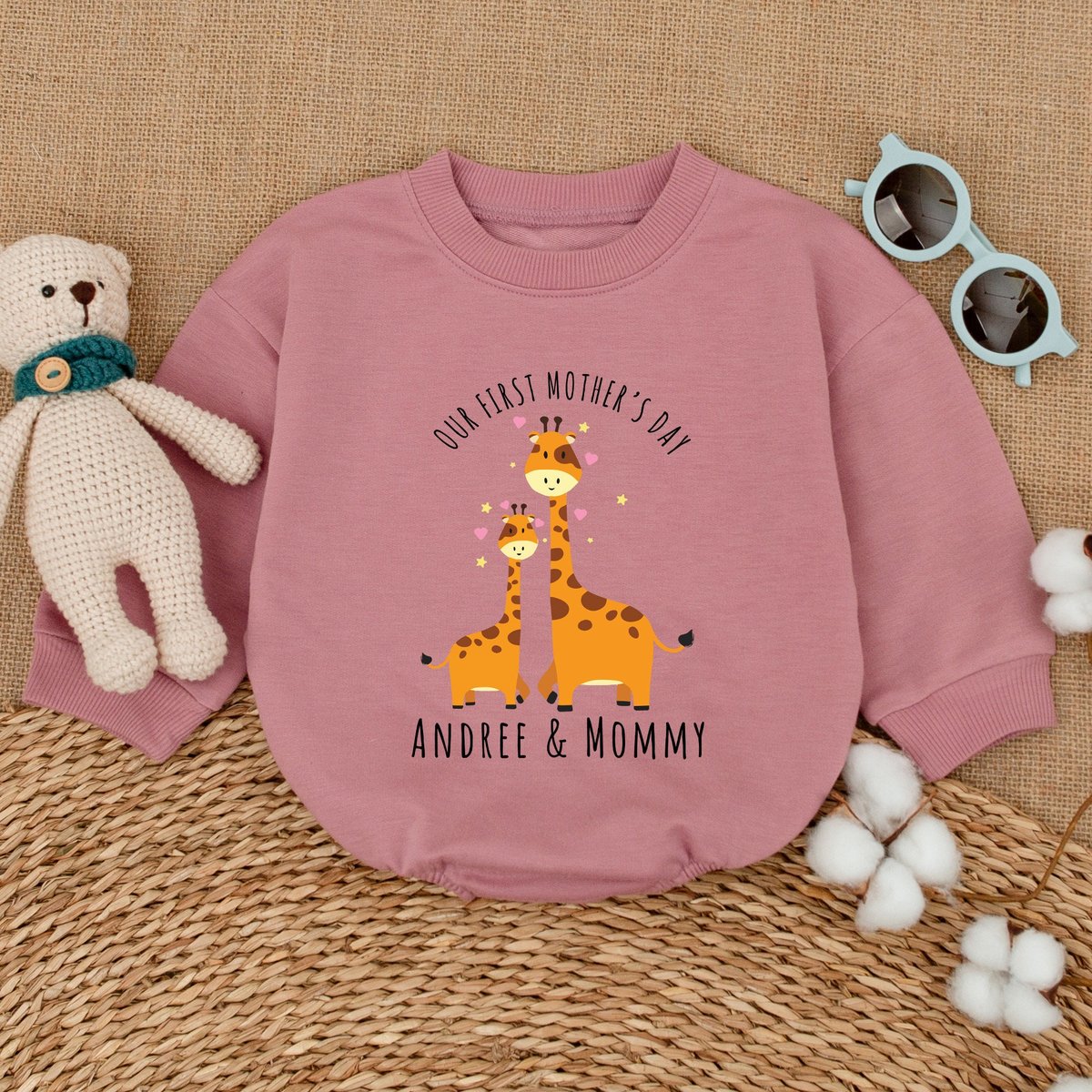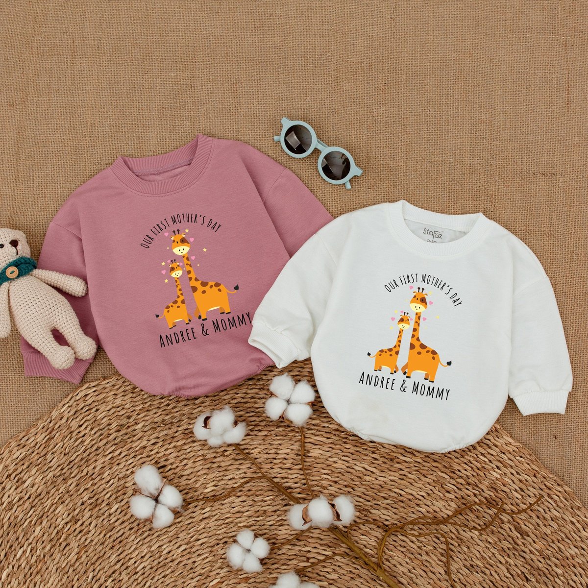 Personalized Cute Giraffes Mother and Baby Romper Our First Mother’s Day Bodysuit Mother’s Day Gif 171