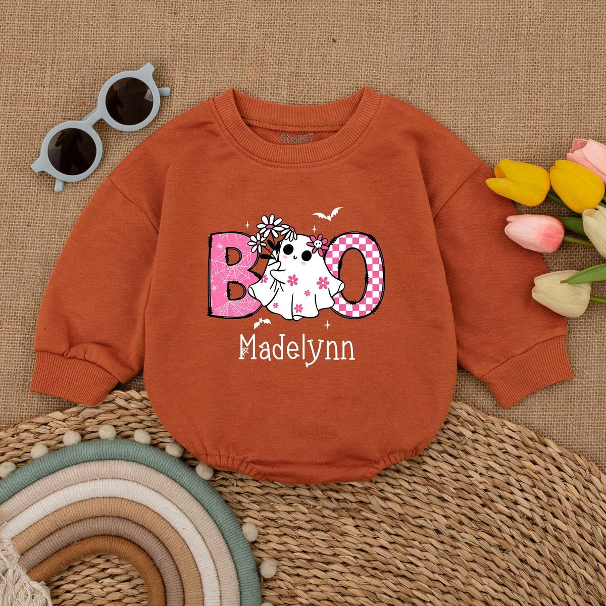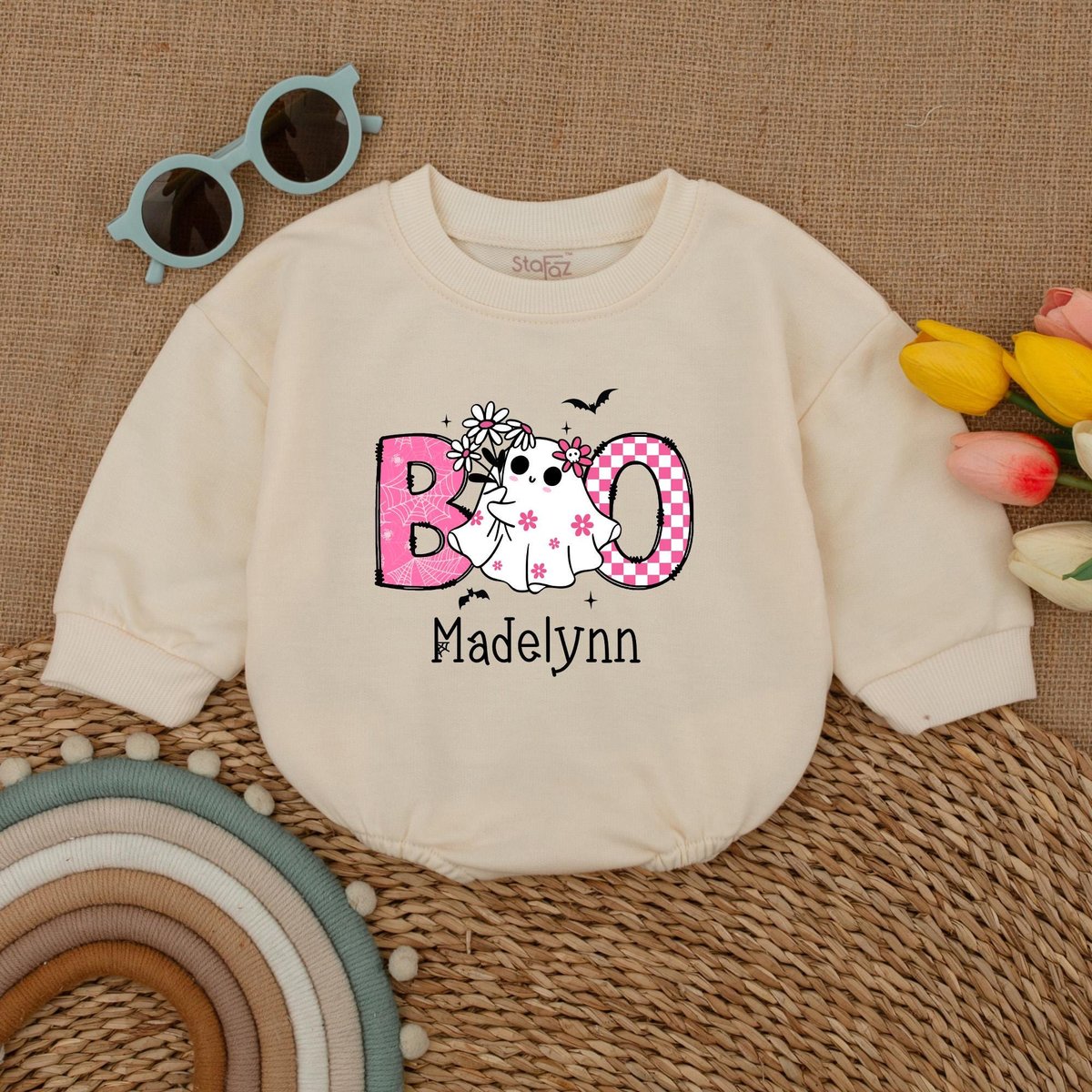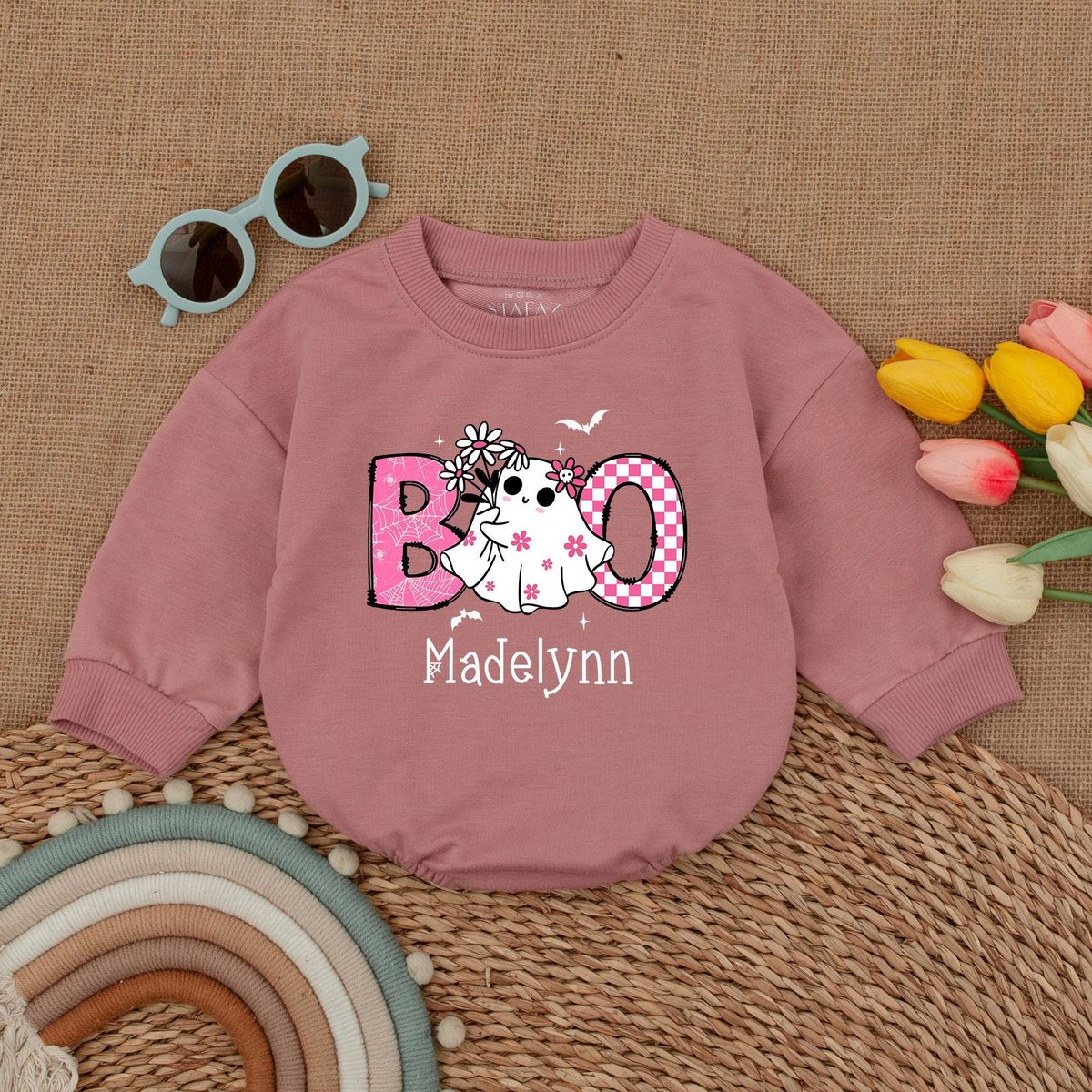 Personalized Cute Pink Boo Baby Romper Halloween Baby Bodysuit First Halloween Baby Outfit Fall Baby 180