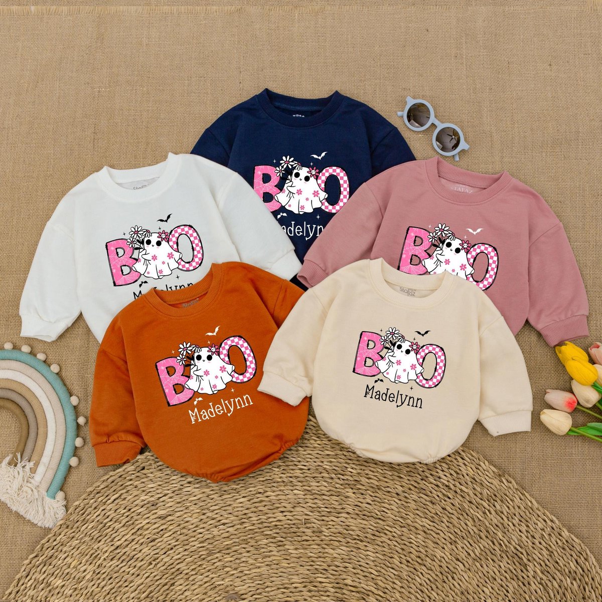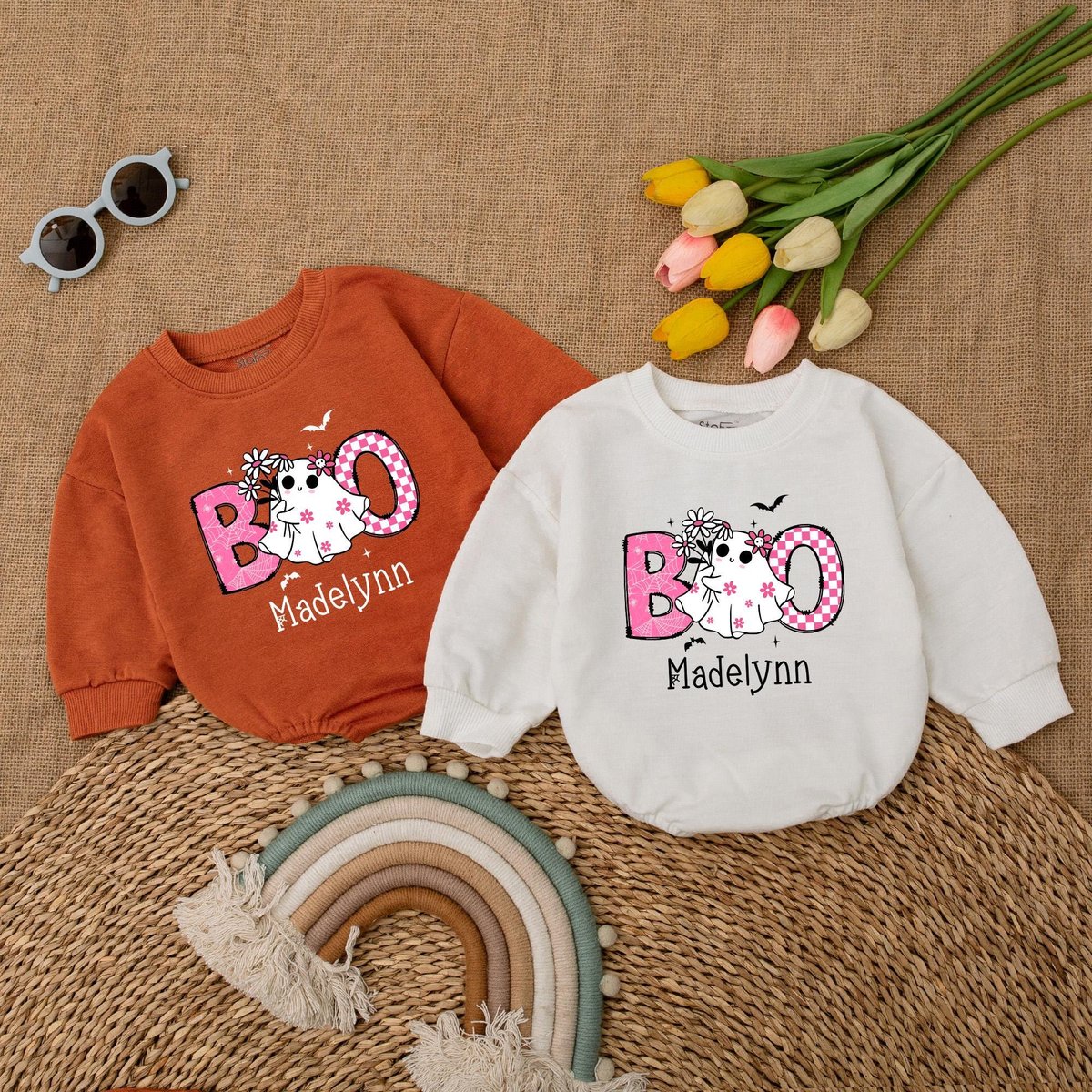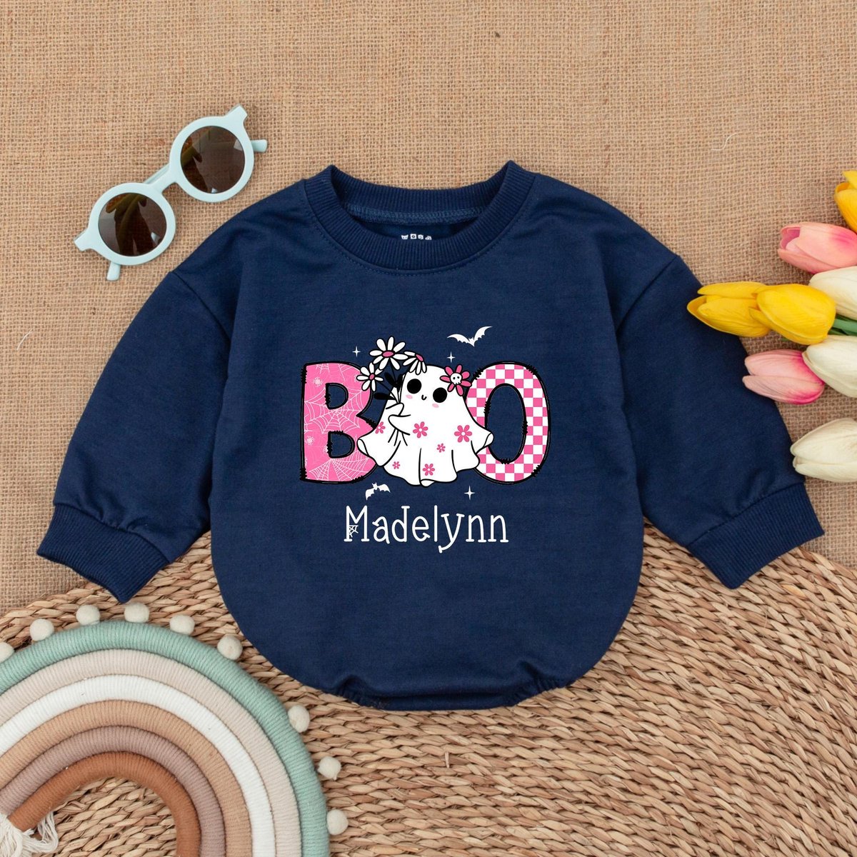 Personalized Cute Pink Boo Baby Romper Halloween Baby Bodysuit First Halloween Baby Outfit Fall Baby 180