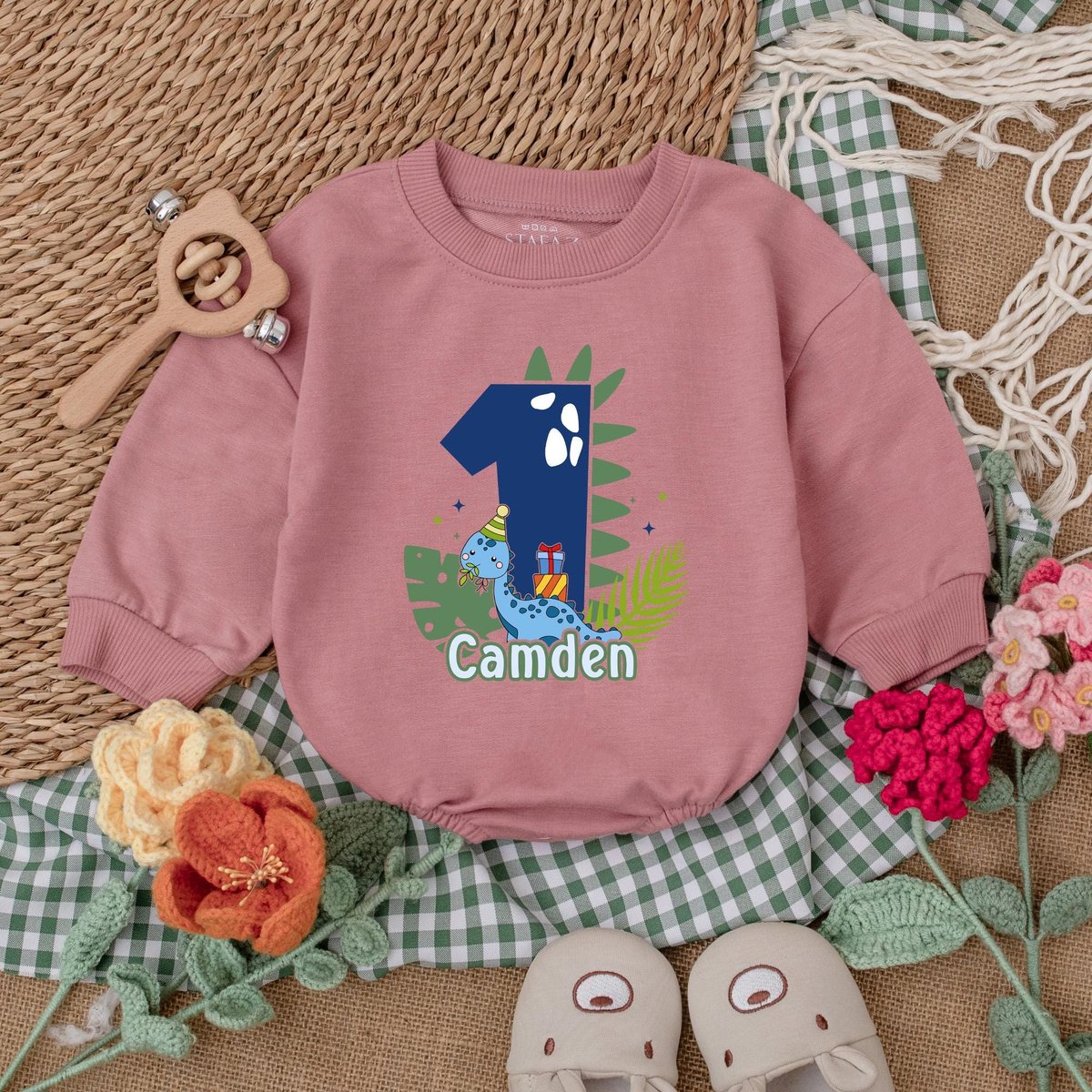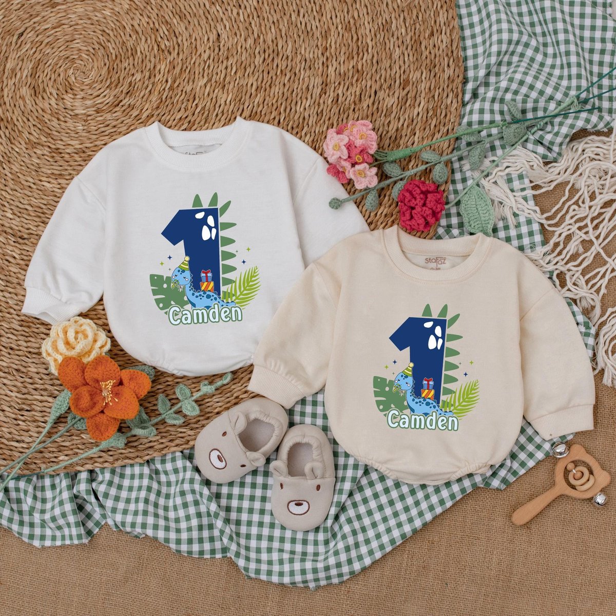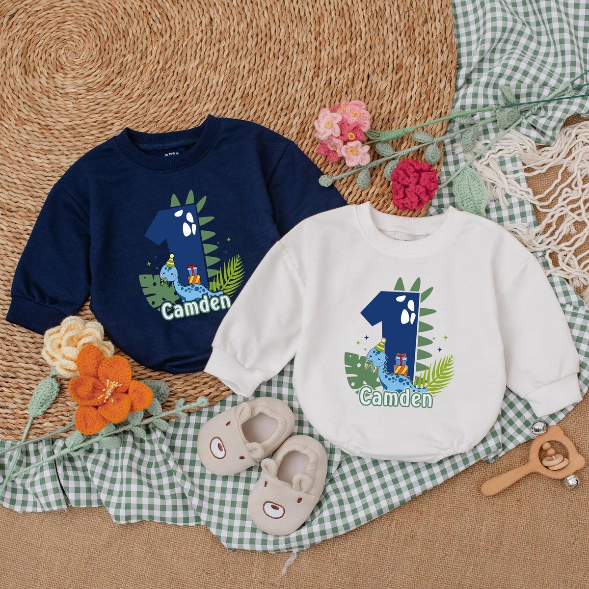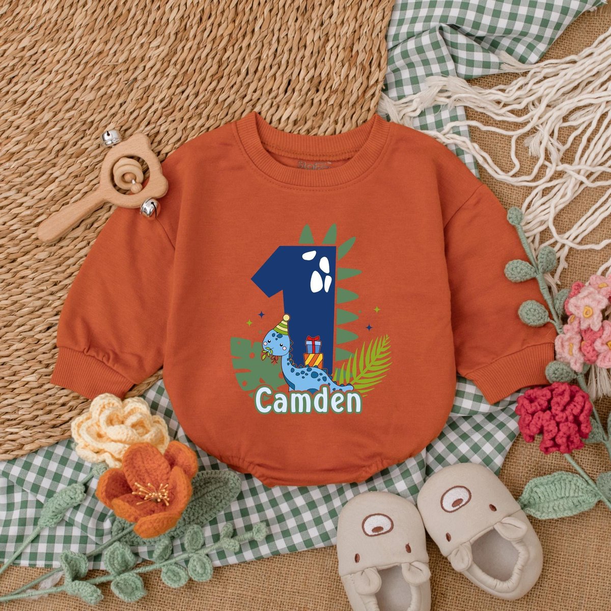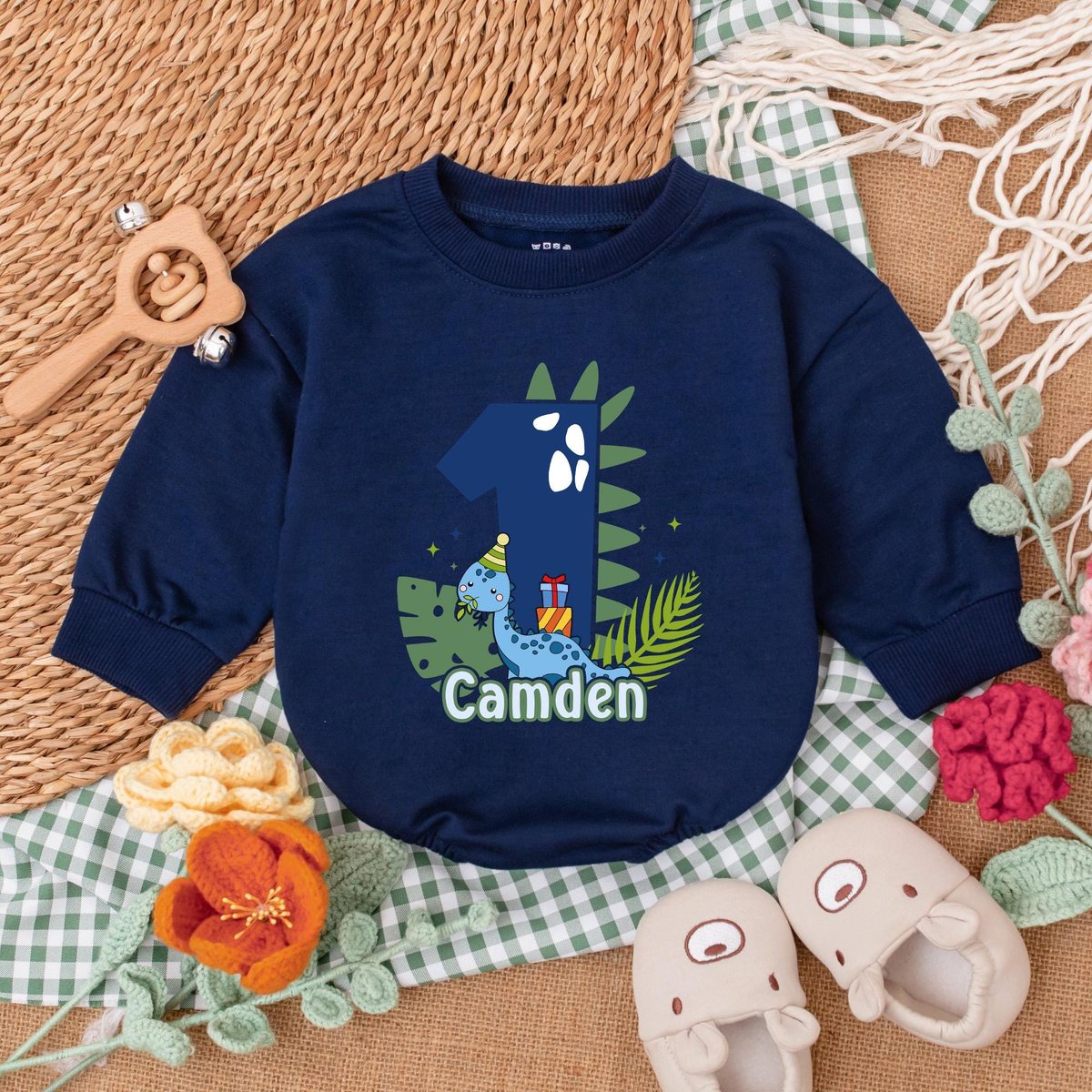 Personalized Dinosaur Birthday Romper One A Saurus Baby Bodysuit Boys First Birthday Outfit Baby Boy 187