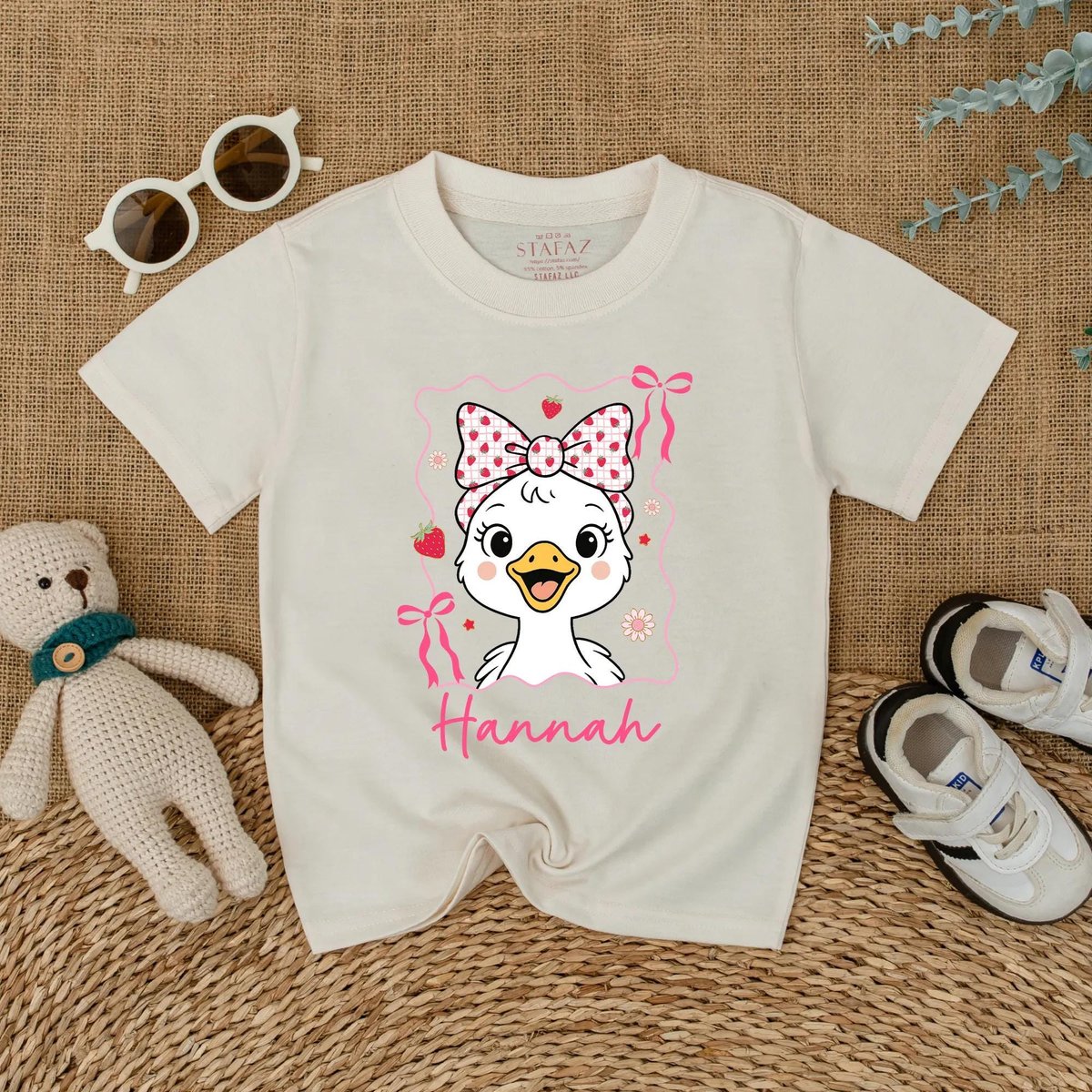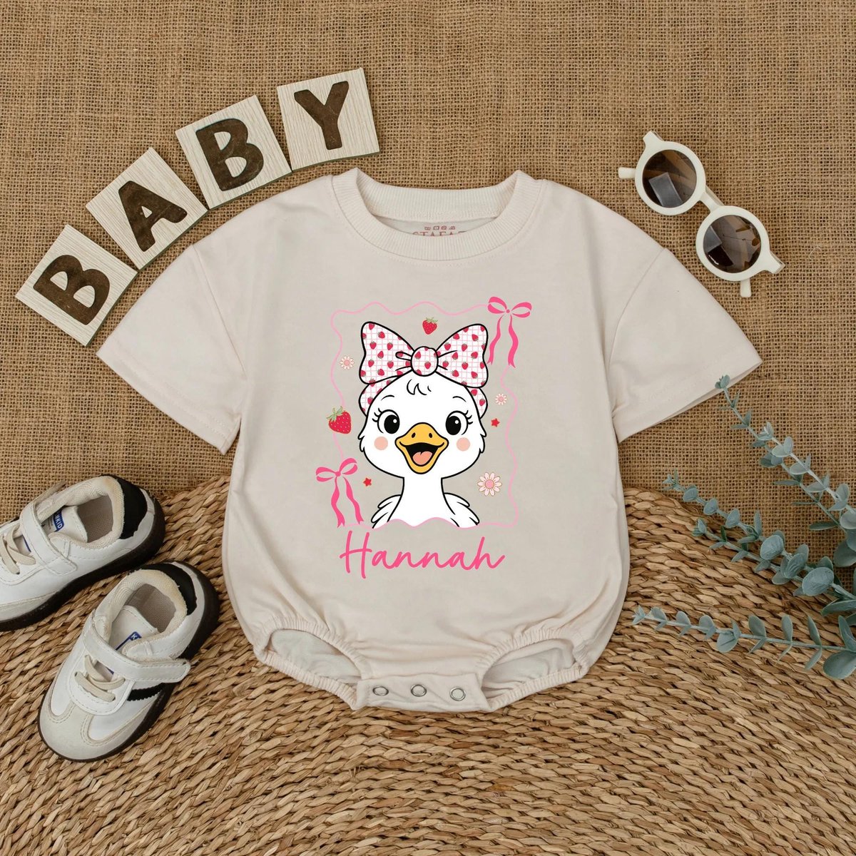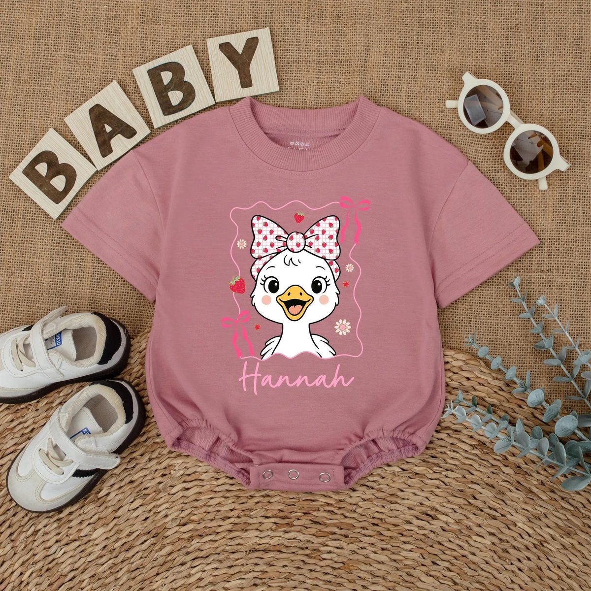 Personalized Cute Pink Bow Goose Baby Romper Summer Strawberry Baby Bodysuit Custom Name Baby Outfit 430
