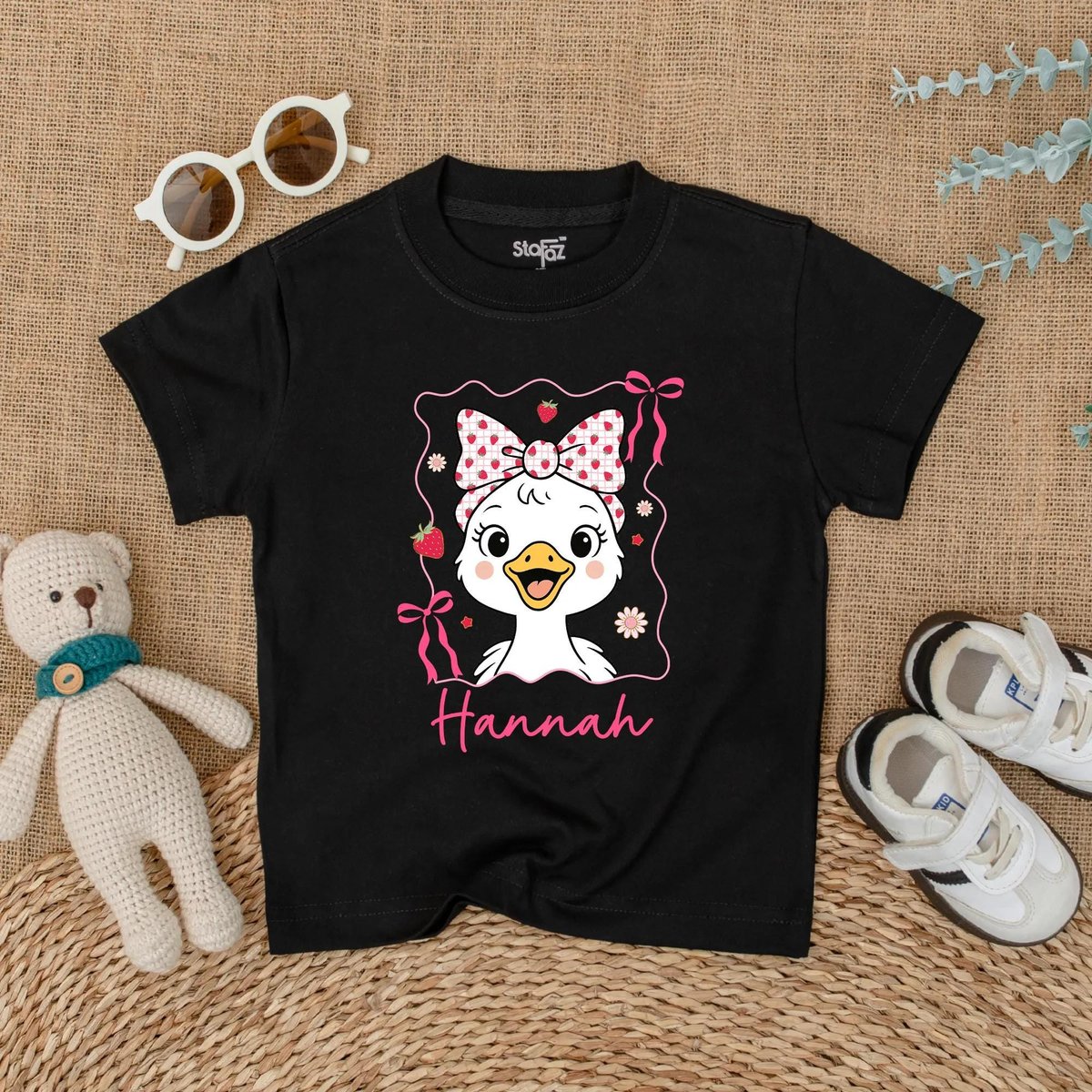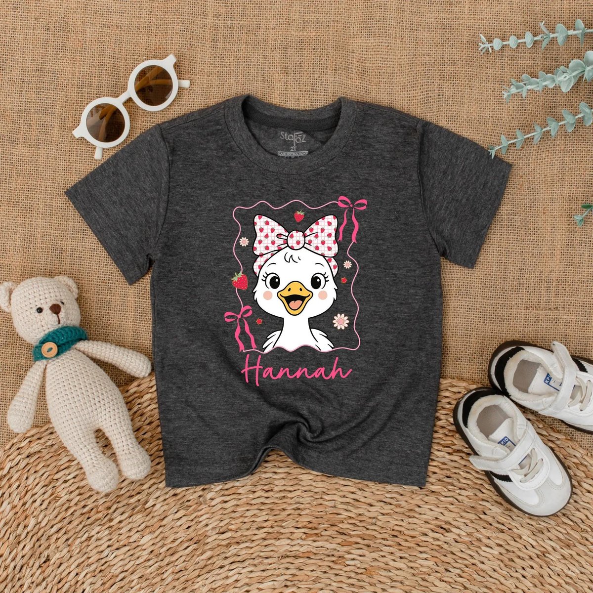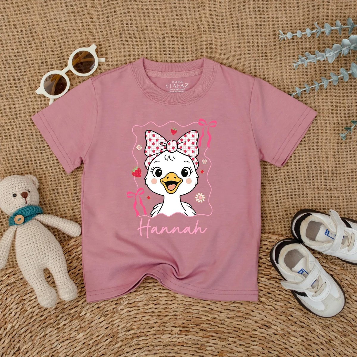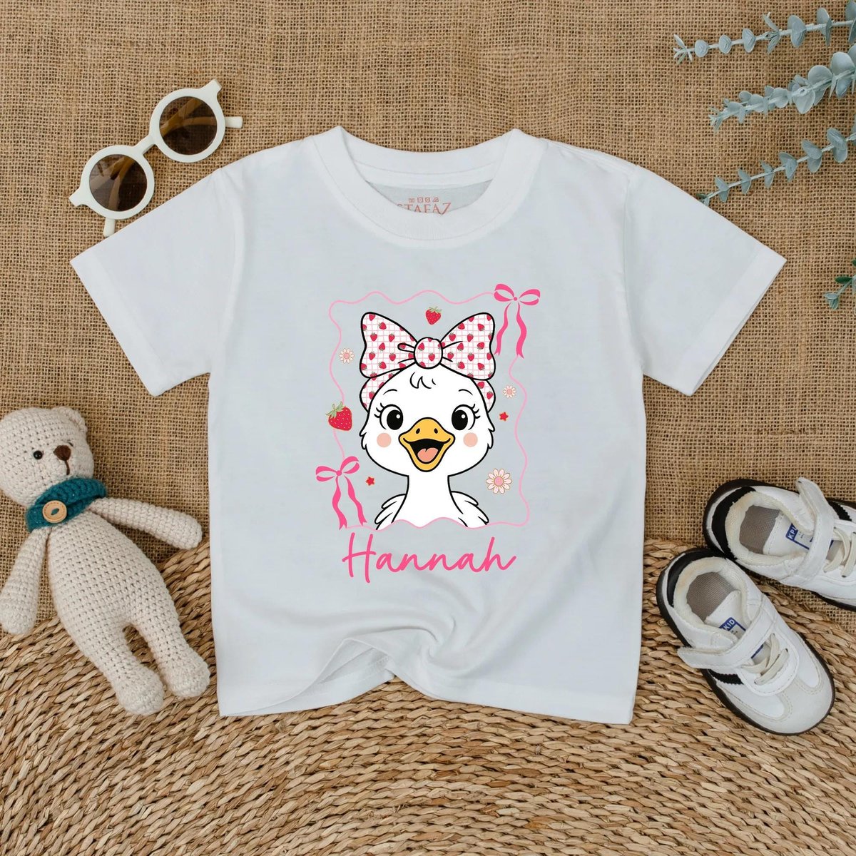 Personalized Cute Pink Bow Goose Baby Romper Summer Strawberry Baby Bodysuit Custom Name Baby Outfit 430