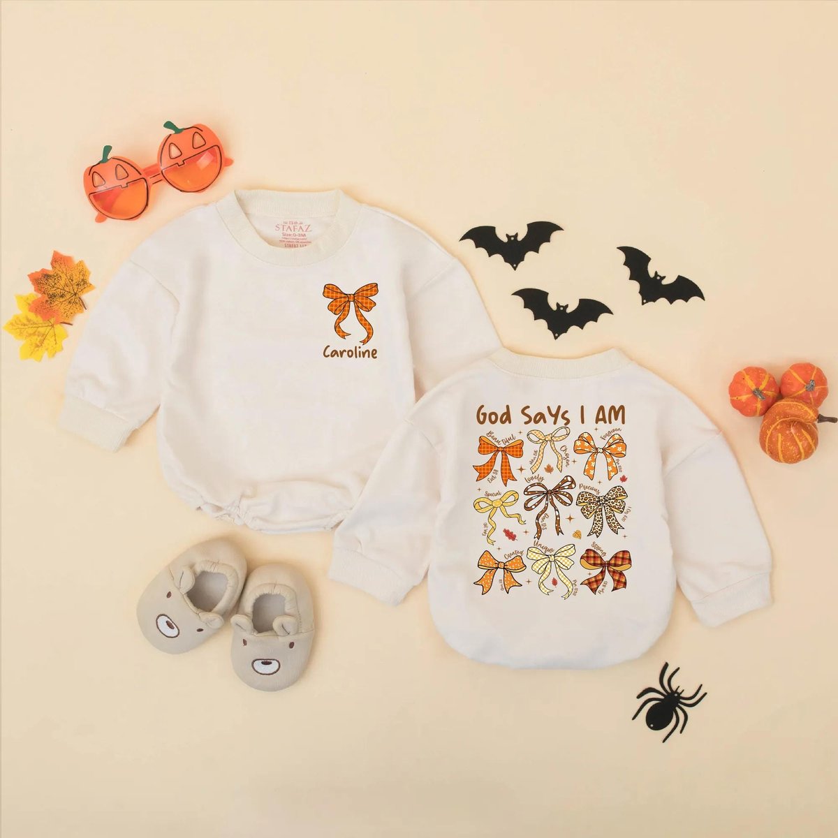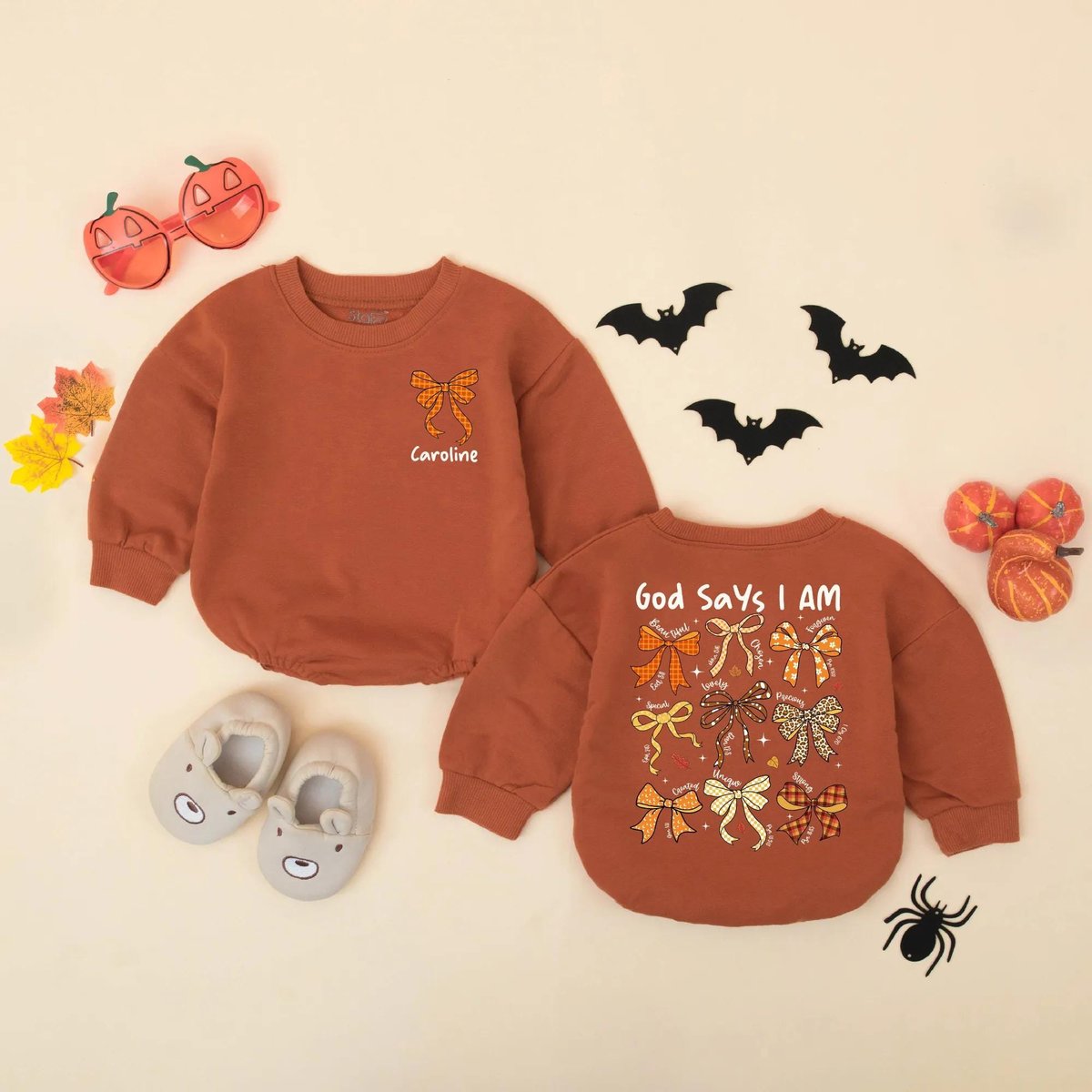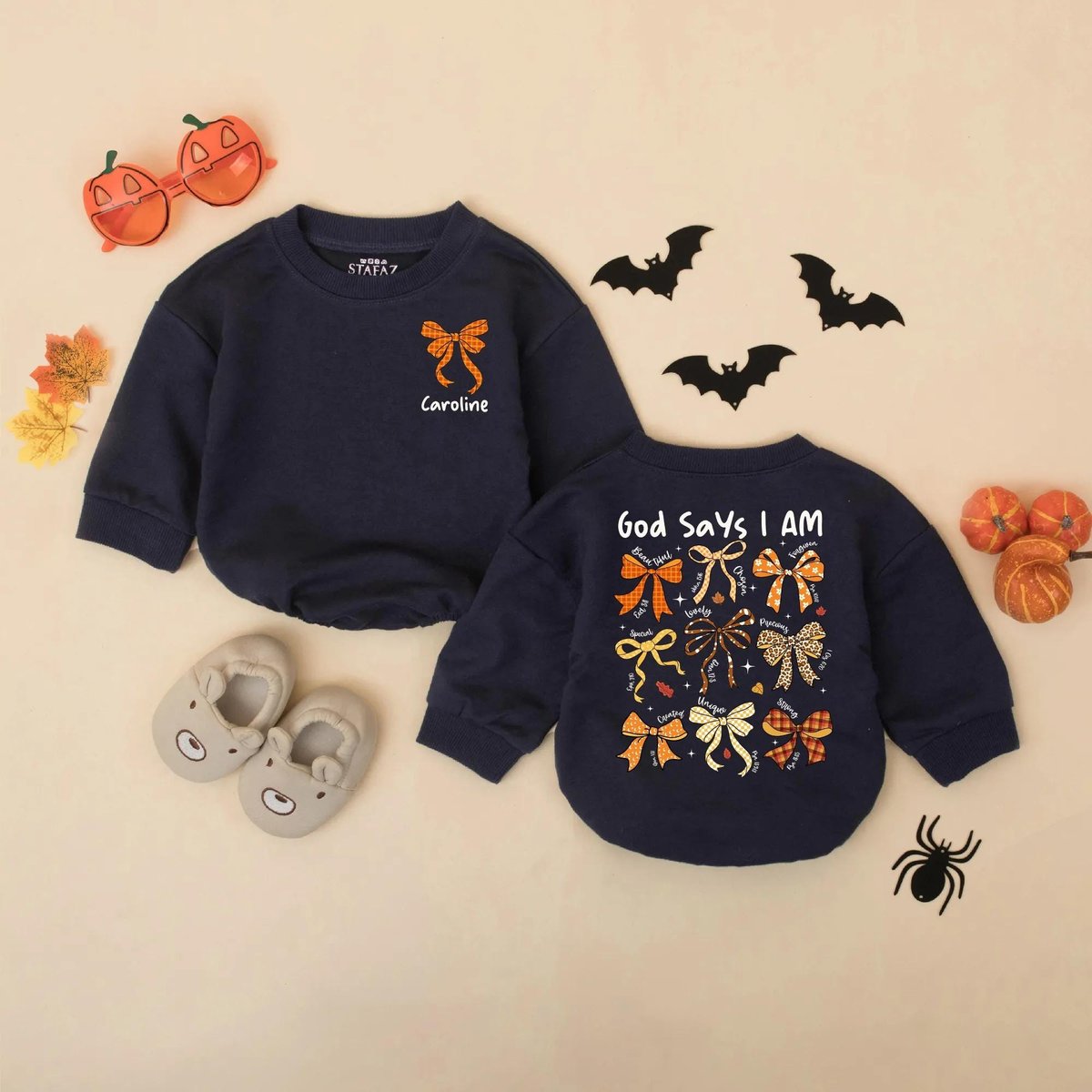 Personalized Fall God Says I Am Baby Romper Religious Sweatshirt for Kids Baby Girl Clothes Christia 435