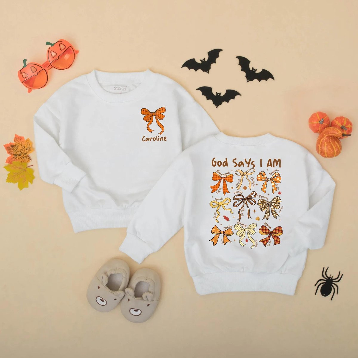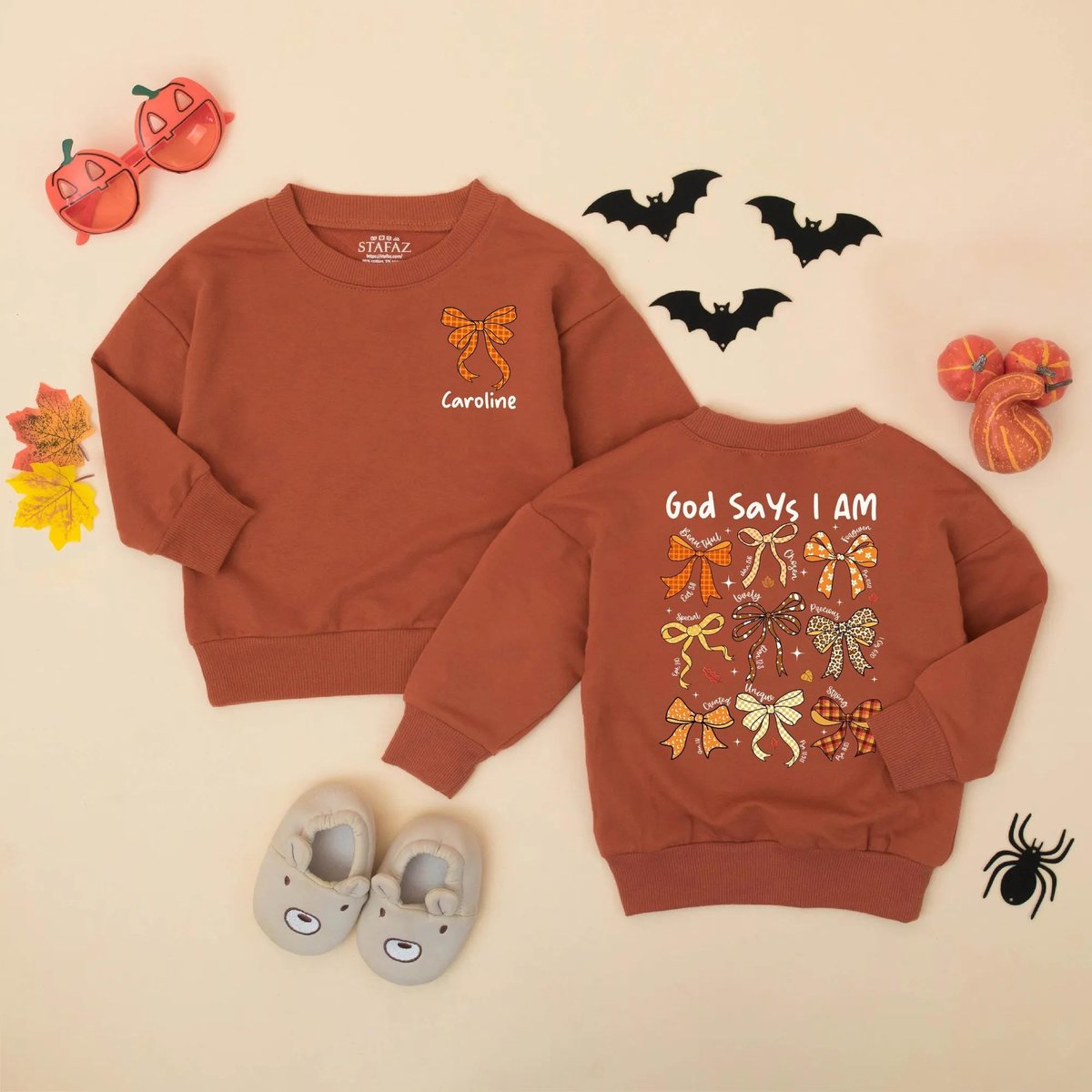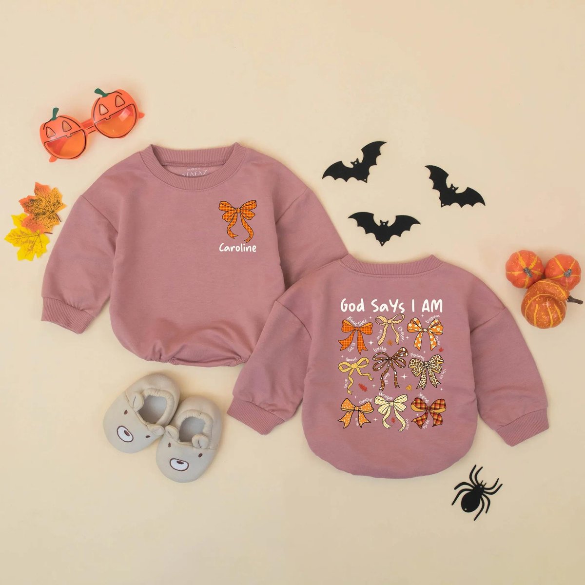 Personalized Fall God Says I Am Baby Romper Religious Sweatshirt for Kids Baby Girl Clothes Christia 435