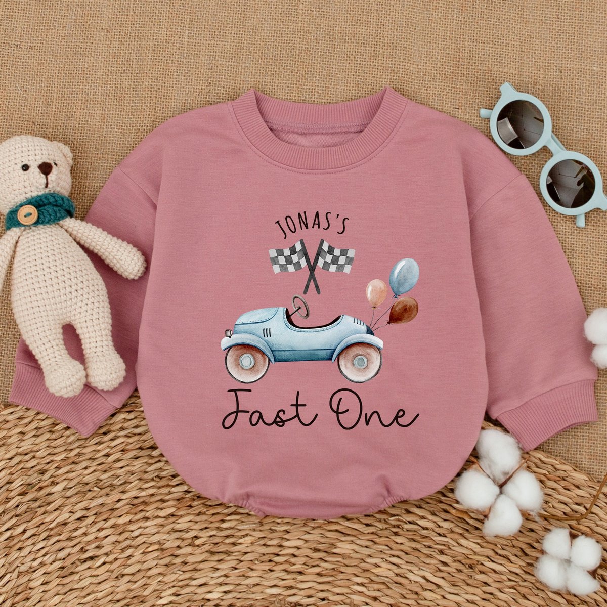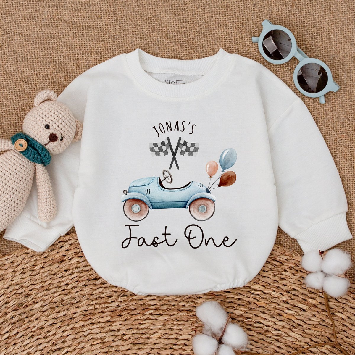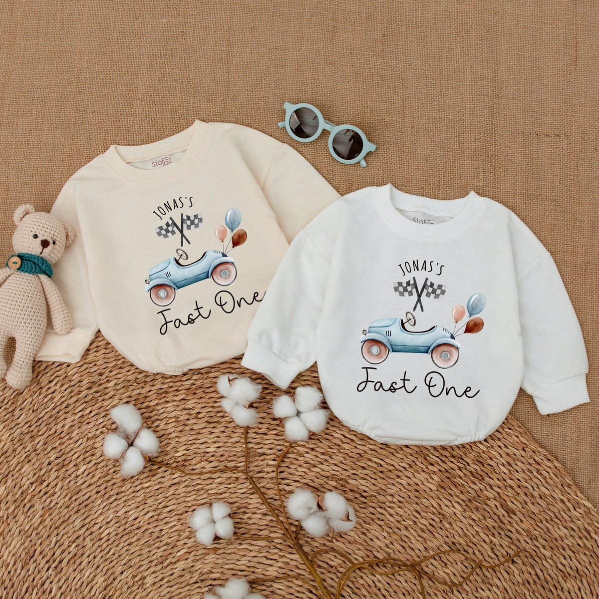 Personalized Fast One Birthday Romper Checkered Flag Birthday Bodysuit Race Car 1st Birthday First B 170