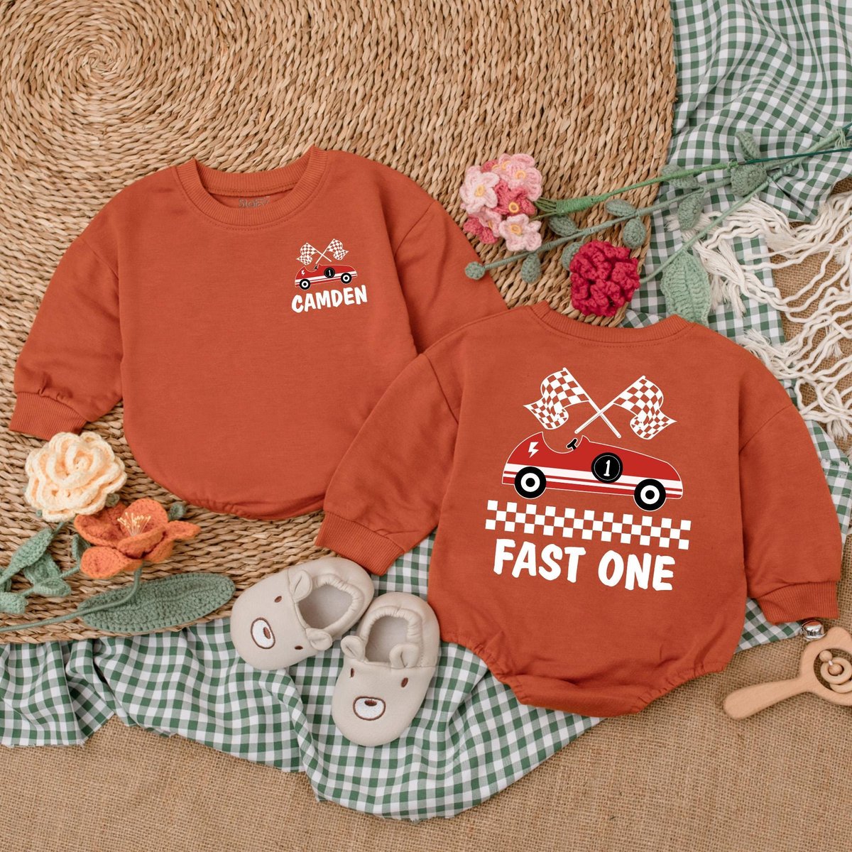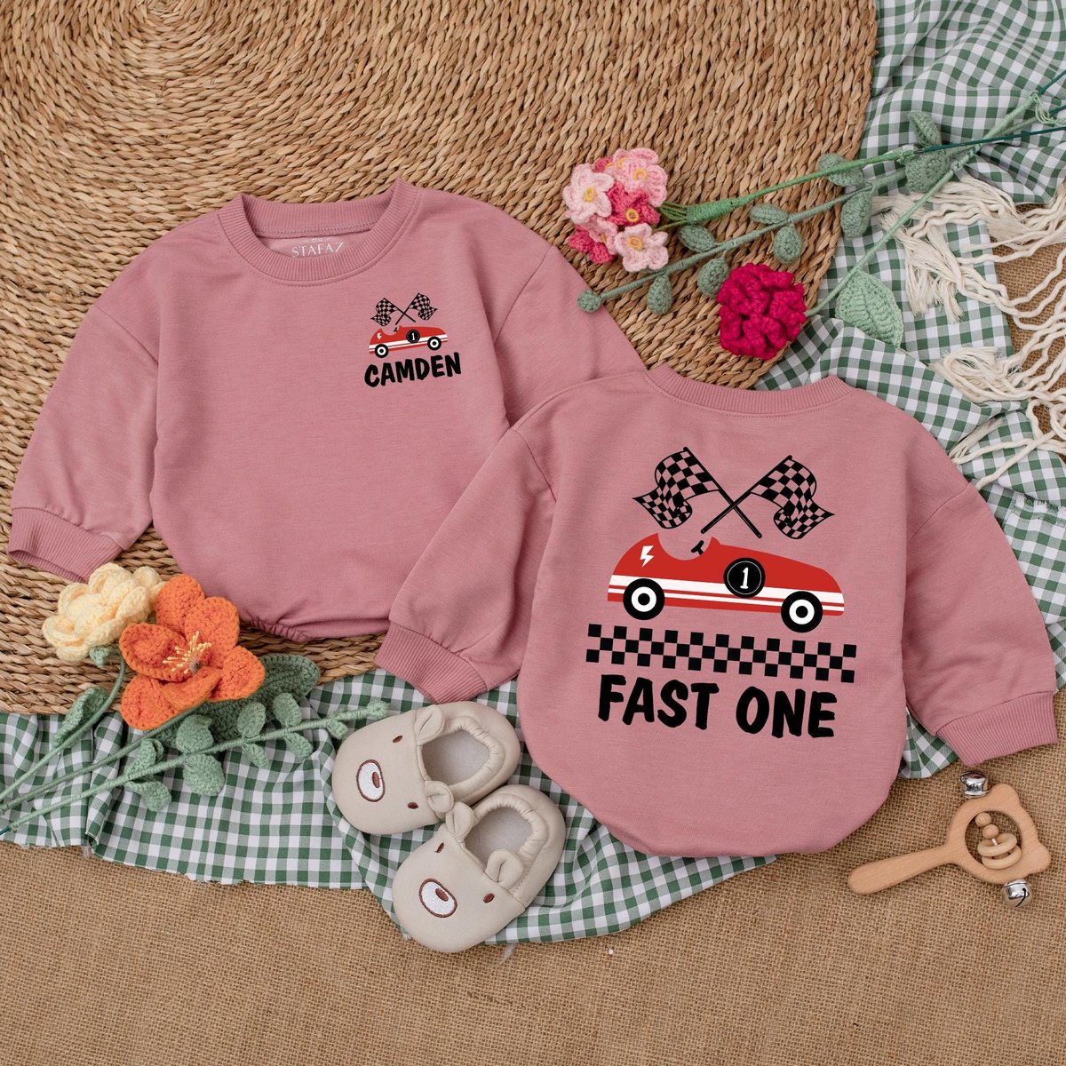 Personalized Fast One Birthday Romper Racecar Birthday Bodysuit Boys First Birthday Outfit Race Car 185