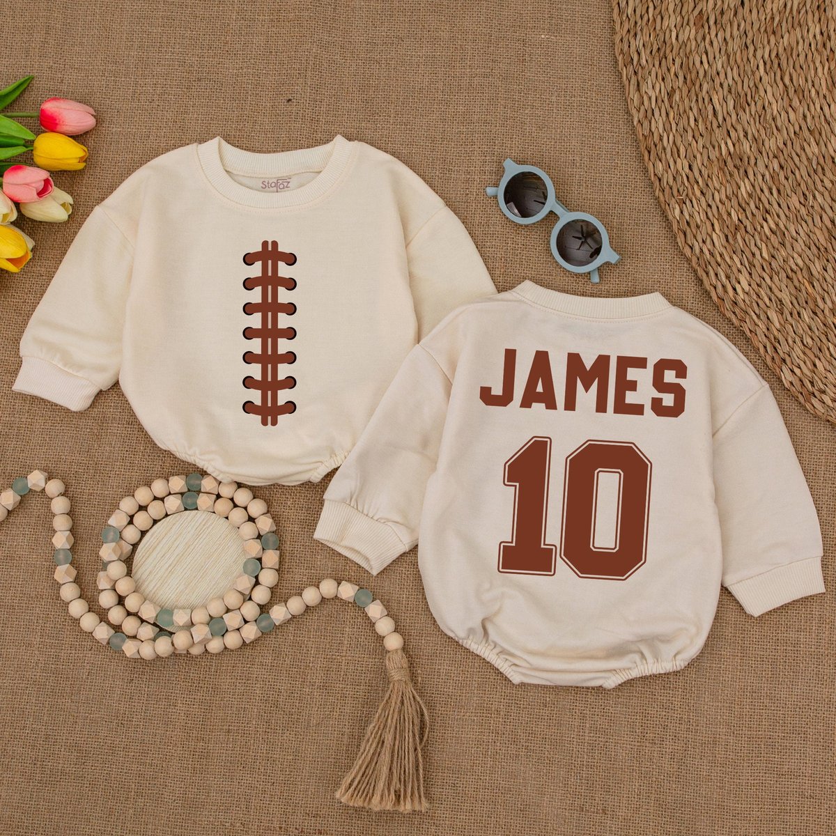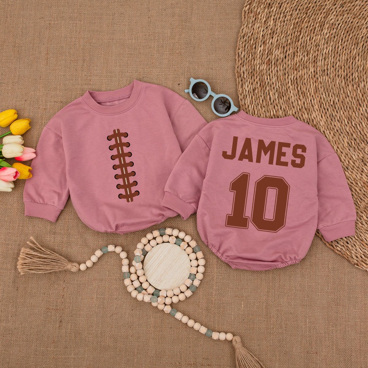 Personalized Football Baby Romper Custom Name and Number Game Day Baby Bodysuit Gameday Outfit Baby 173
