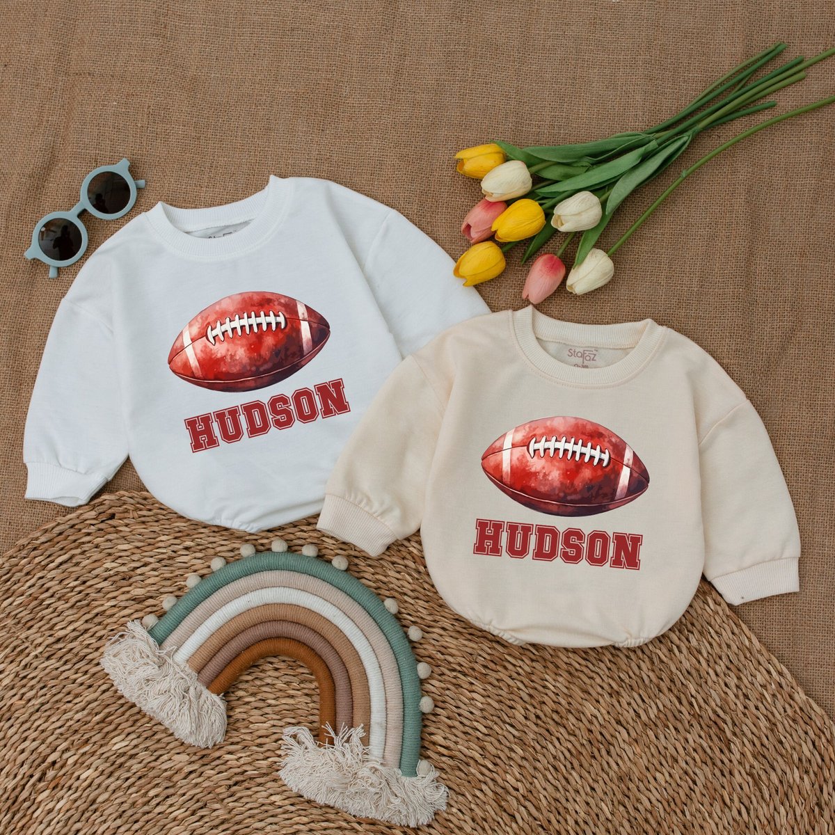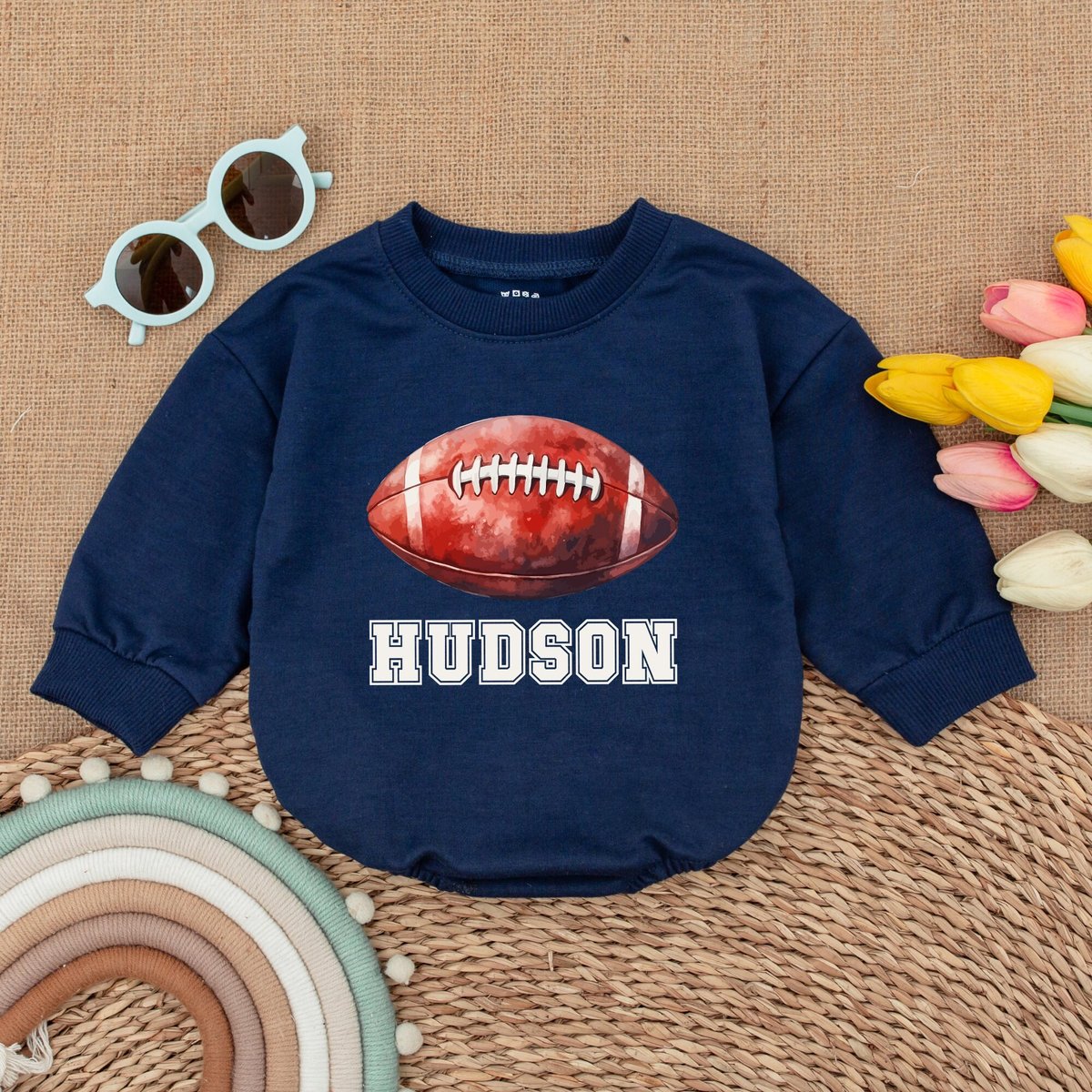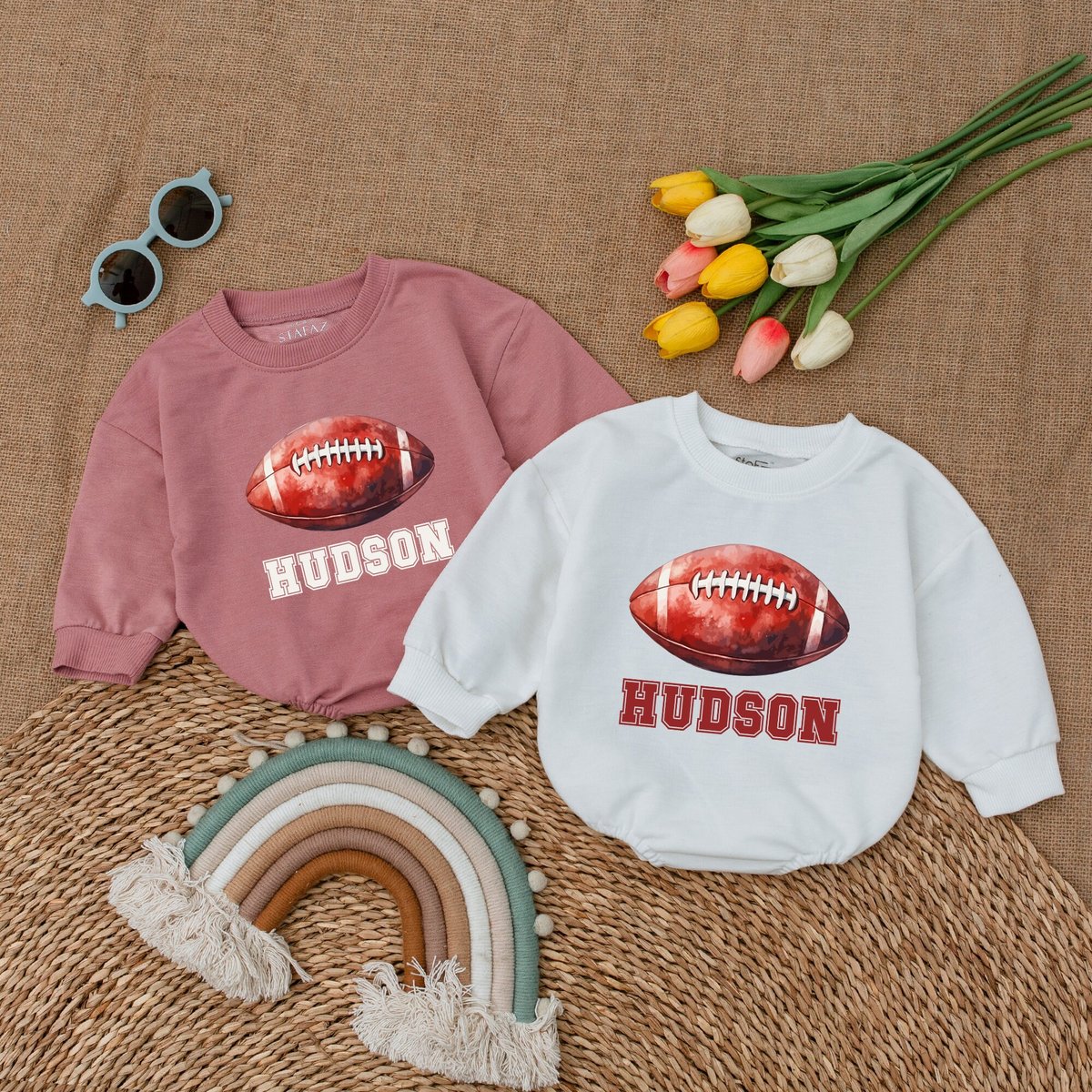 Personalized Football Baby Romper Custom Name Game Day Baby Bodysuit Gameday Outfit Baby Bubble Romp 175