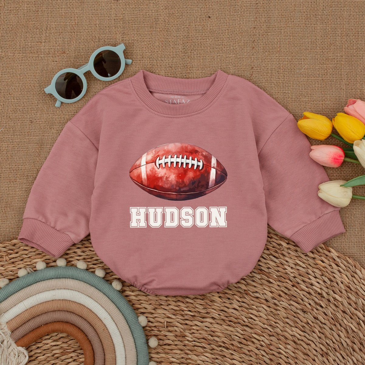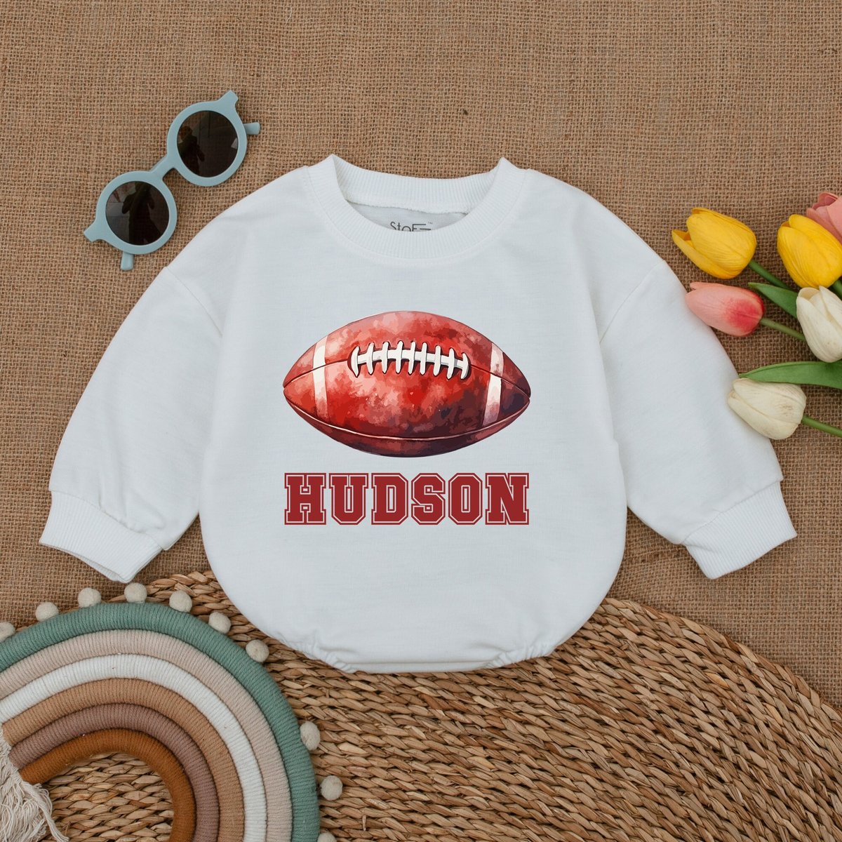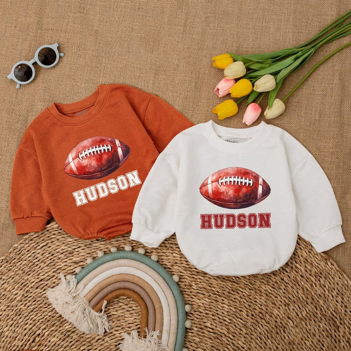 Personalized Football Baby Romper Custom Name Game Day Baby Bodysuit Gameday Outfit Baby Bubble Romp 175