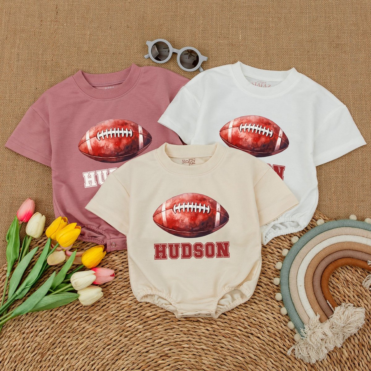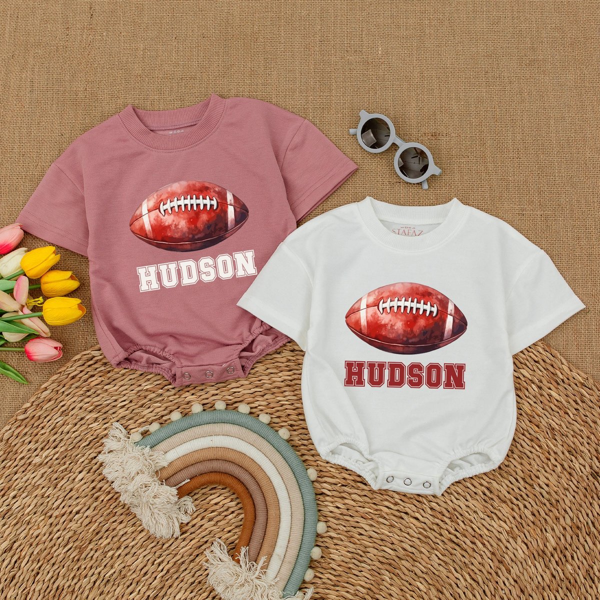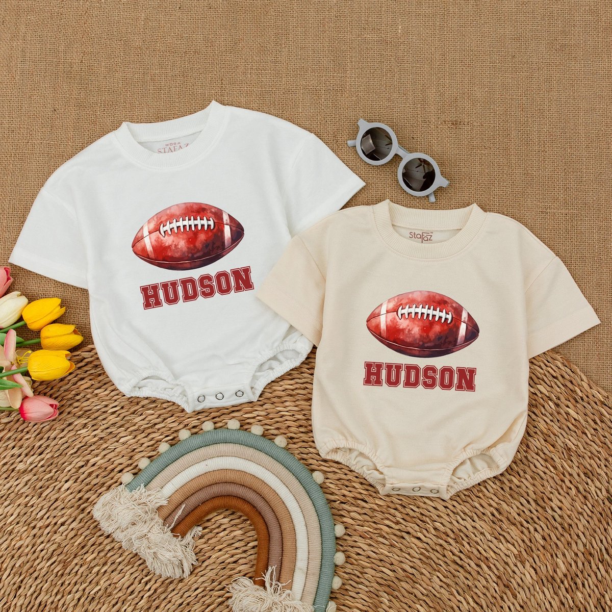 Personalized Football Baby Romper Custom Name Game Day Baby Bodysuit Gameday Outfit Short Sleeve Rom 175