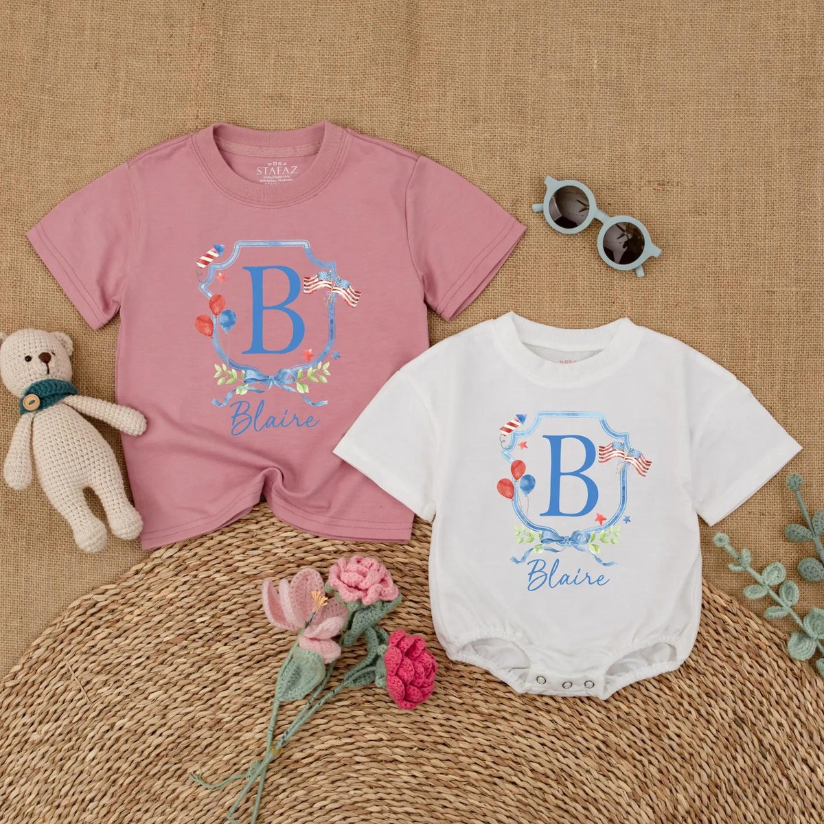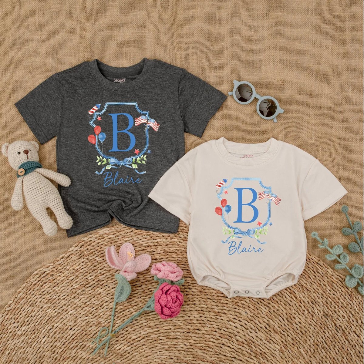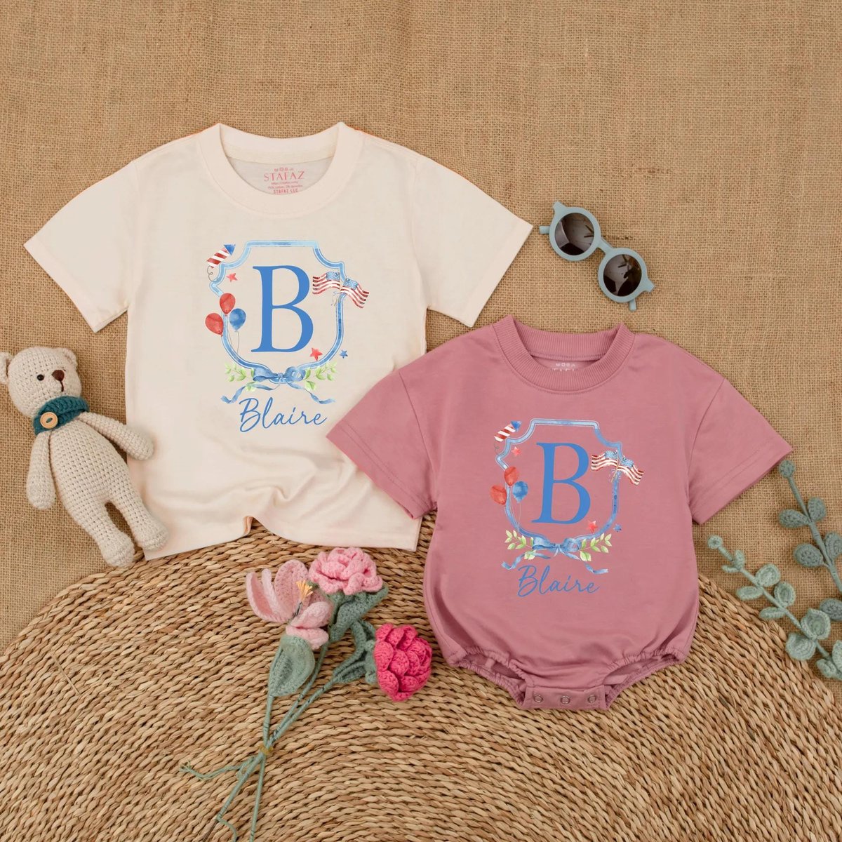 Personalized Fourth of July Baby Romper Custom Name Patriotic Toddler Shirt Red White Blue Independe 429