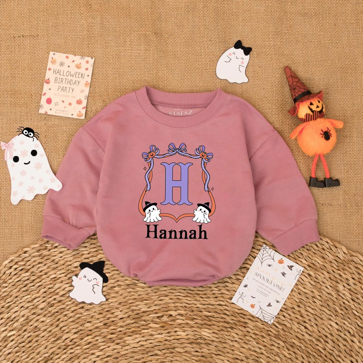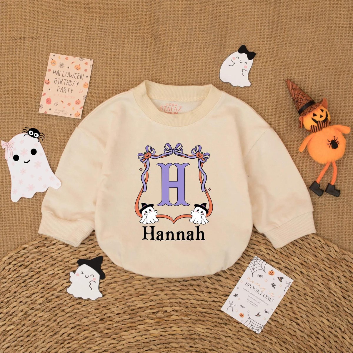 Personalized Girl Halloween Baby Romper Halloween Baby Girl’s Bodysuit Cute Little Boo Baby Outfit 433