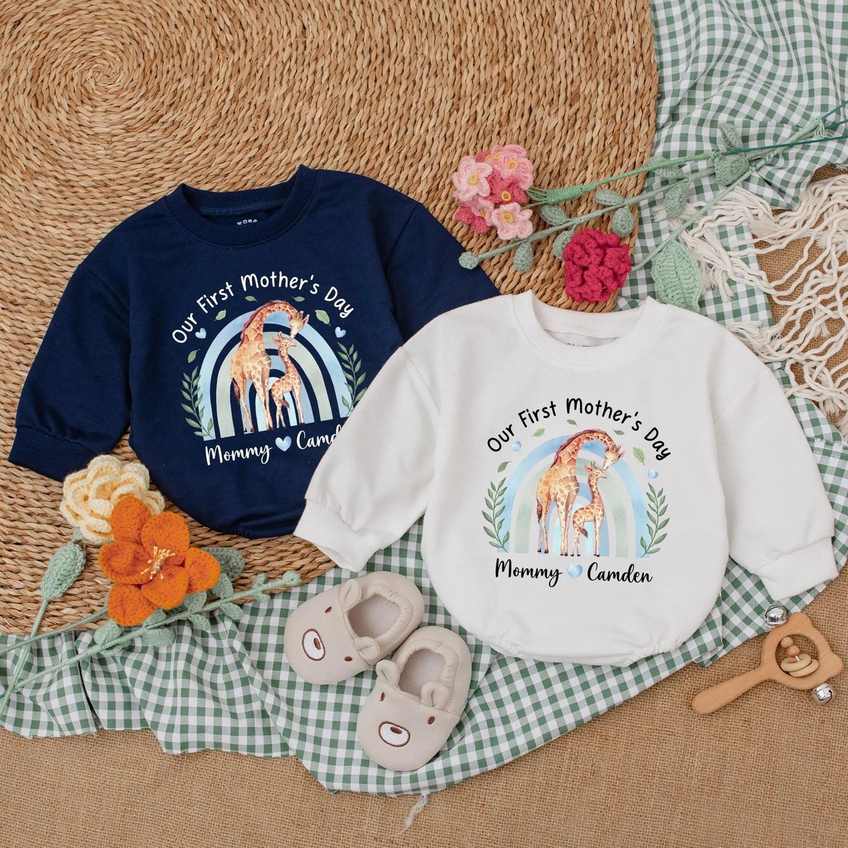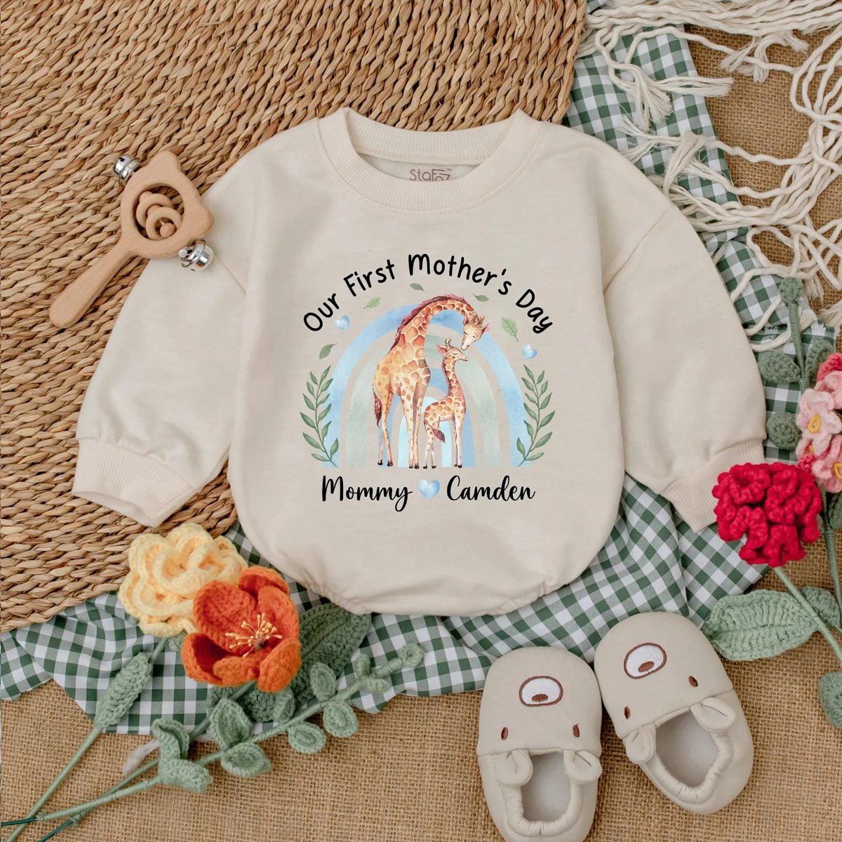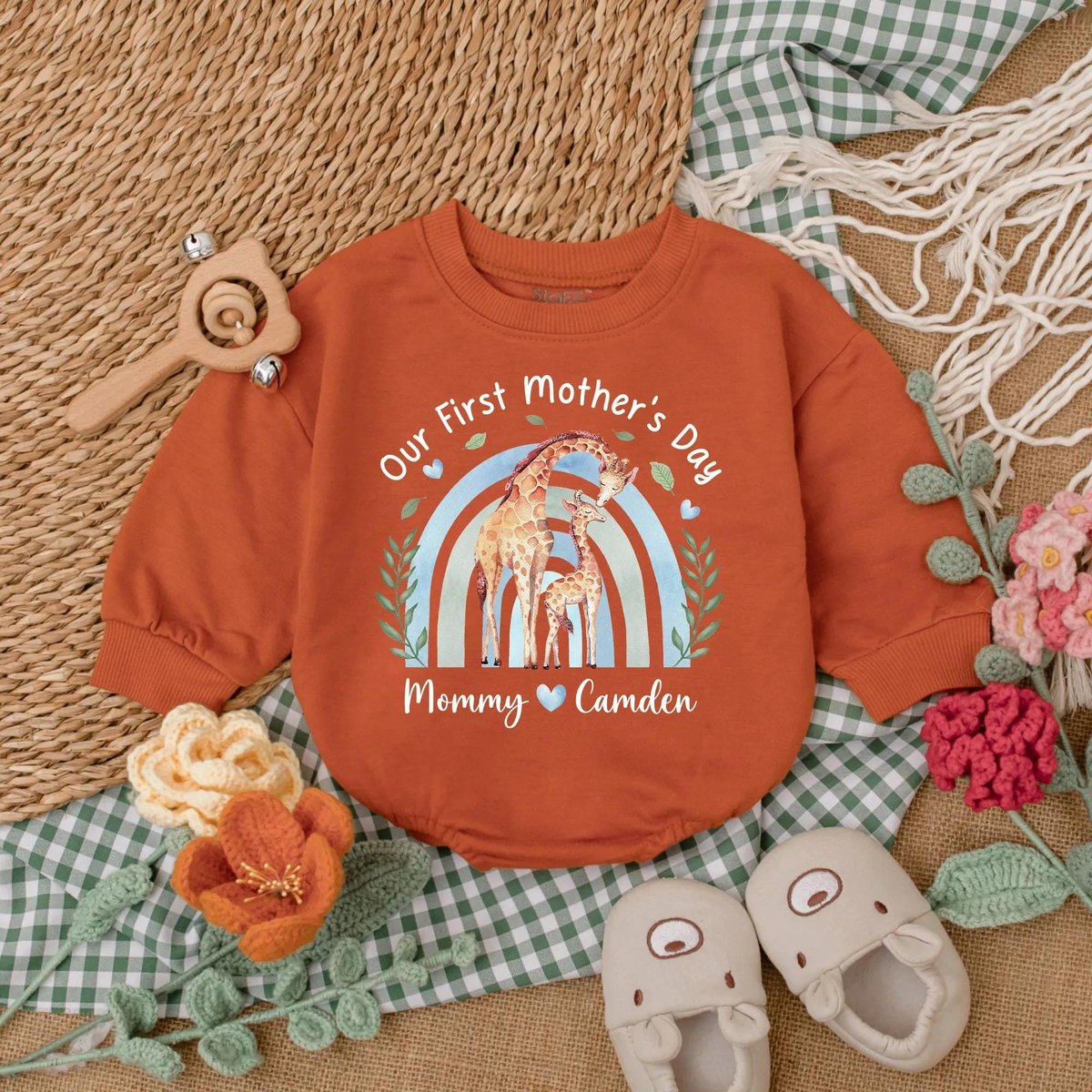 Personalized Giraffe First Mothers Day Romper Custom Baby Bodysuit with Name Mommy and Me Outfit Per 188