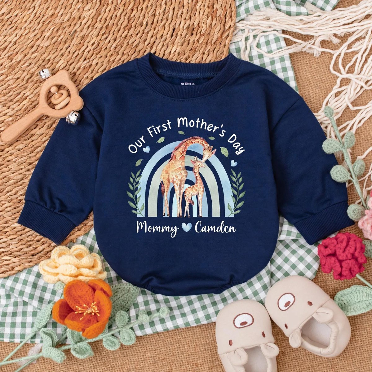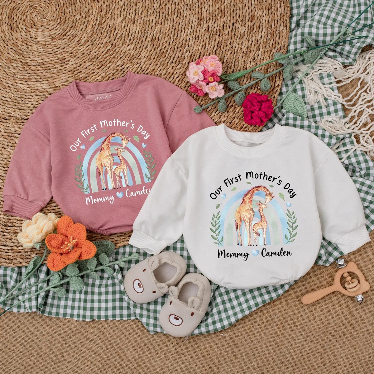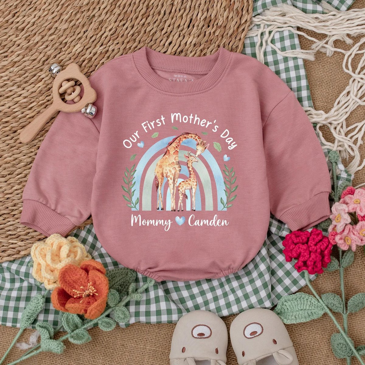 Personalized Giraffe First Mothers Day Romper Custom Baby Bodysuit with Name Mommy and Me Outfit Per 188