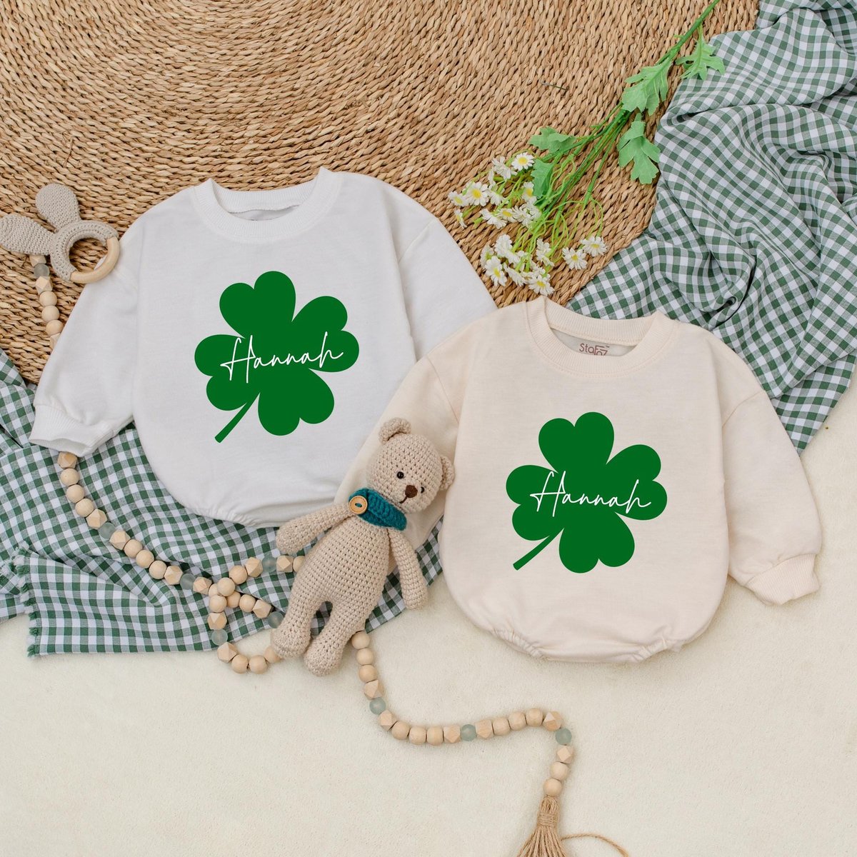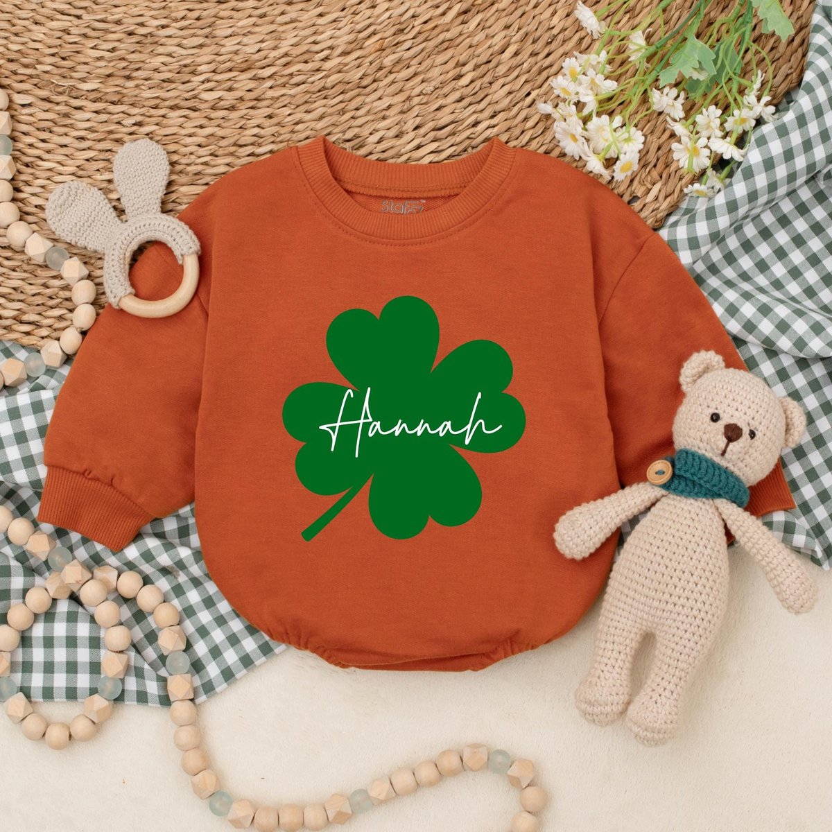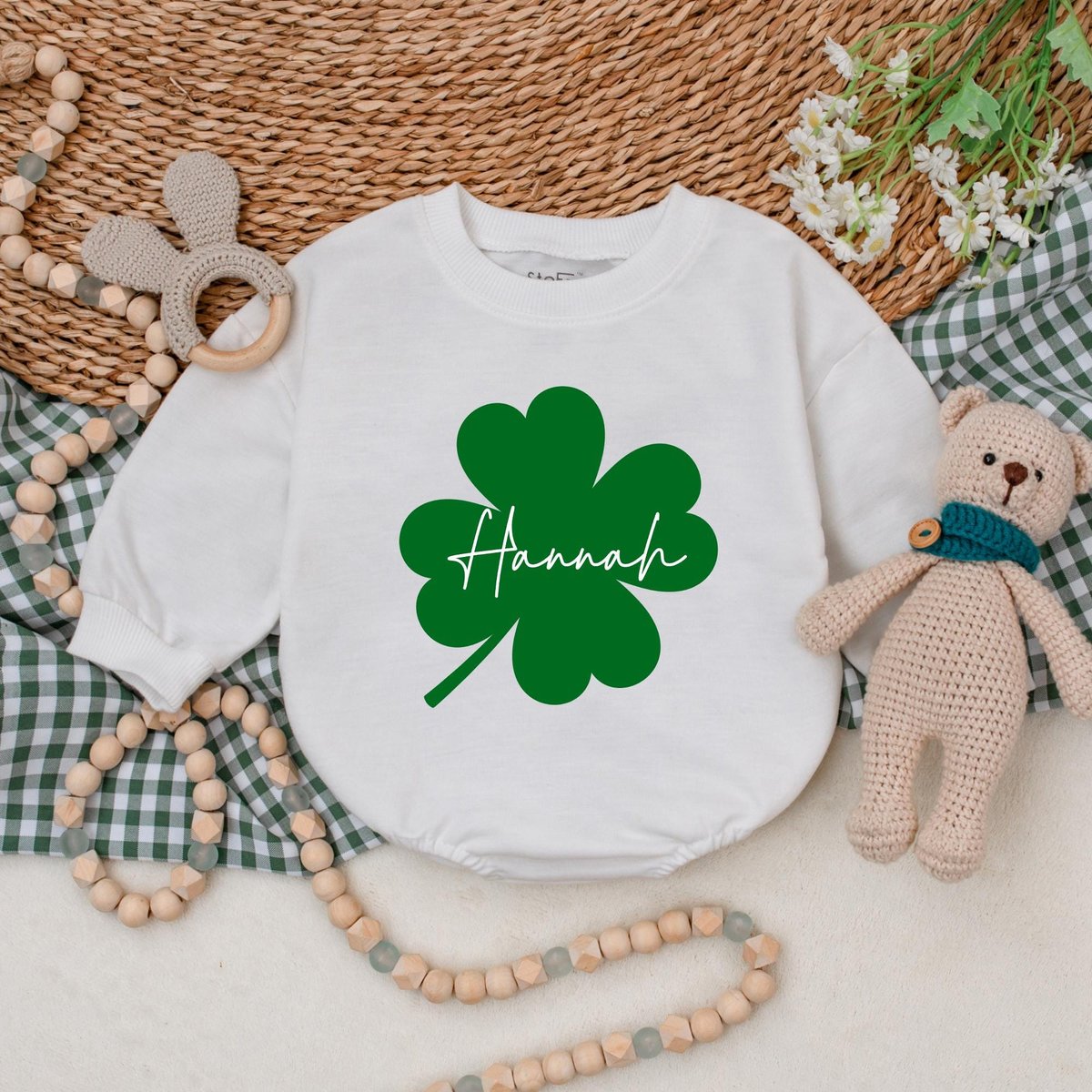 Personalized Green Clover Baby Romper Custom St Patrick’s Day Bodysuit Baby Patricks Day Outfit Fir 186