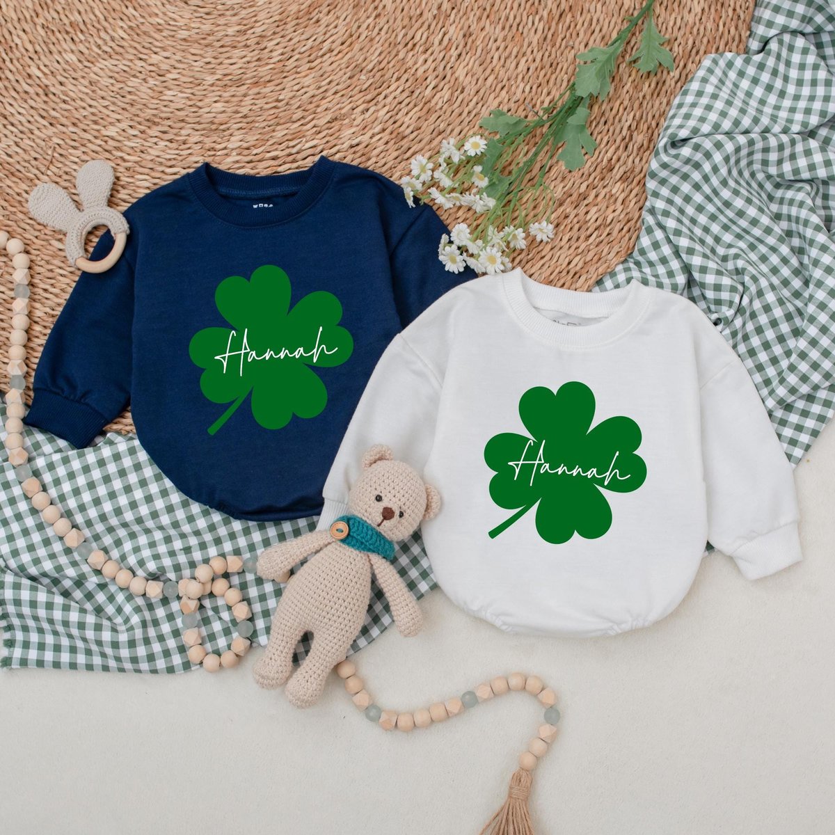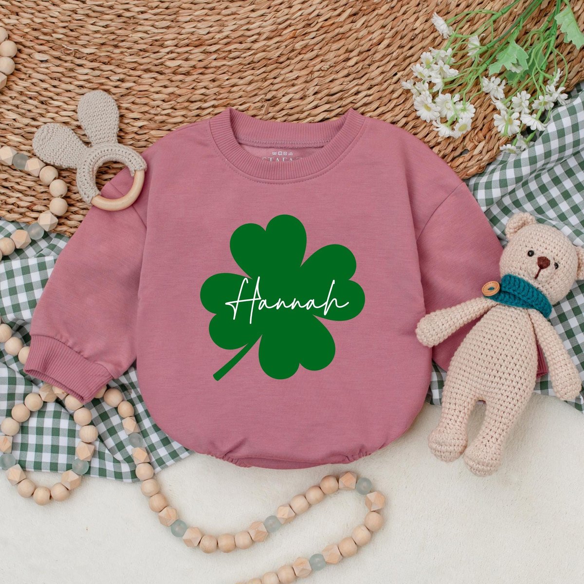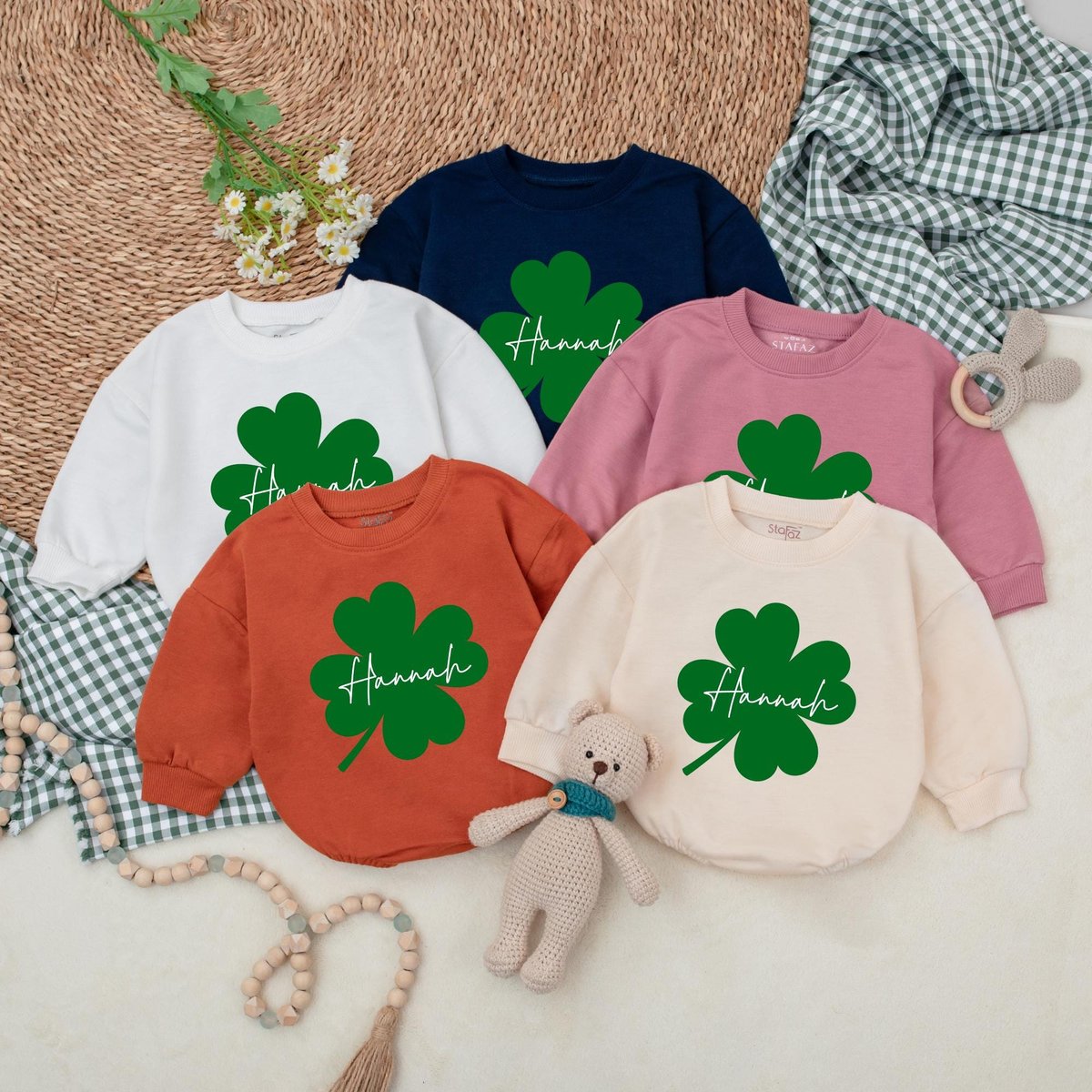 Personalized Green Clover Baby Romper Custom St Patrick’s Day Bodysuit Baby Patricks Day Outfit Fir 186
