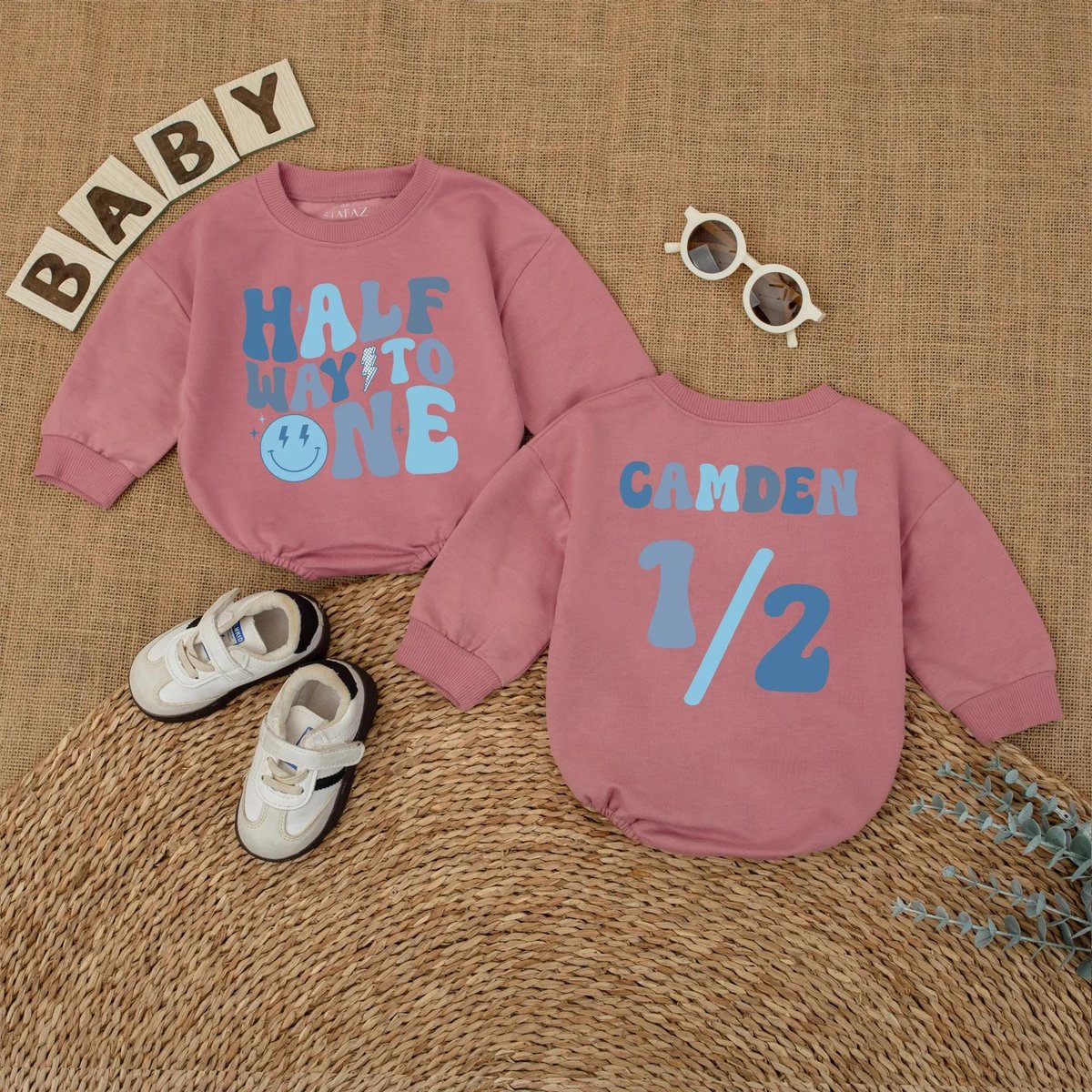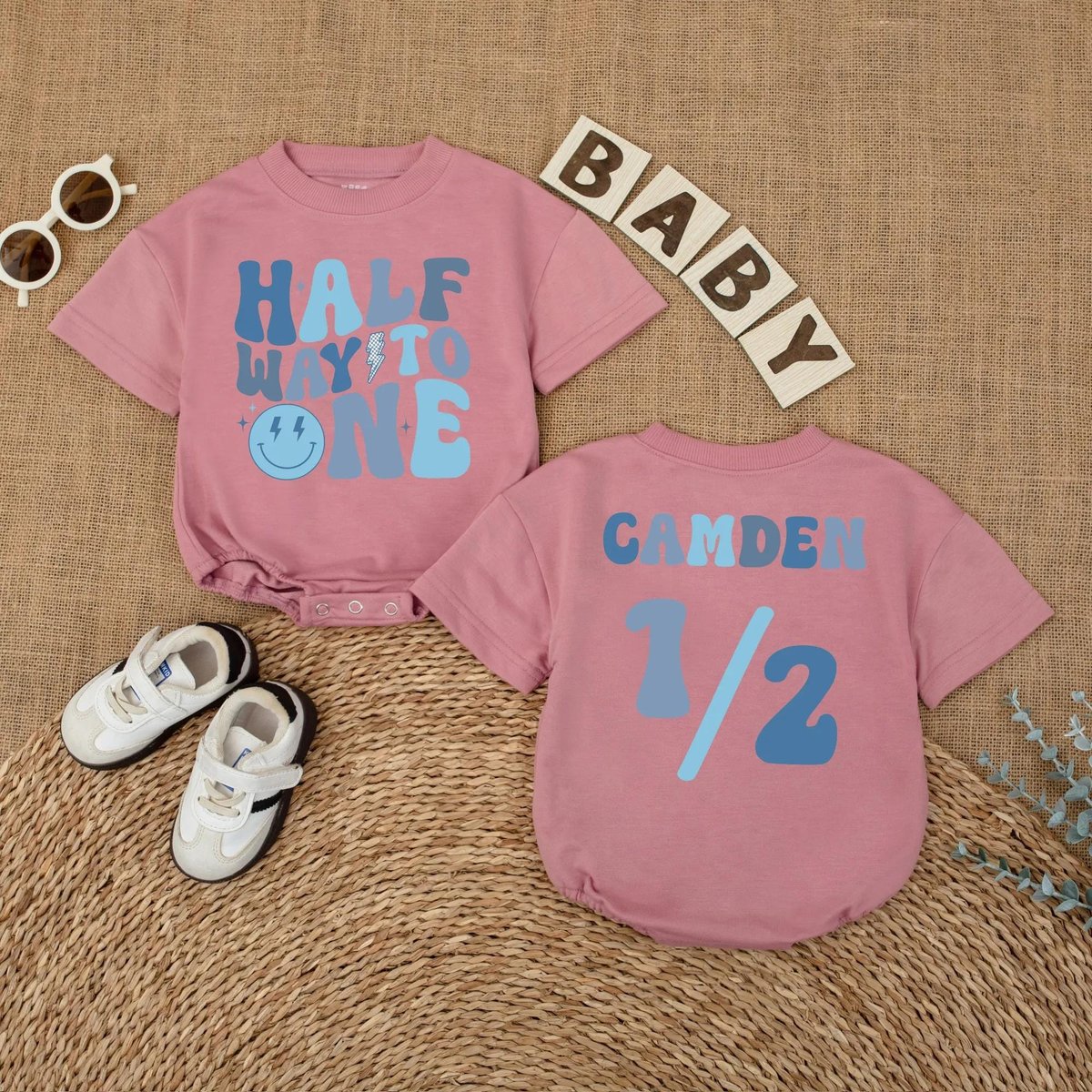 Personalized Half Way to One Baby Romper Half Birthday Baby Boy Bodysuit 6 Months Milestone Outfit C 433