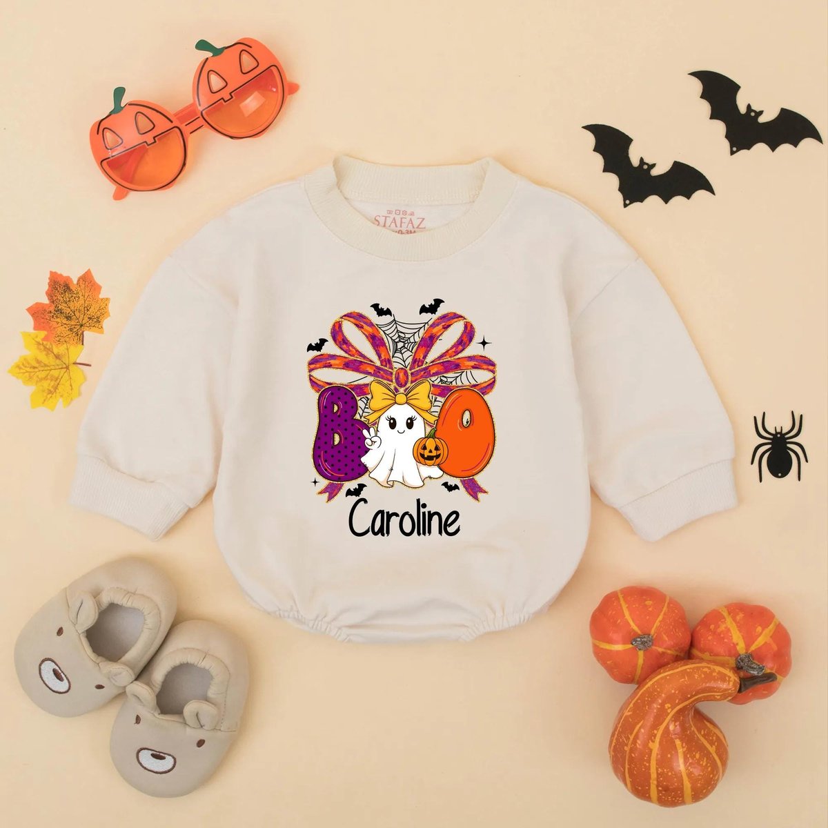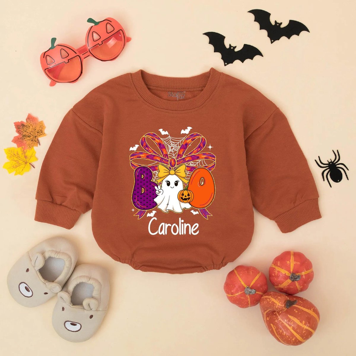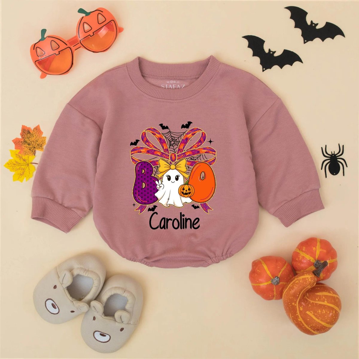 Personalized Halloween Bow Baby Girl Romper My First Halloween Baby Bodysuit Fall Baby Girl Clothes 435