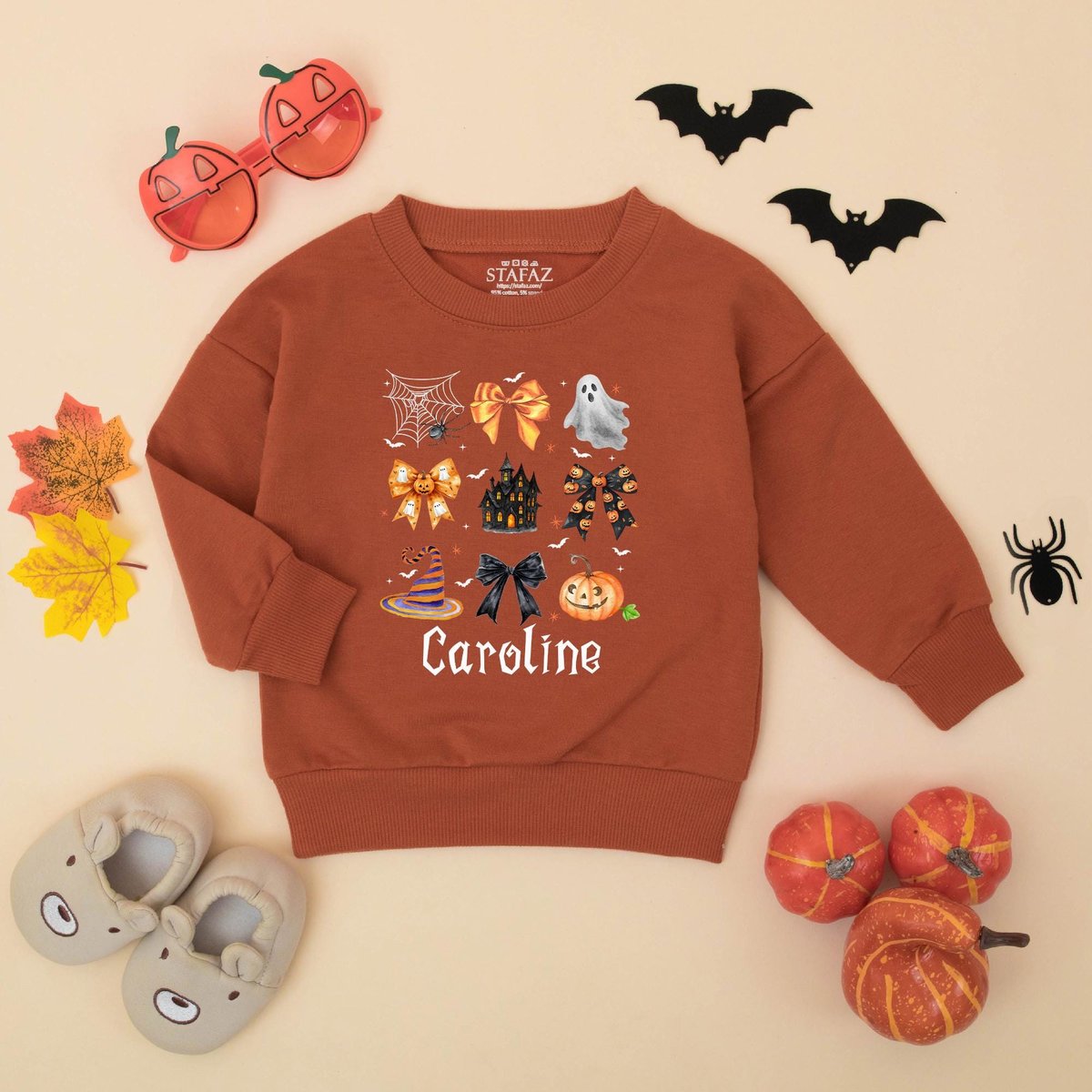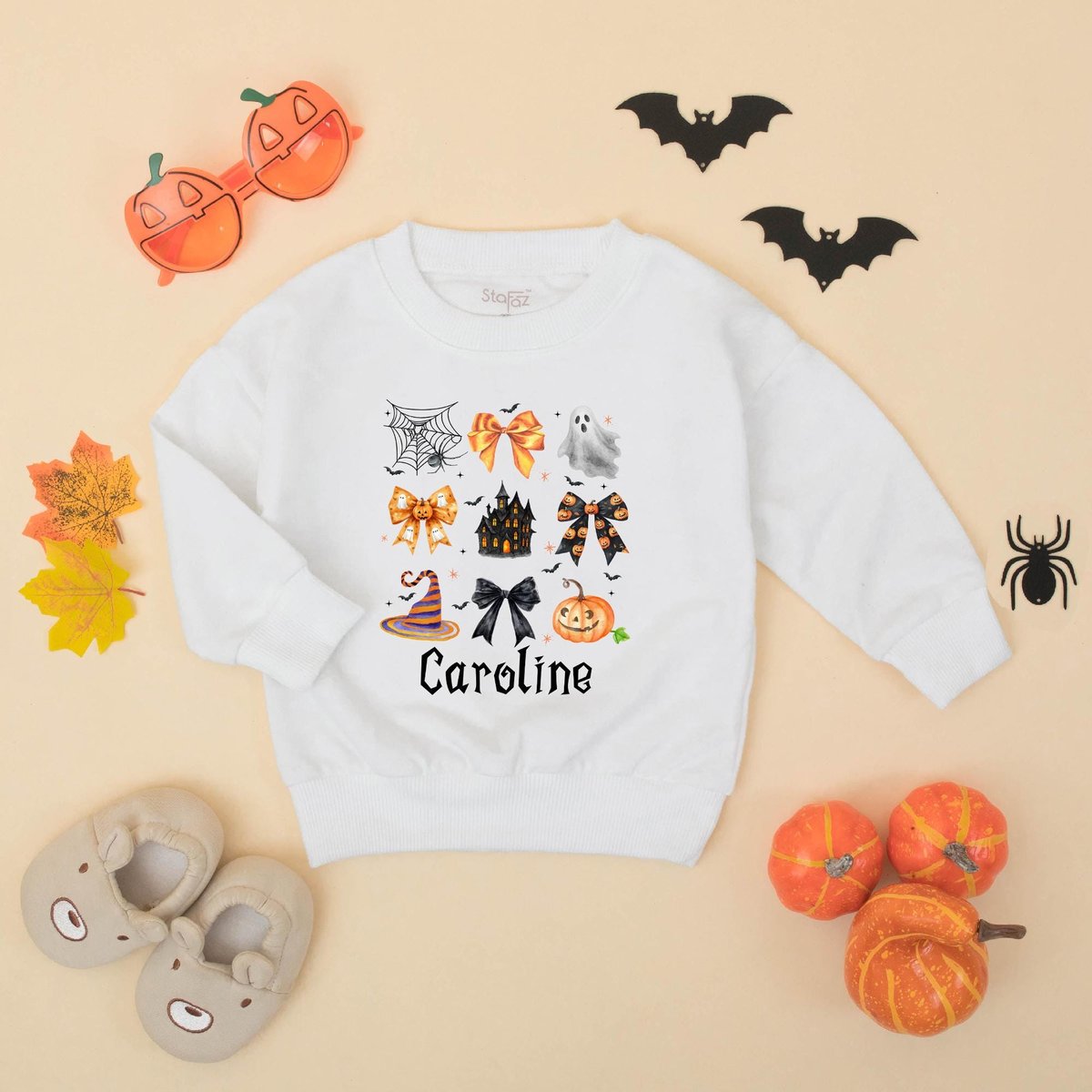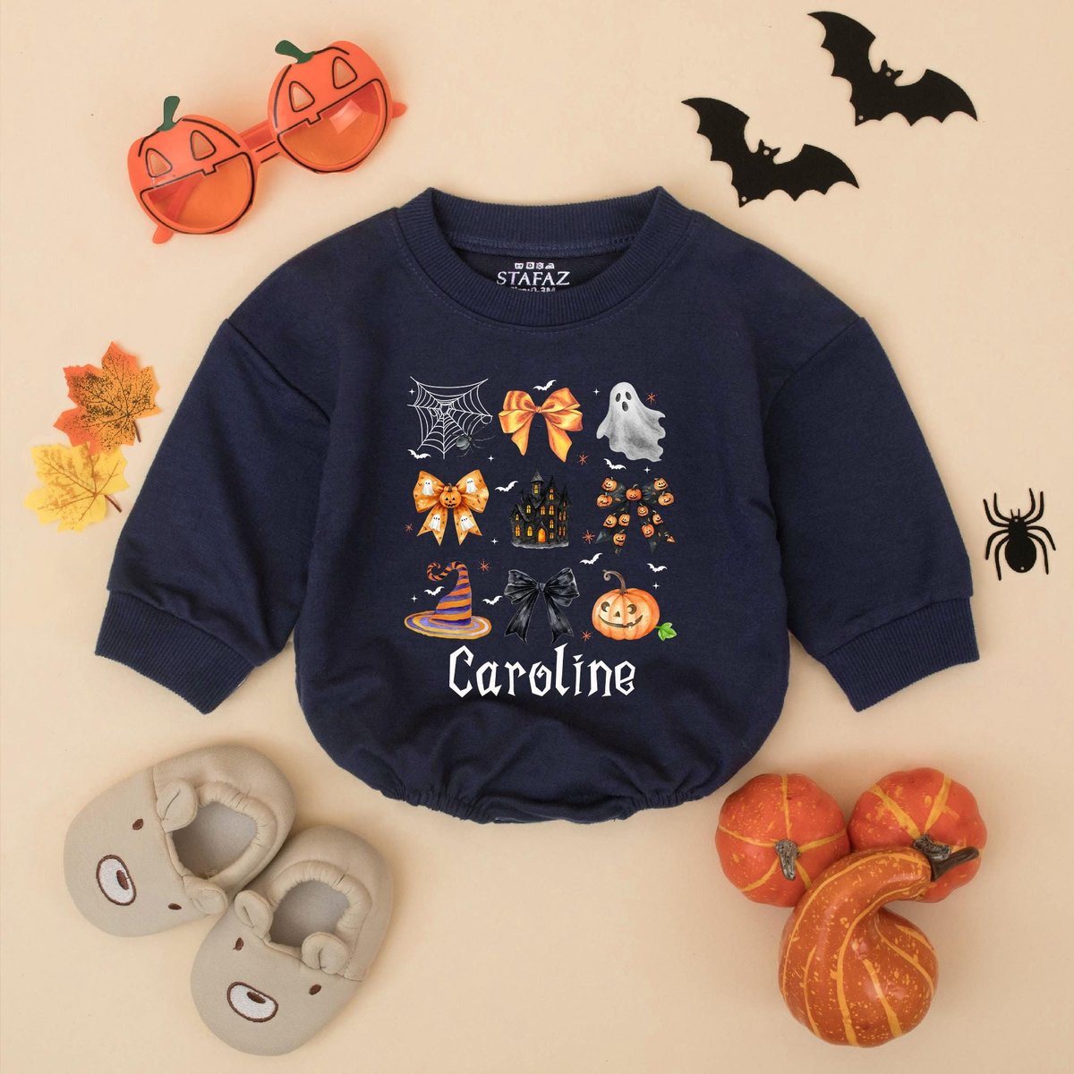 Personalized Halloween Bow Romper for Girls Cute Spooky Season Baby Bodysuit Fall Sweatshirt for Kid 434