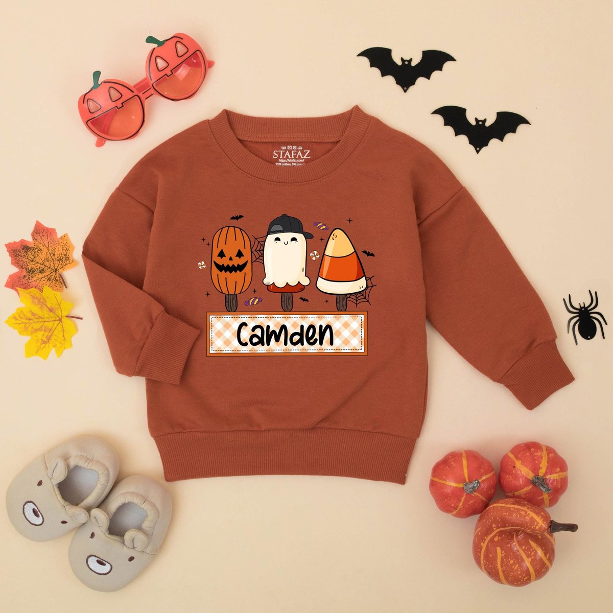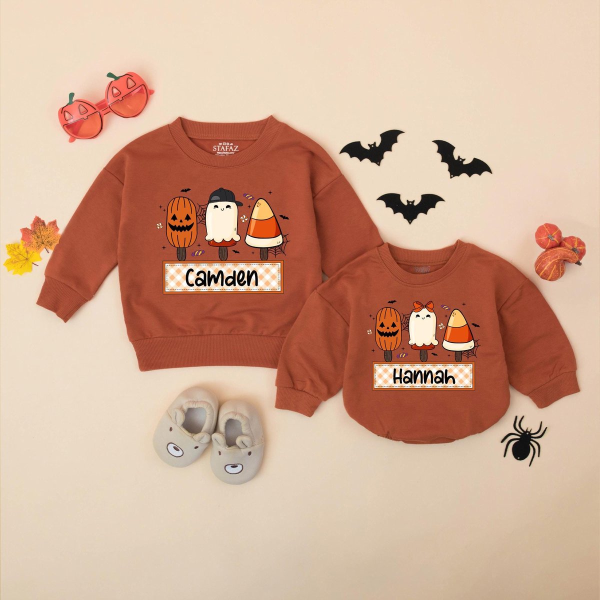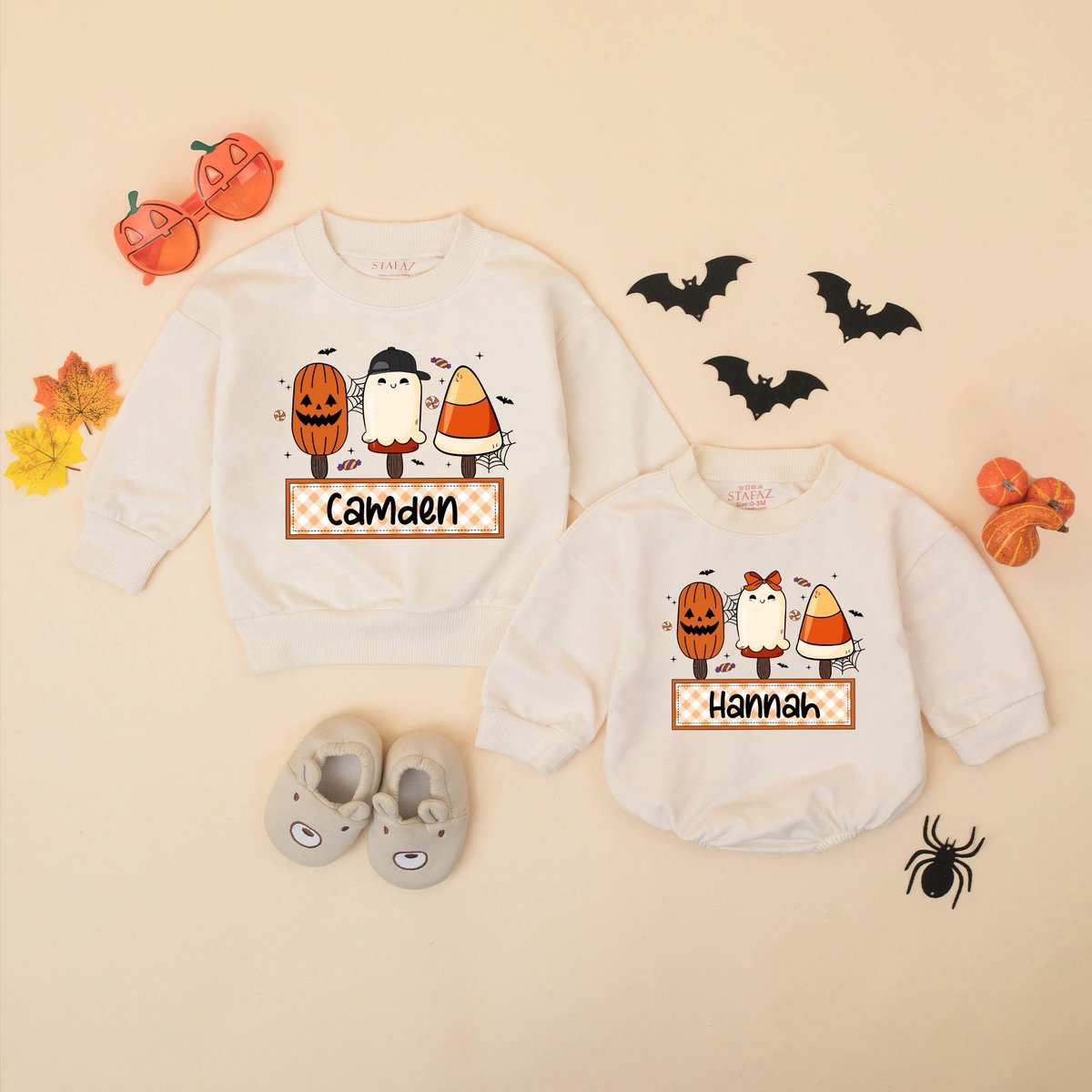 Personalized Halloween Ice Cream Matching Shirts for Siblings Halloween Kids Name Toddler Sweatshirt 432