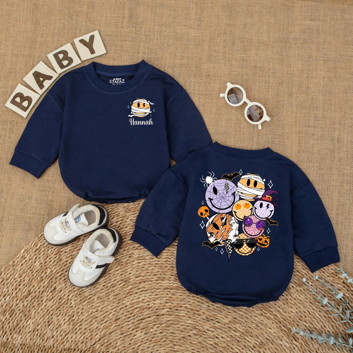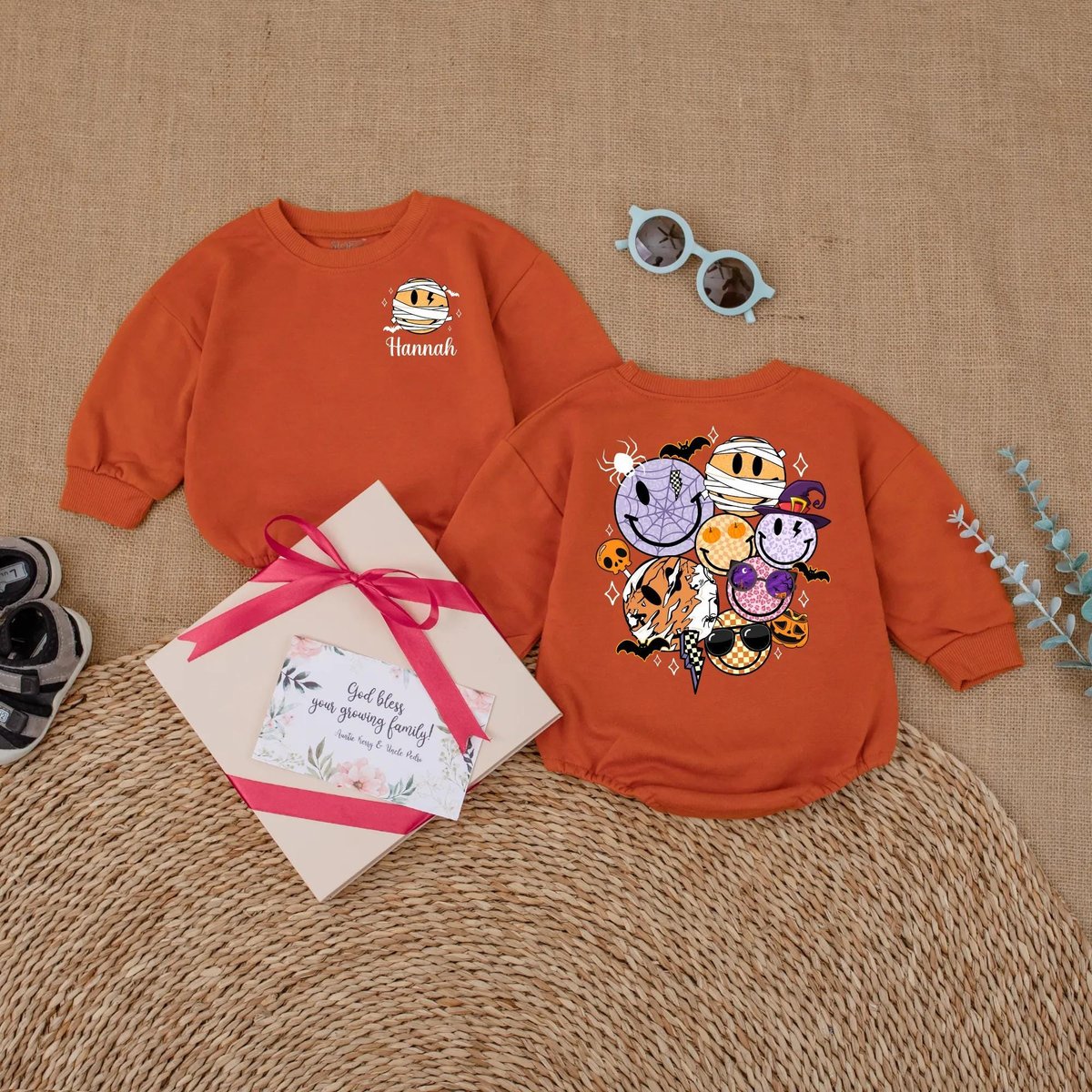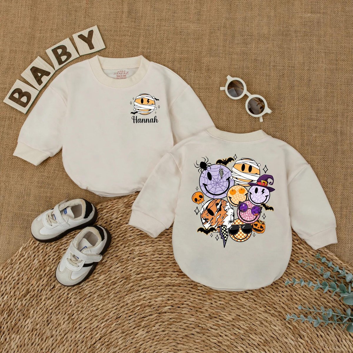 Personalized Halloween Smiley Face Baby Romper Halloween Outfit for Baby Boy Girl Custom Name Baby B 432