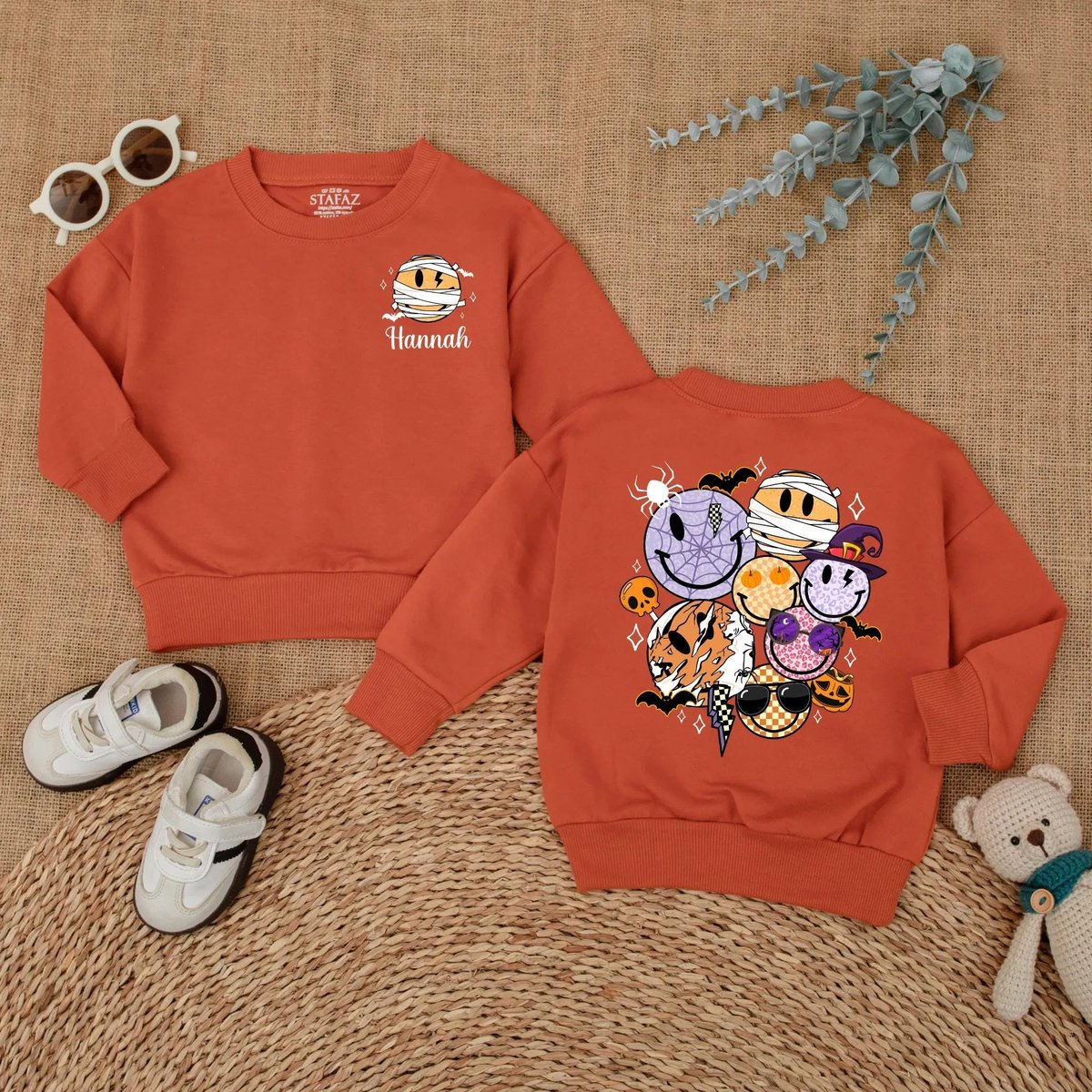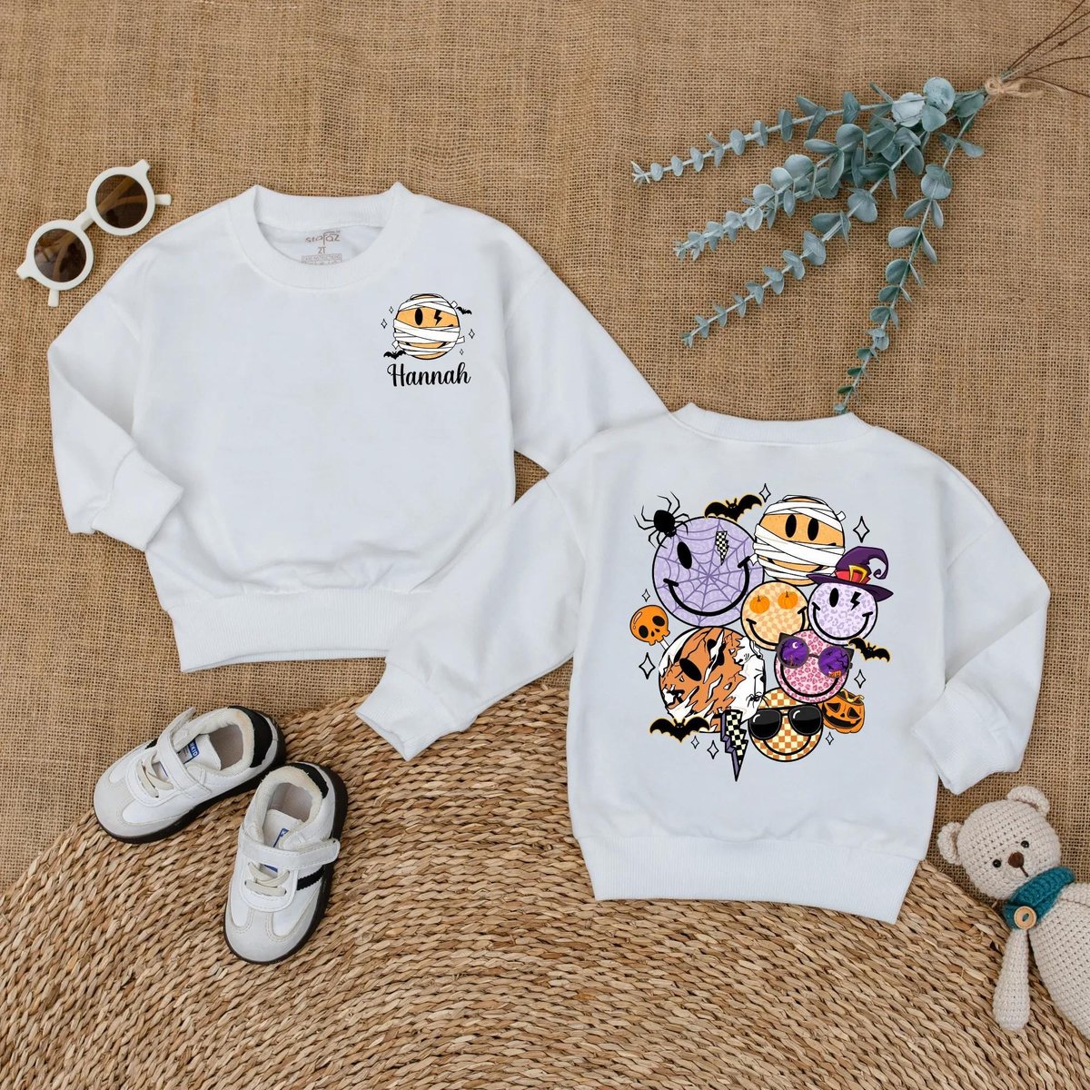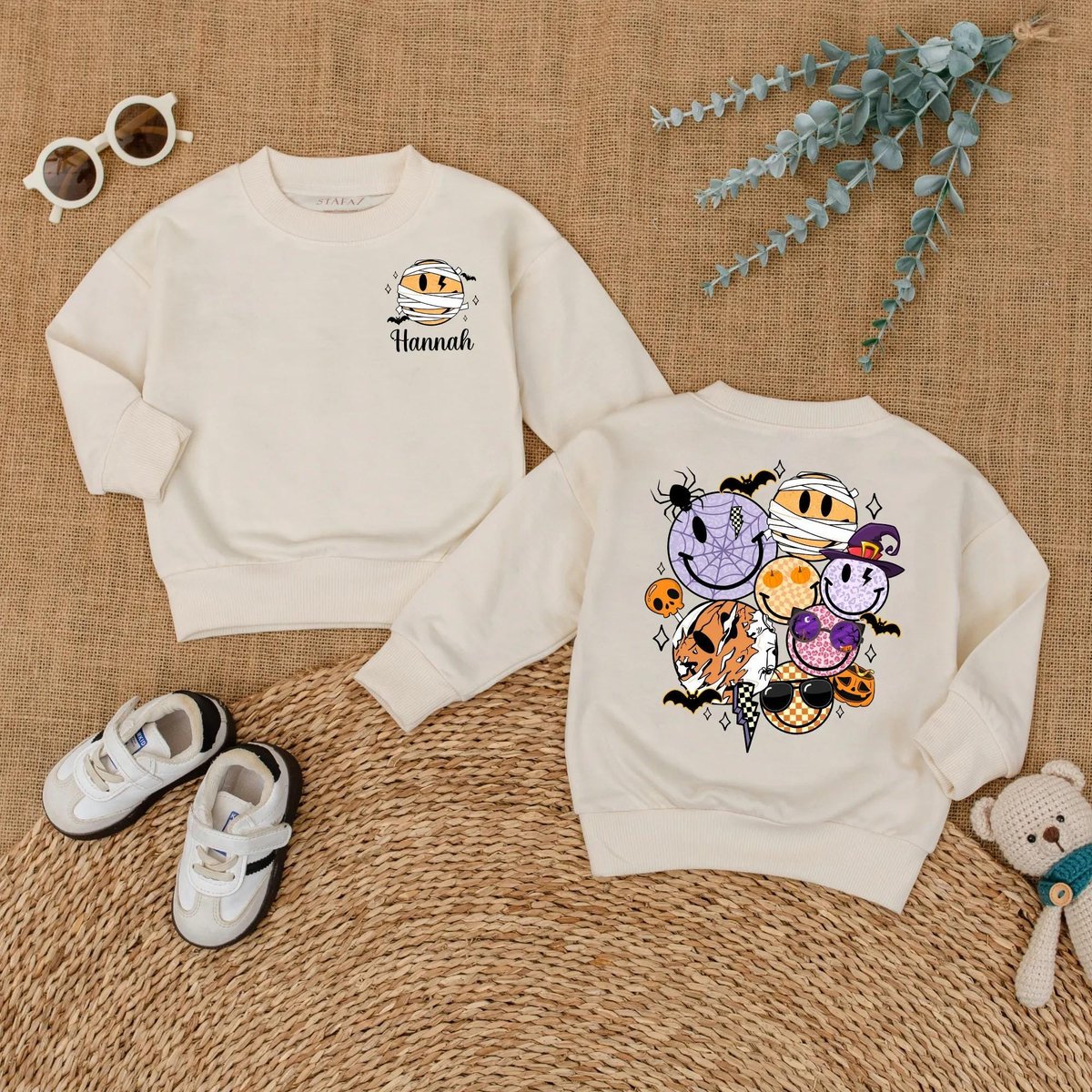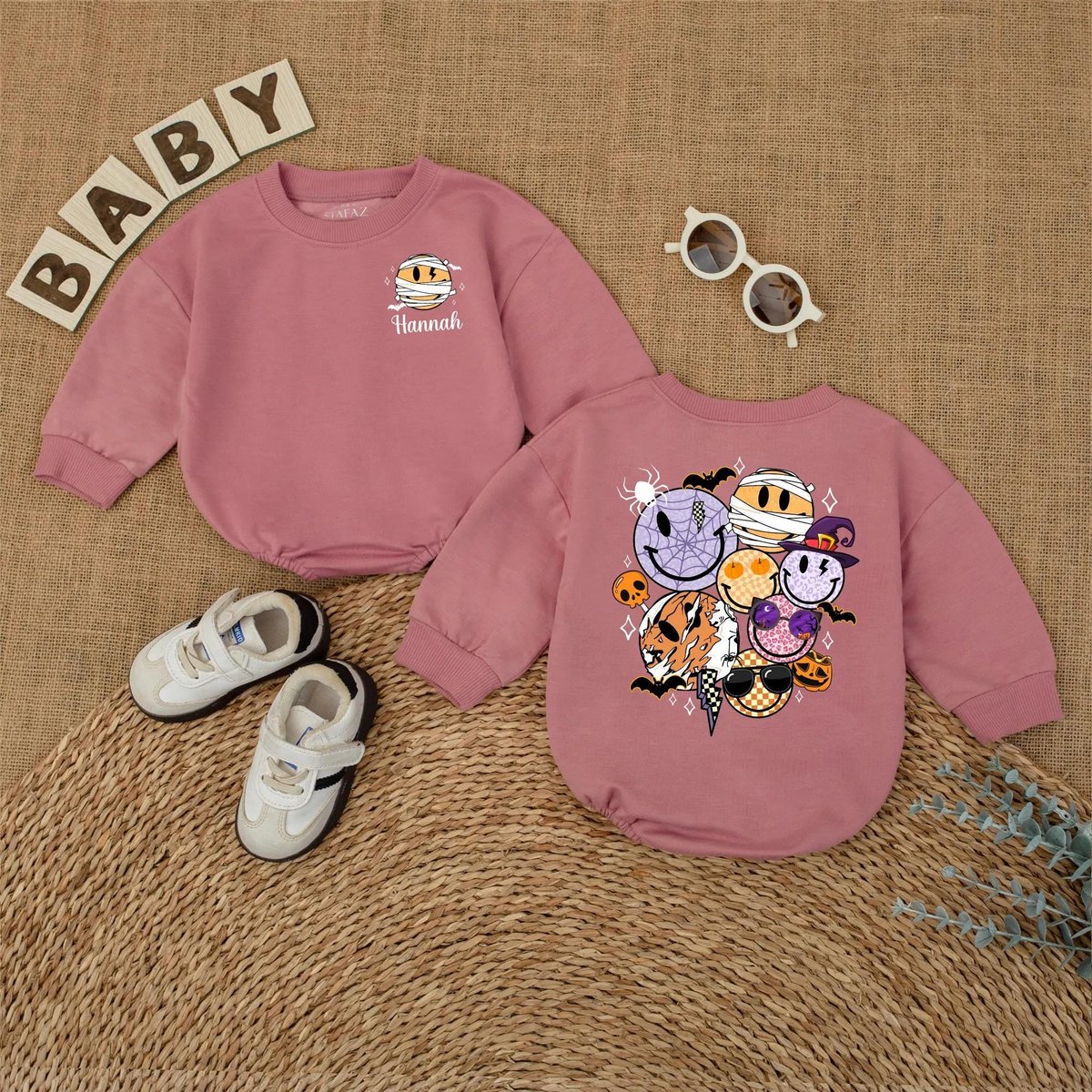 Personalized Halloween Smiley Face Baby Romper Halloween Outfit for Baby Boy Girl Custom Name Baby B 432
