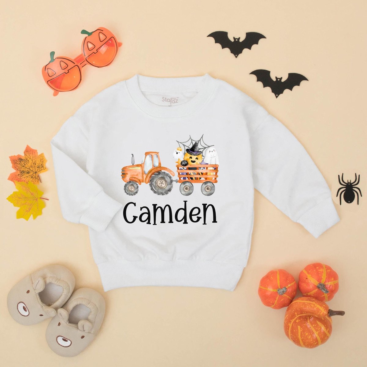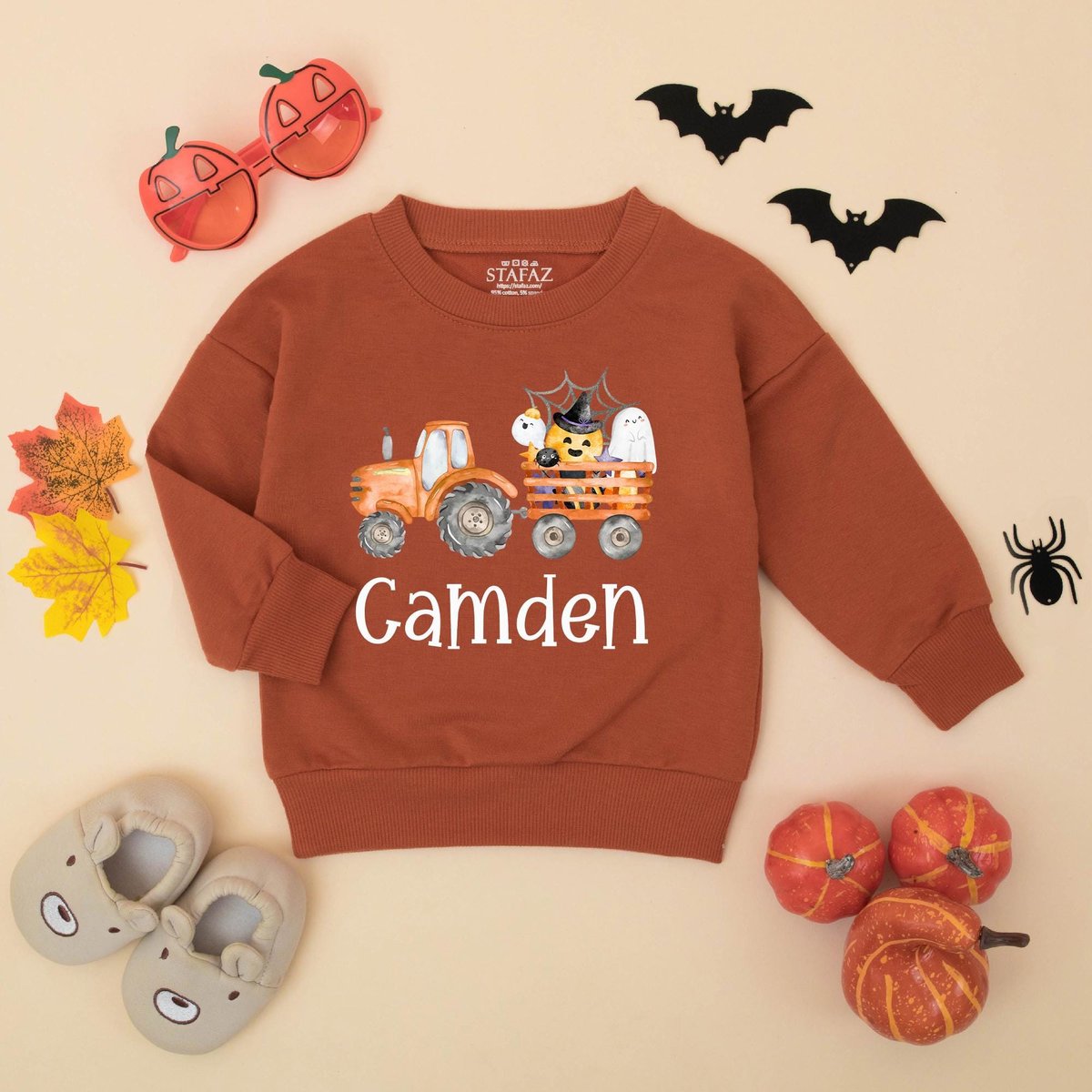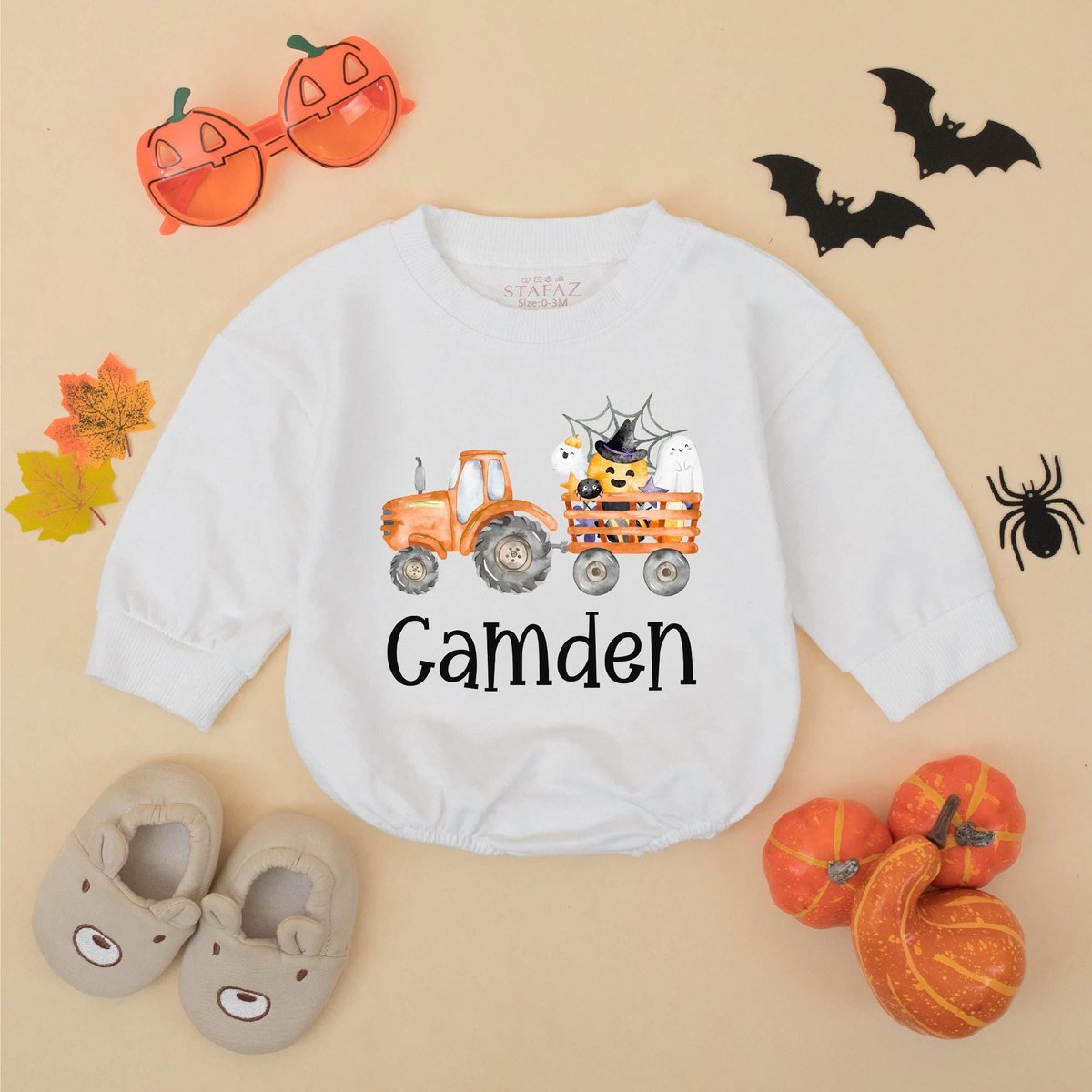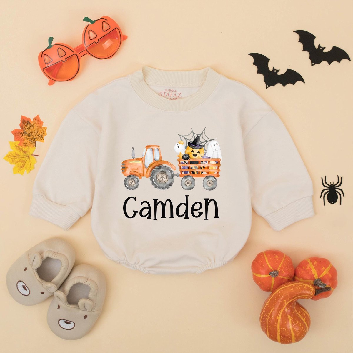 Personalized Halloween Tractor Baby Romper Baby Boy Halloween Pumpkin Bodysuit Cute Toddler Fall Out 432