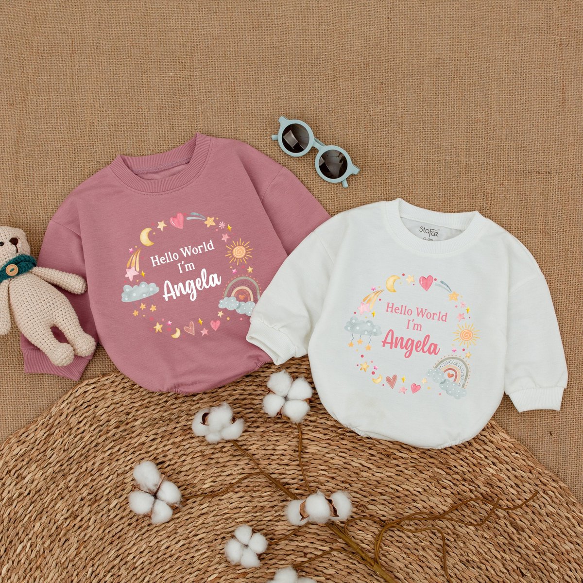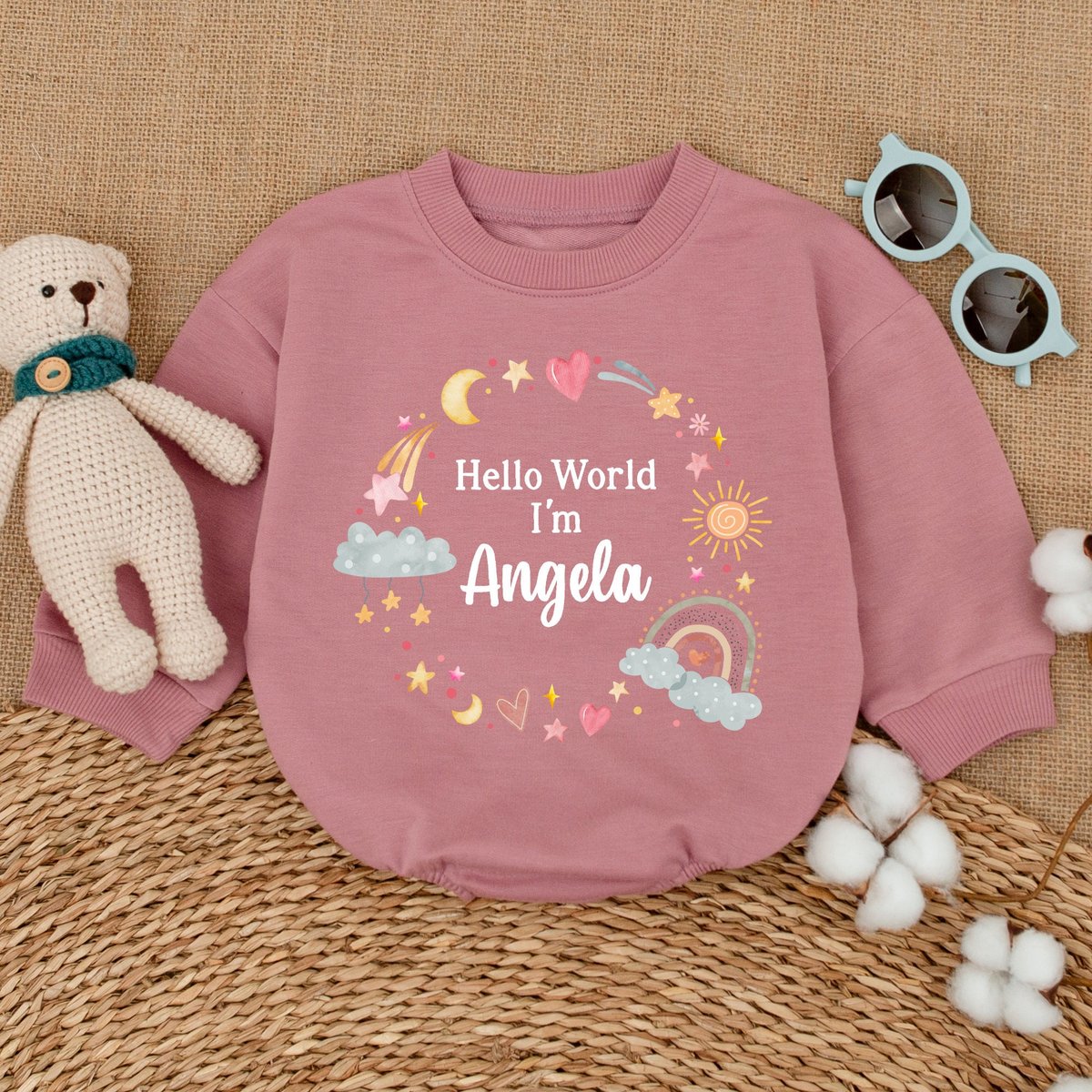 Personalized Hello World Romper Newborn Baby Bodysuit Pregnancy Announcement Newborn Bubble Romper B 170