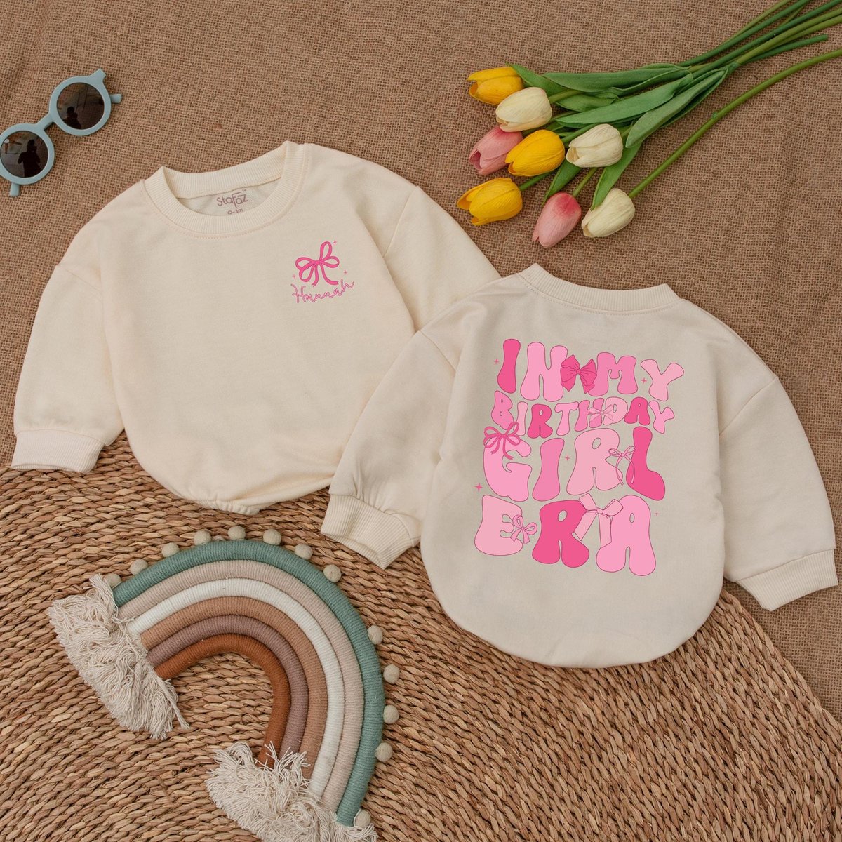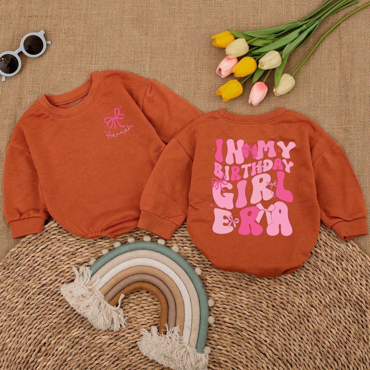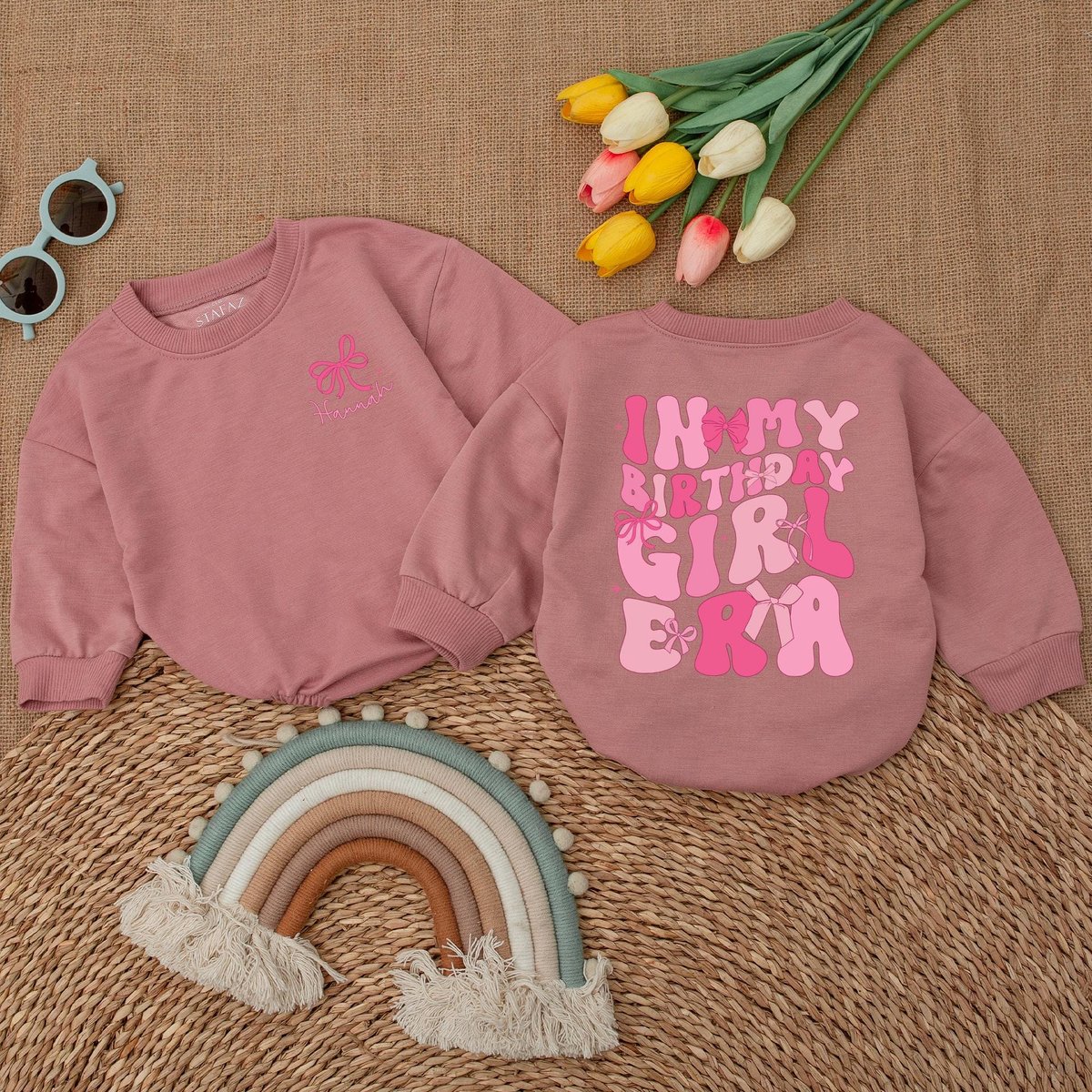 Personalized In My Birthday Girl Era Romper Pink Bow Birthday Girl Bodysuit Girl Birthday Clothes Ba 180