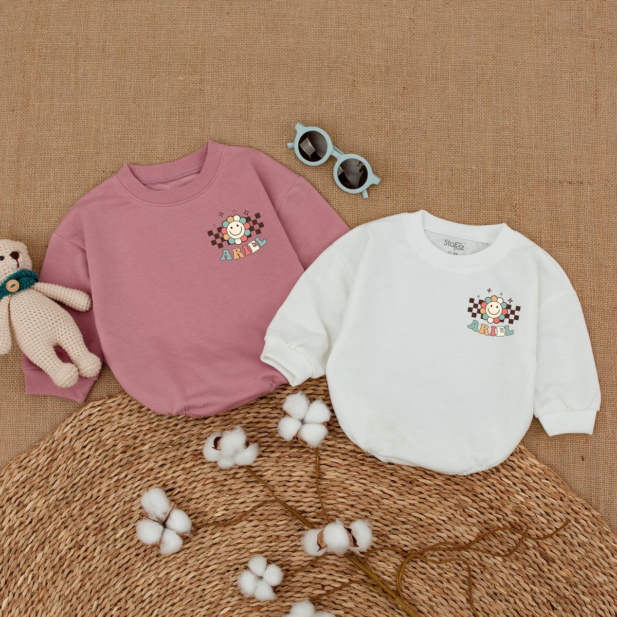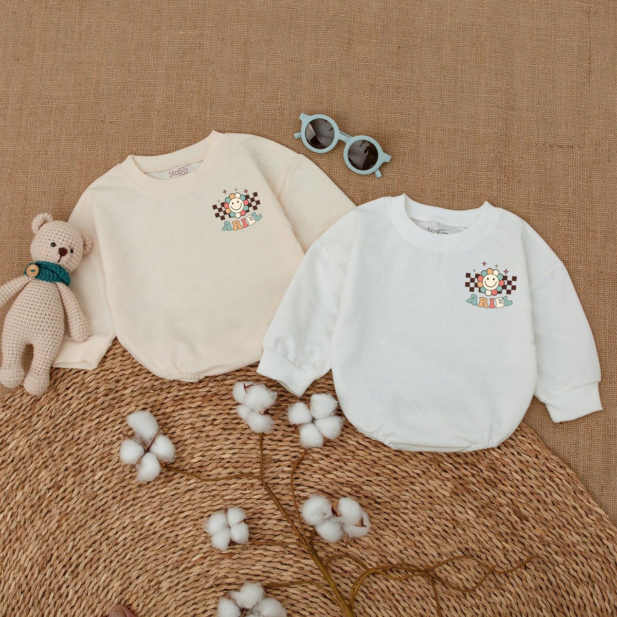 Personalized In My Mama’s Girl Era Baby Romper Hippie Daisy Baby Bodysuit Smiley Face Outfit Romper 169