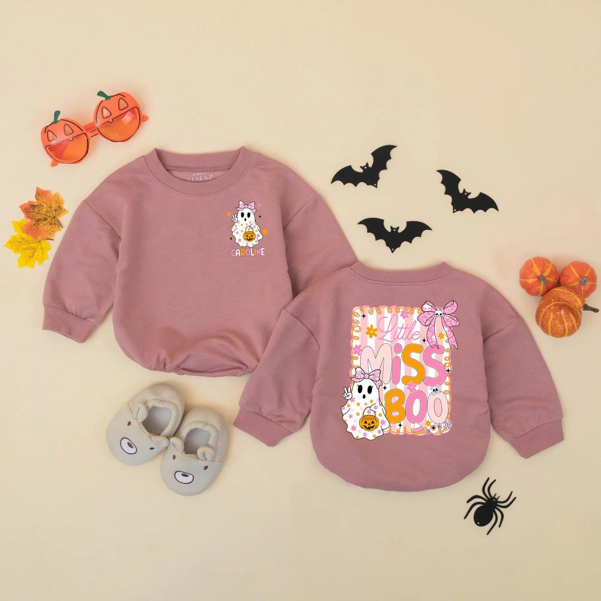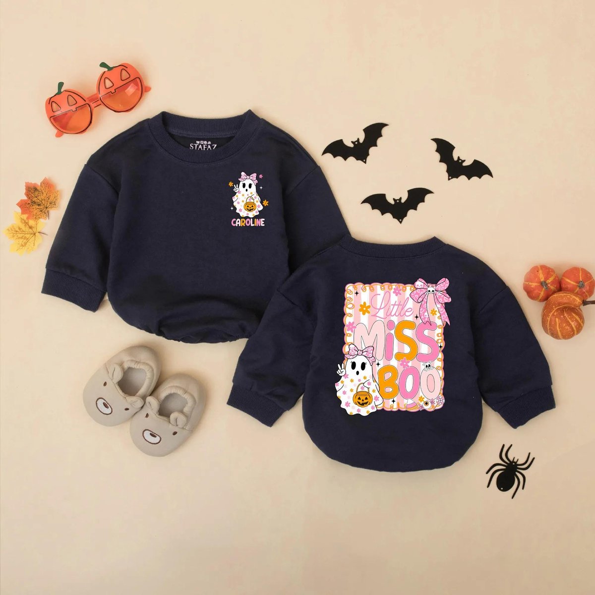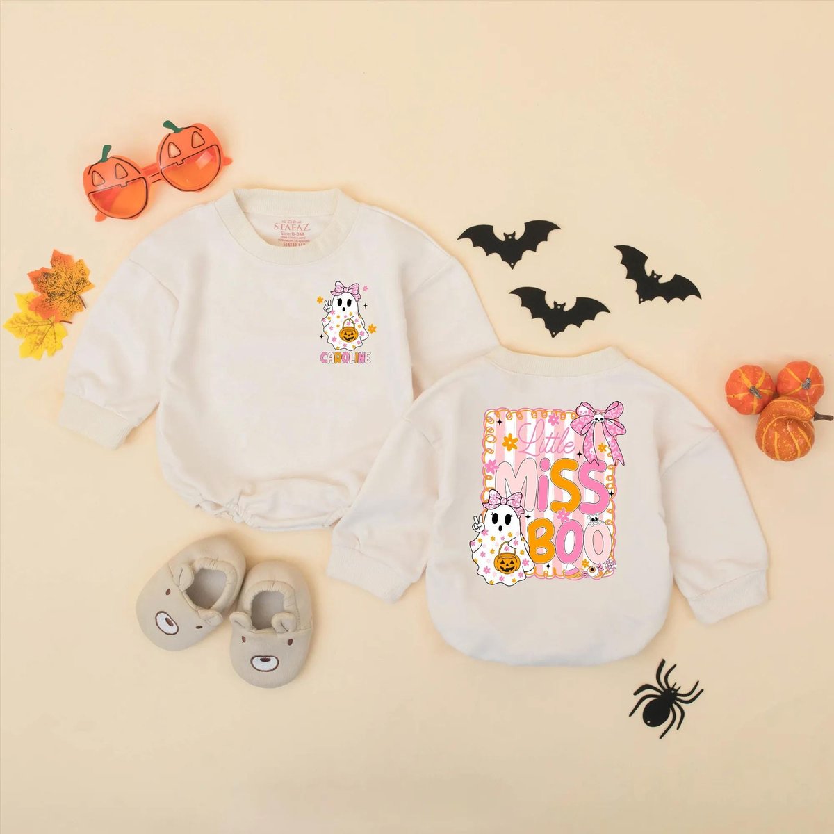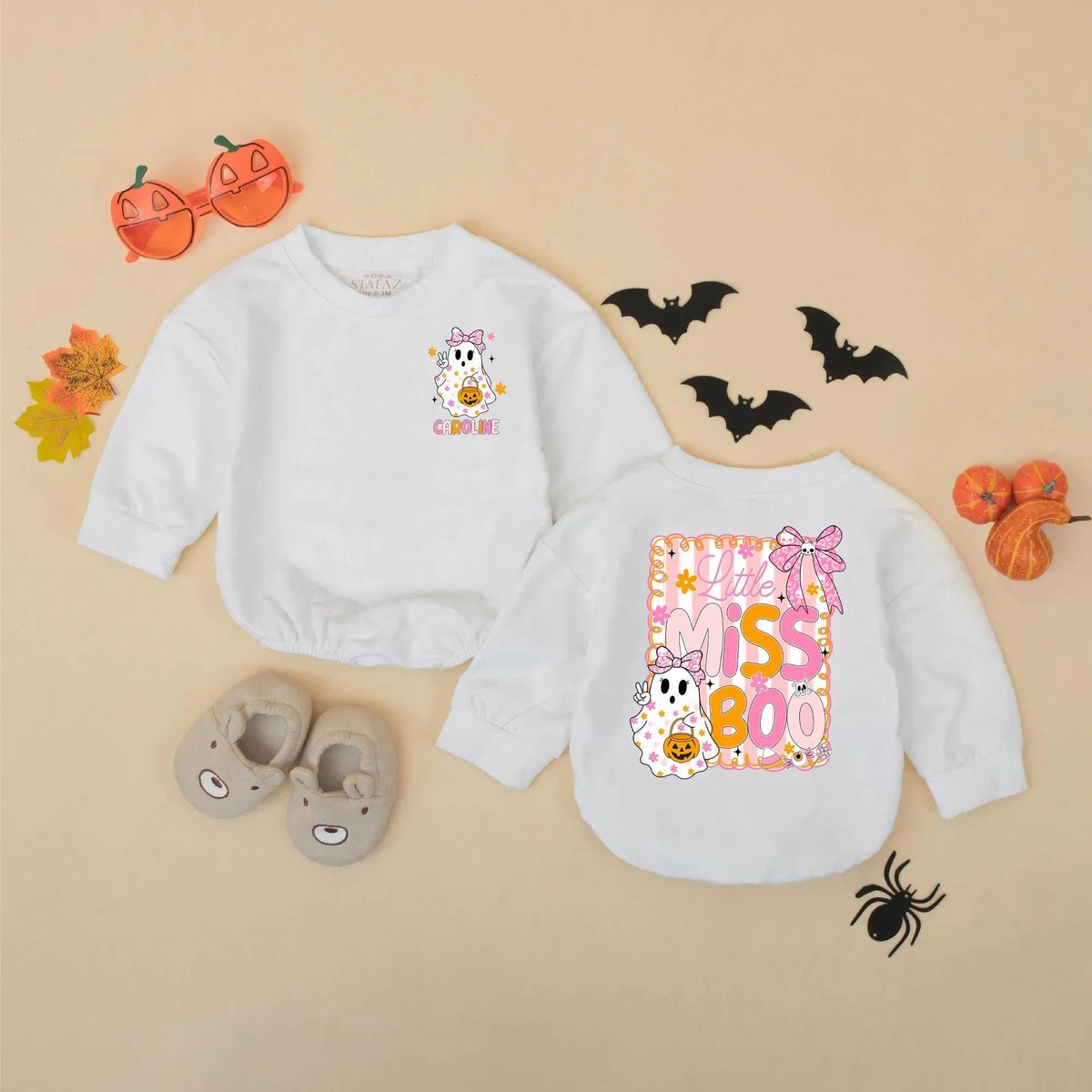 Personalized Little Miss Boo Baby Romper Custom Name Halloween Outfit for Baby Girl Fall Baby Clothe 435