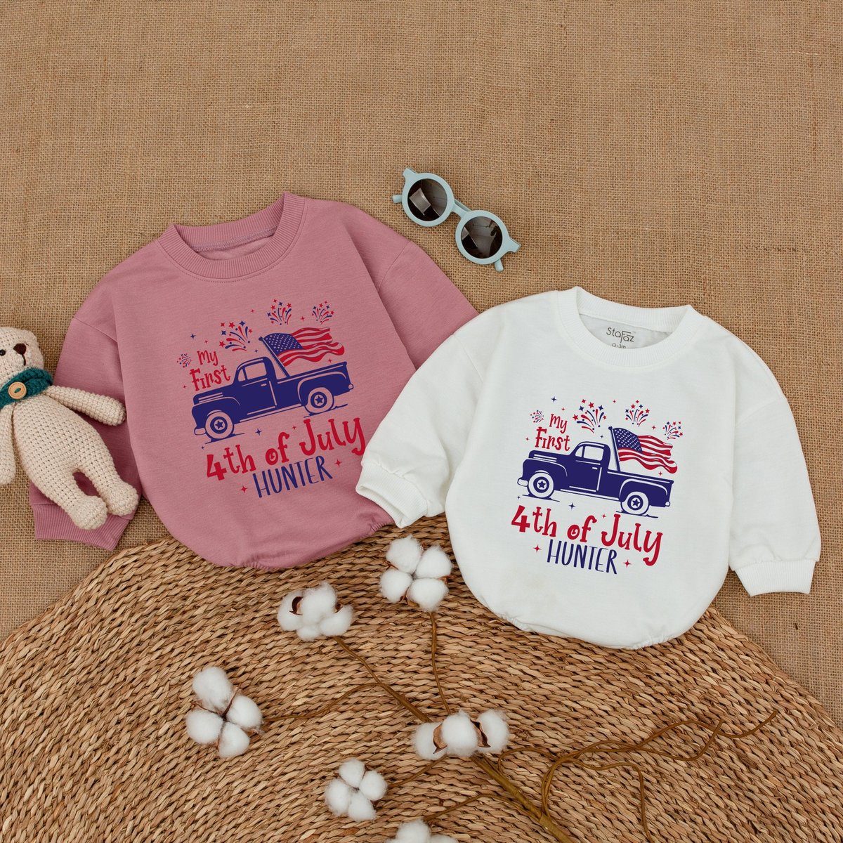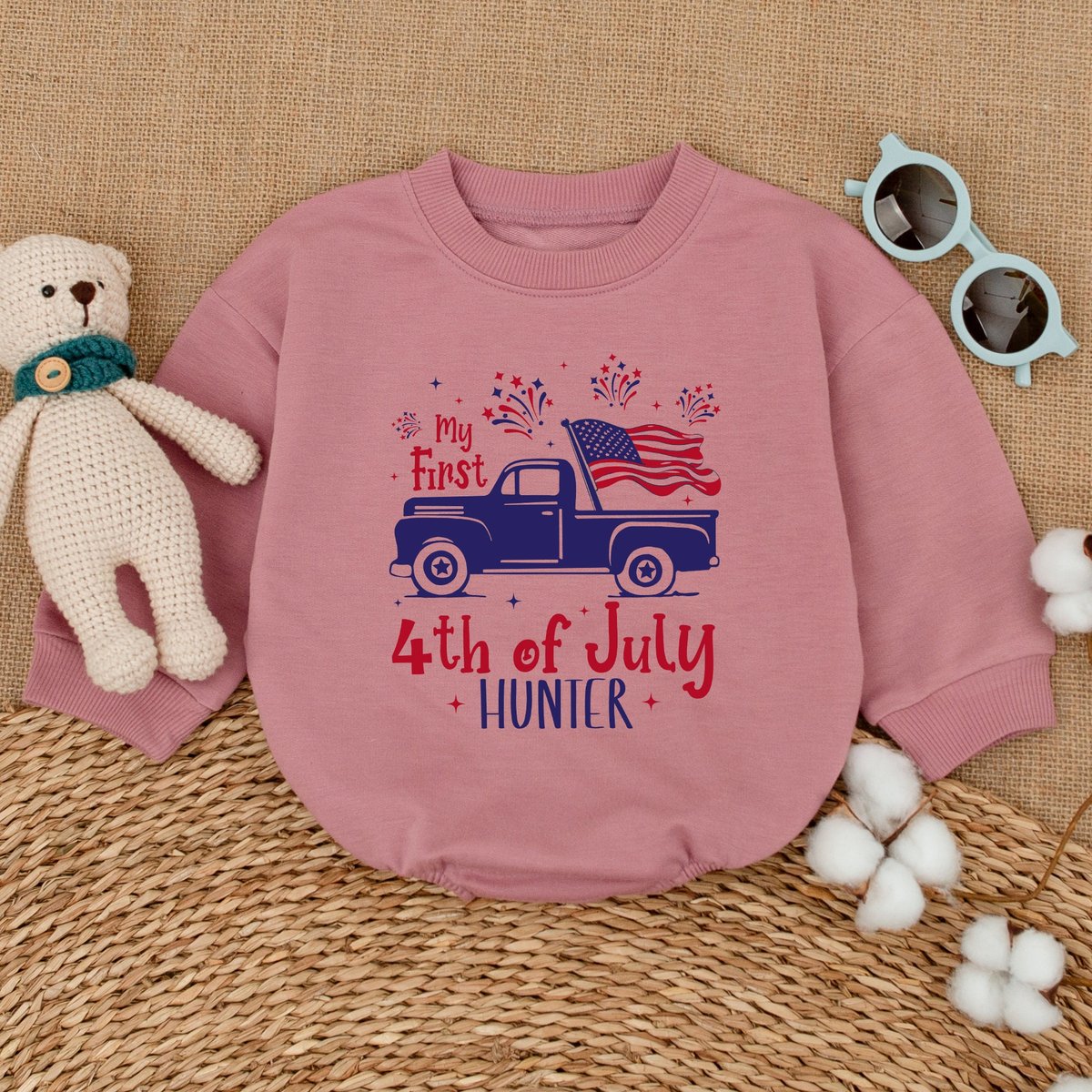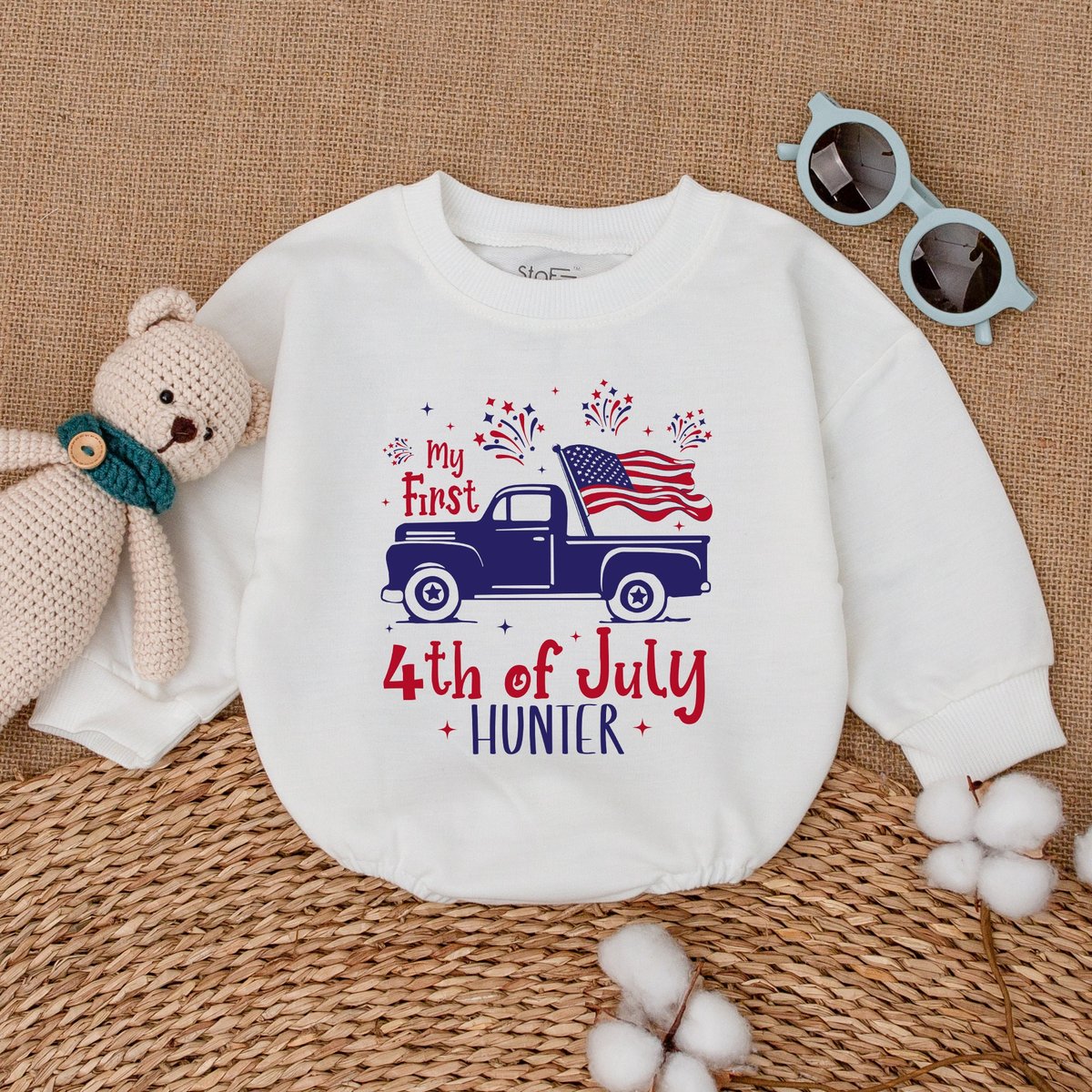 Personalized My First 4th of July Truck Romper Patriotic Baby Bodysuit 4th of July Clothes Newborn B 170
