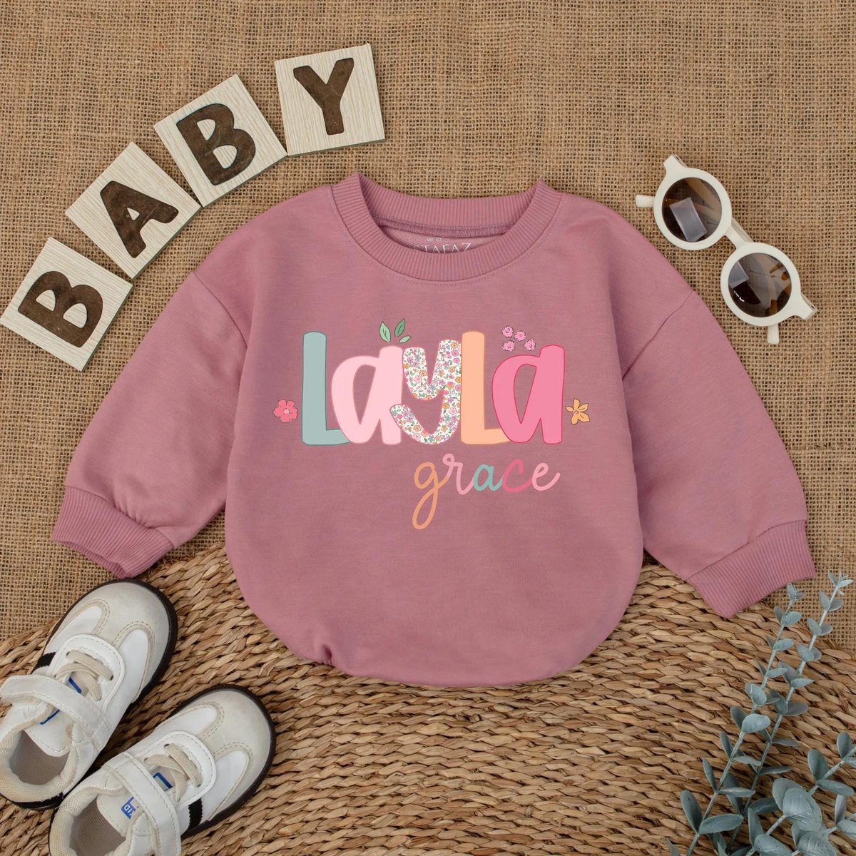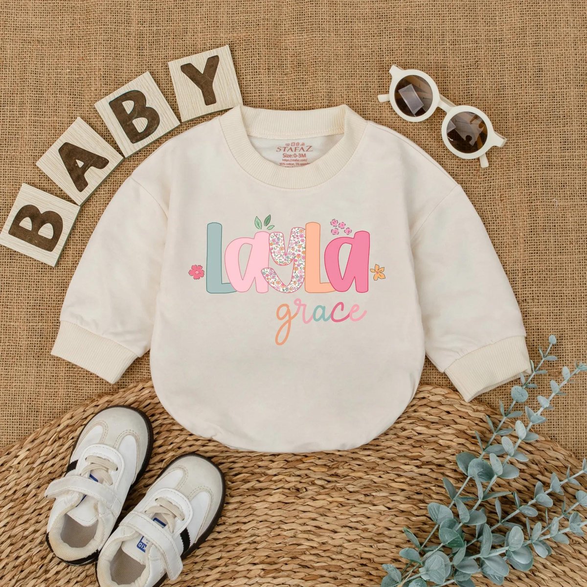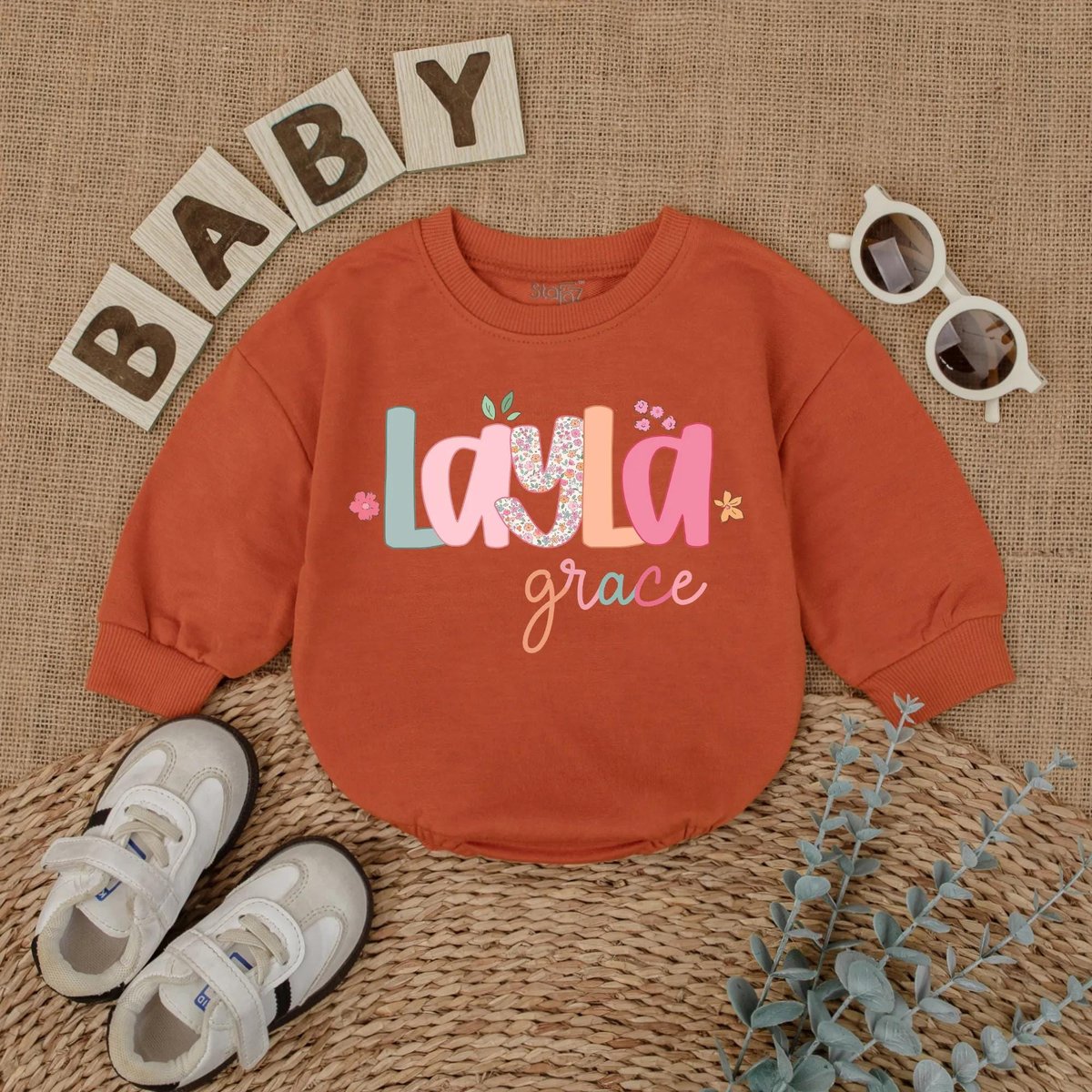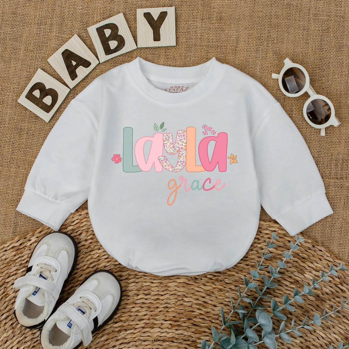 Personalized Name Baby Girl Bubble Romper Custom Name Floral Bodysuit for Girls Cute Infant Outfit C 436