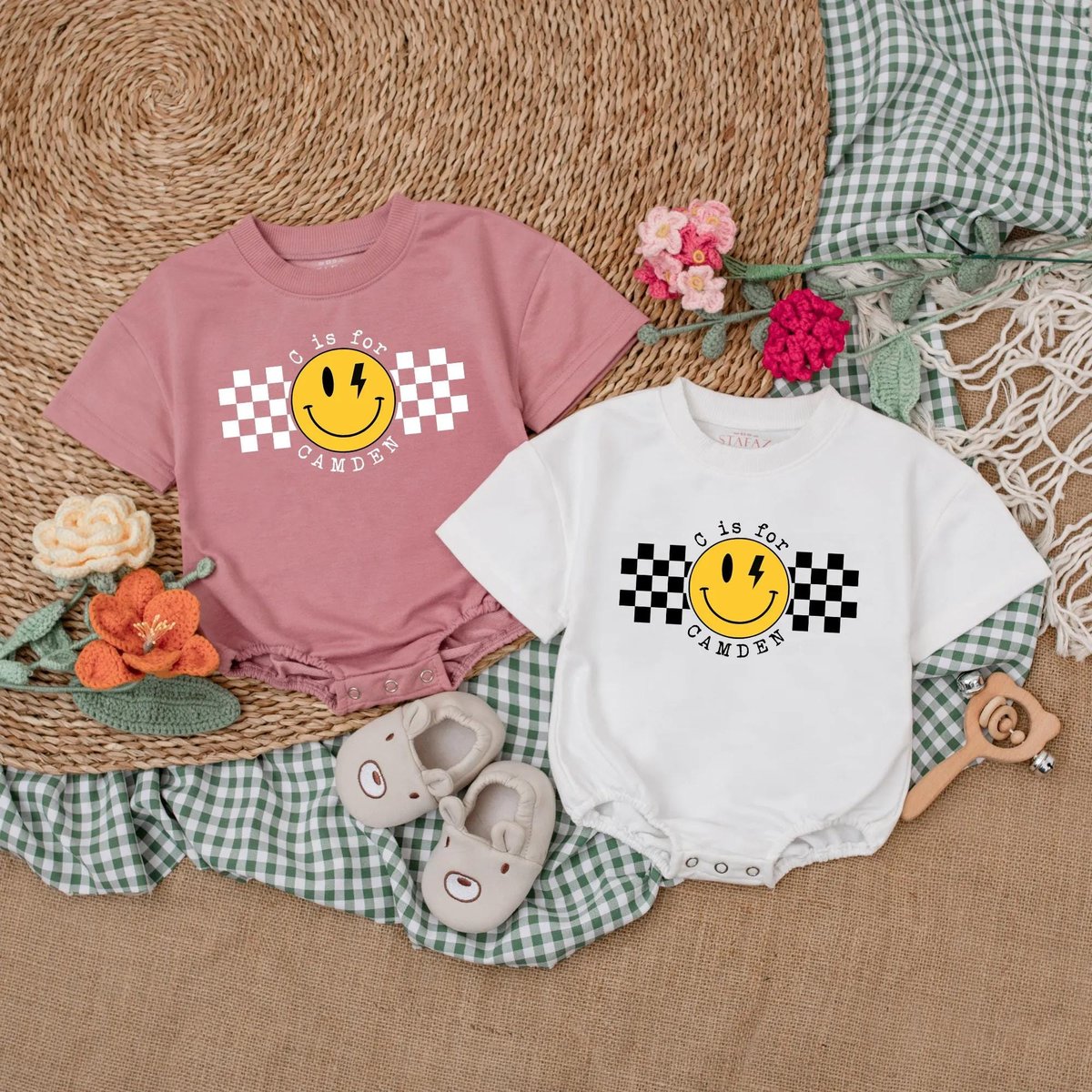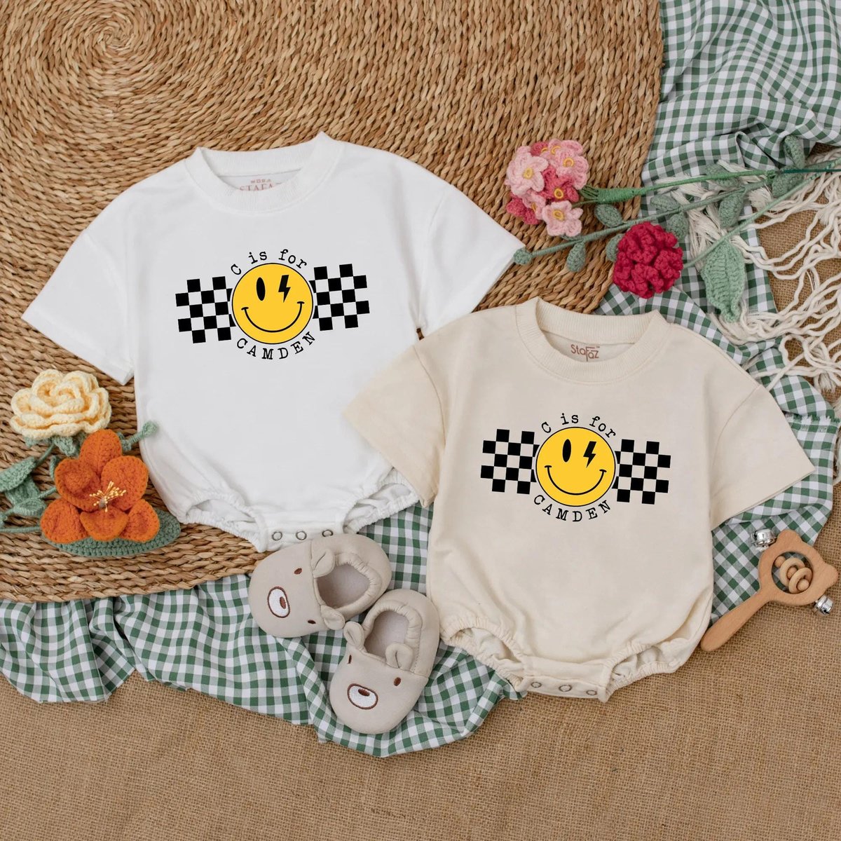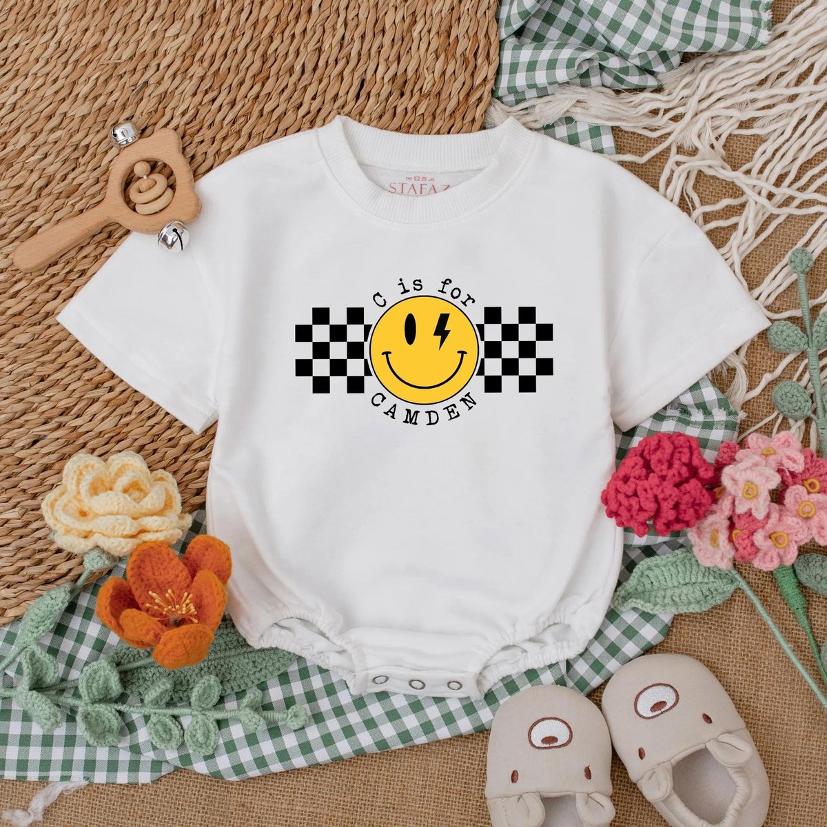 Personalized Name Checkered Happy Dude Romper One Happy Dude Baby Bodysuit Baby Boy Clothes First Bi 187