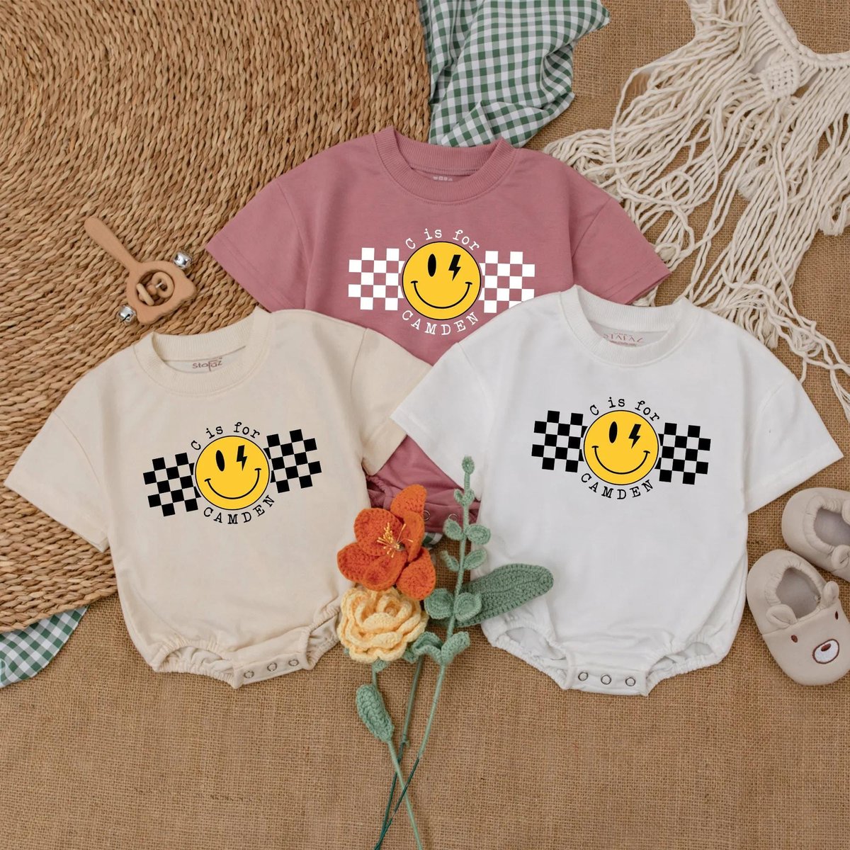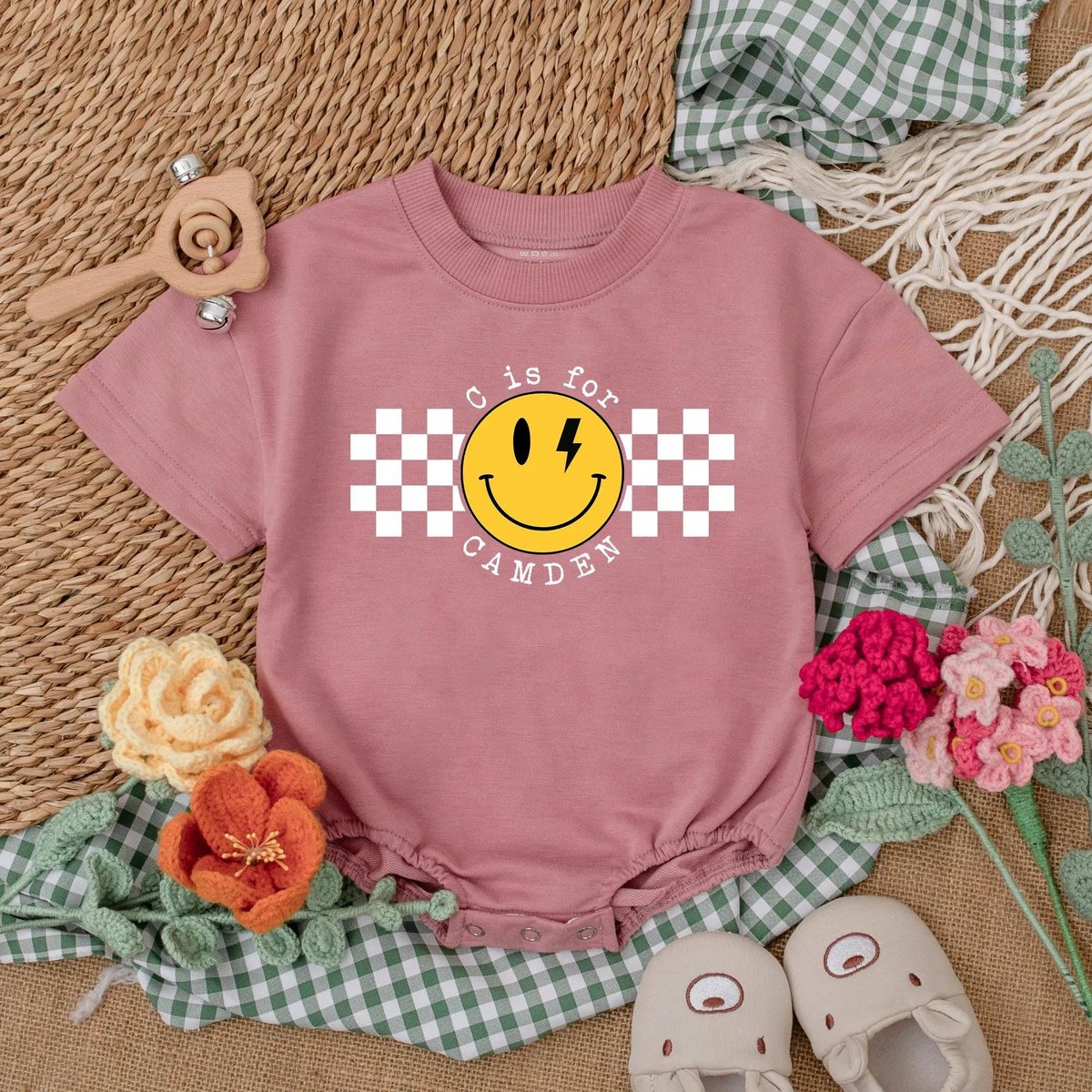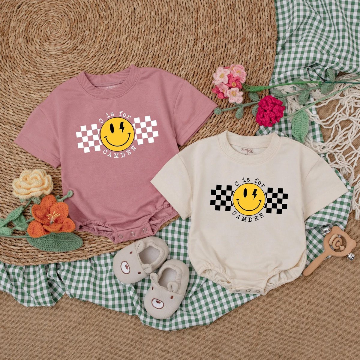 Personalized Name Checkered Happy Dude Romper One Happy Dude Baby Bodysuit Baby Boy Clothes First Bi 187