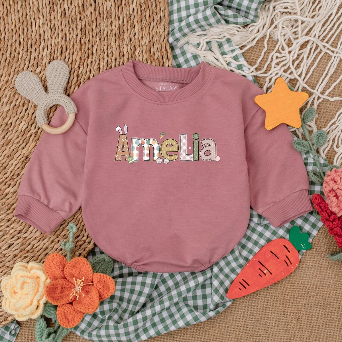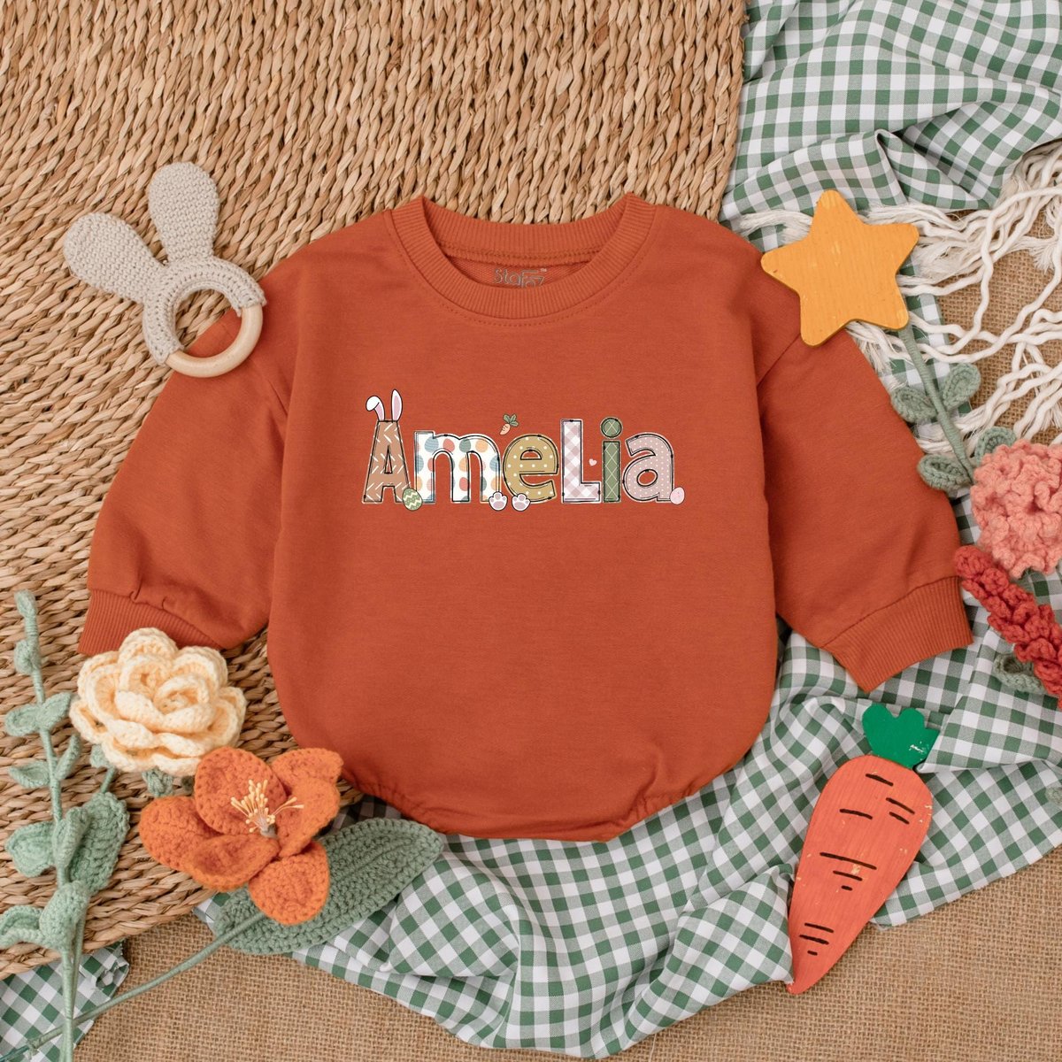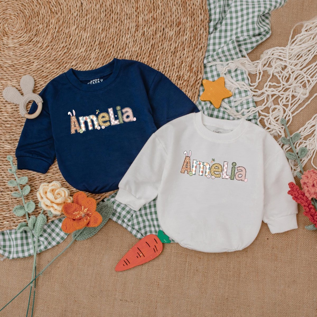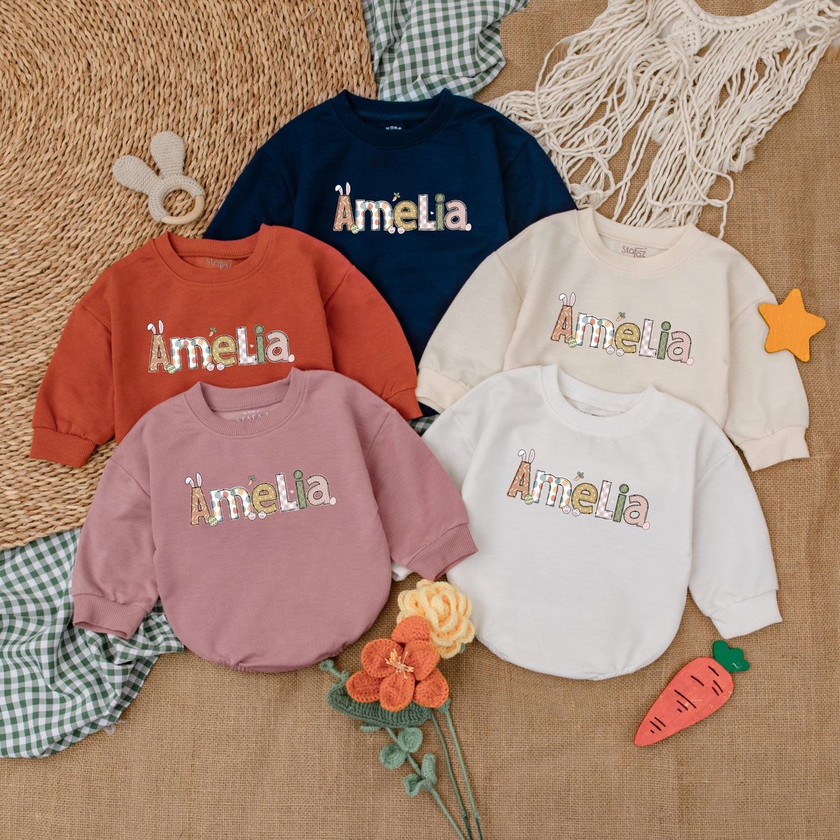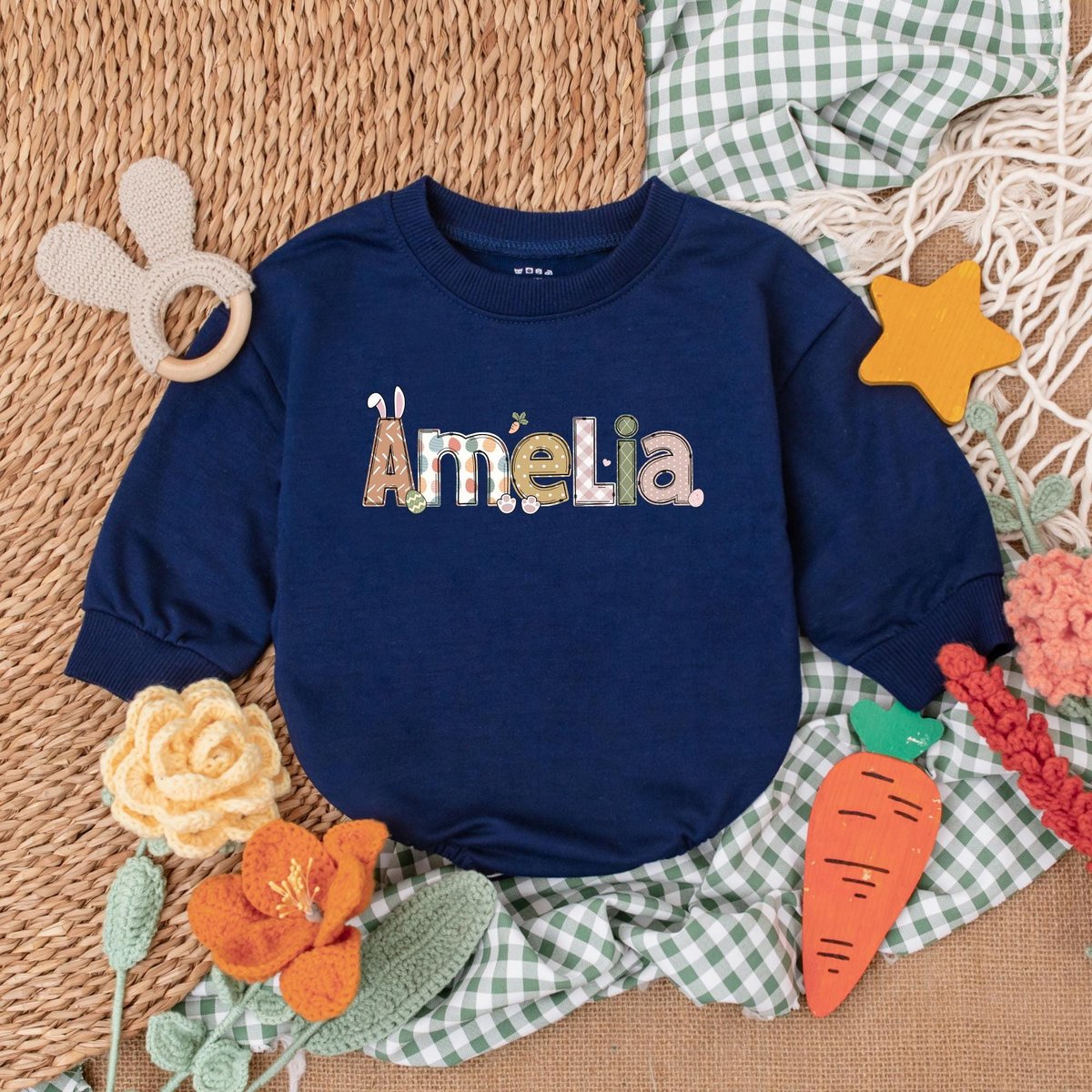 Personalized Name Easter Romper Retro Easter Bunny Bodysuit Easter Day Baby Gift First Easter Outfit 183