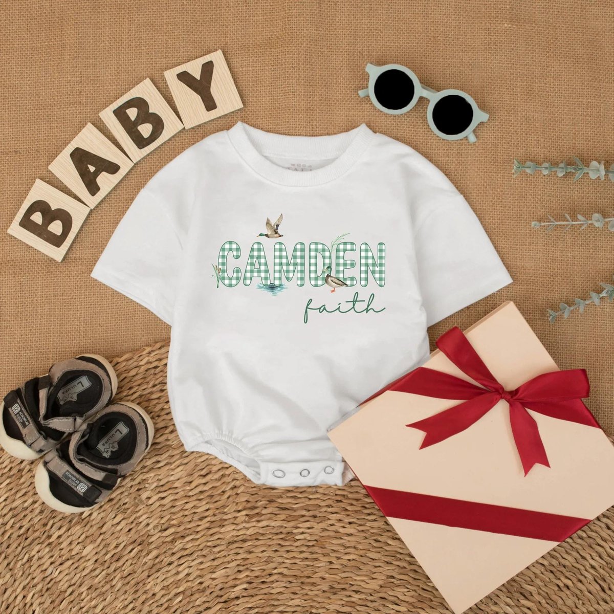 Personalized Name Mallard Duck Bubble Romper Mallard Duck Hunting Outfit for Baby Boy Duck Theme Bir 432