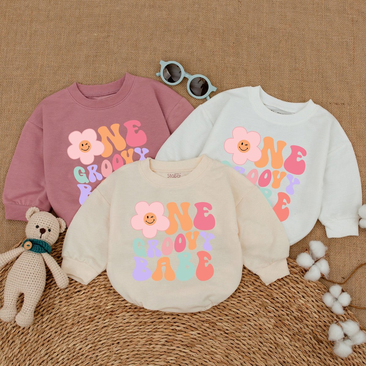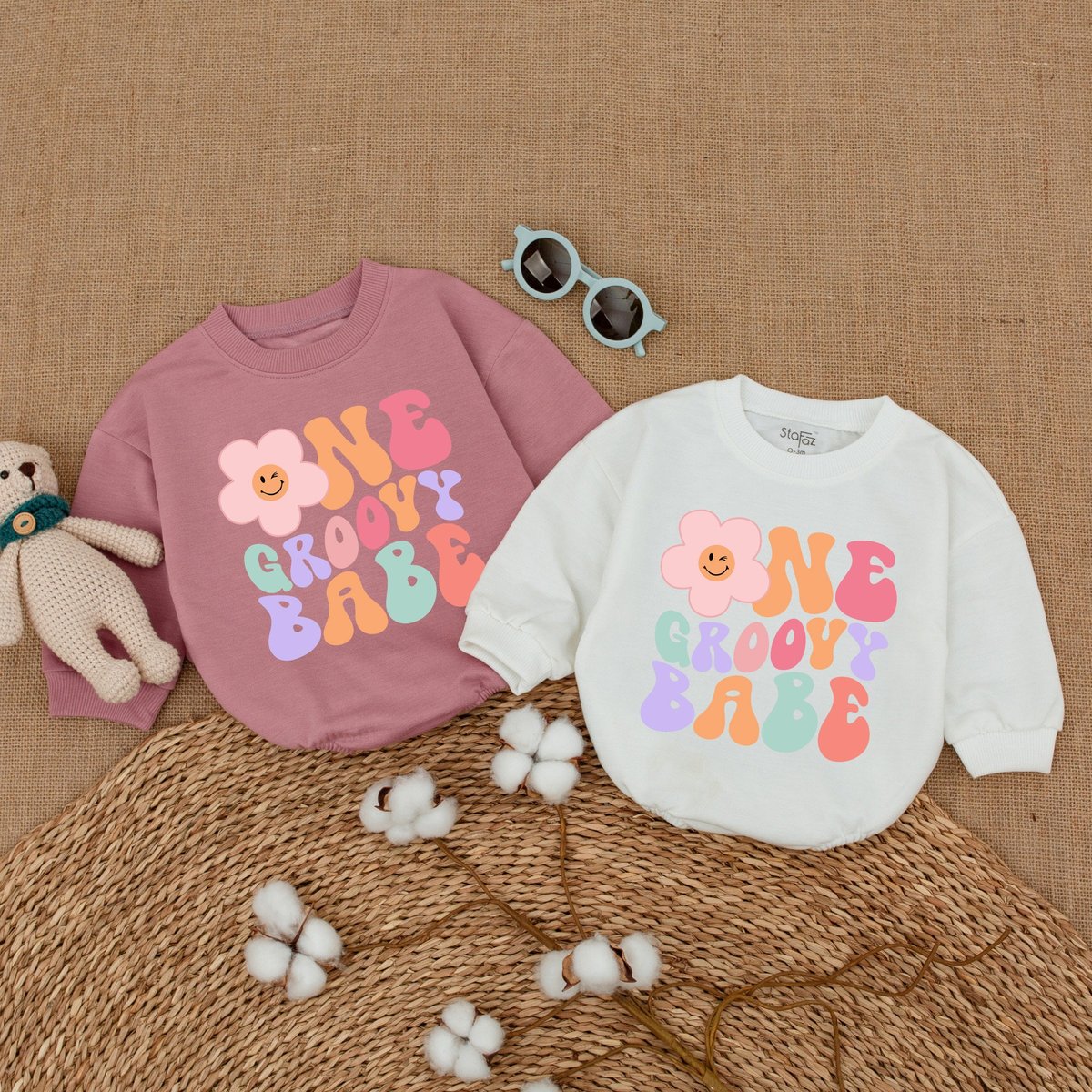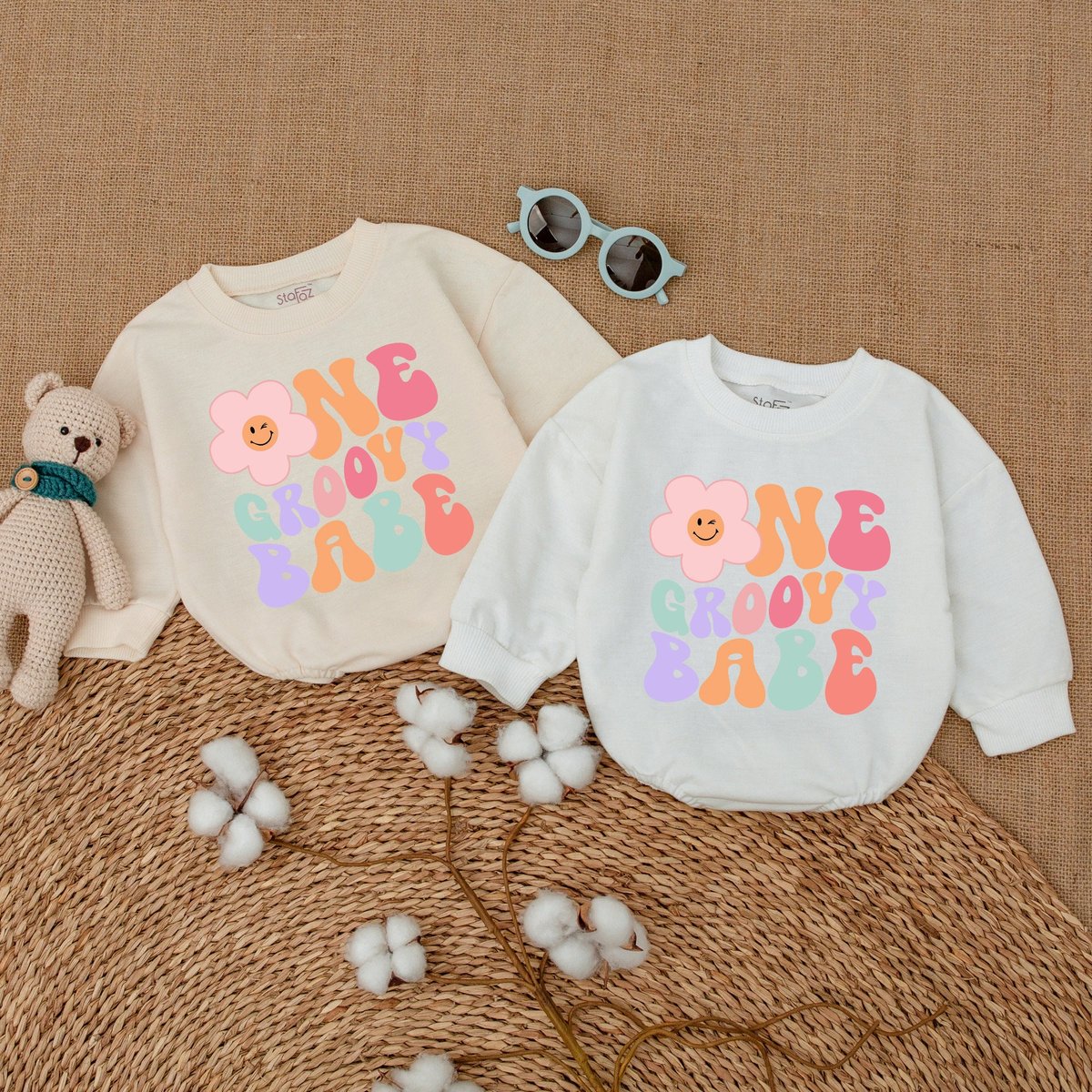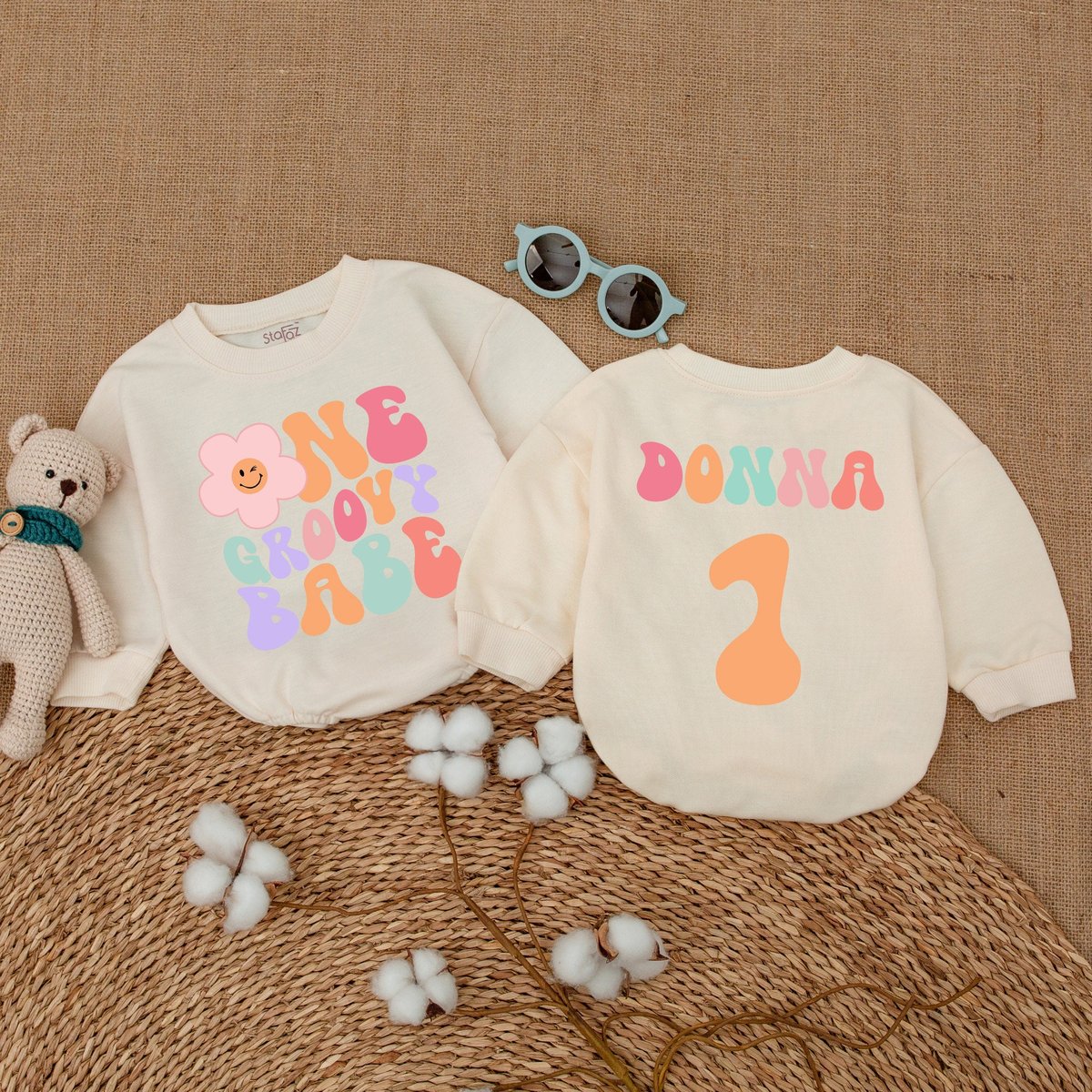 Personalized One Groovy Babe Birthday Romper Retro Hippie Birthday Bodysuit Baby Girl Birthday Smash 170