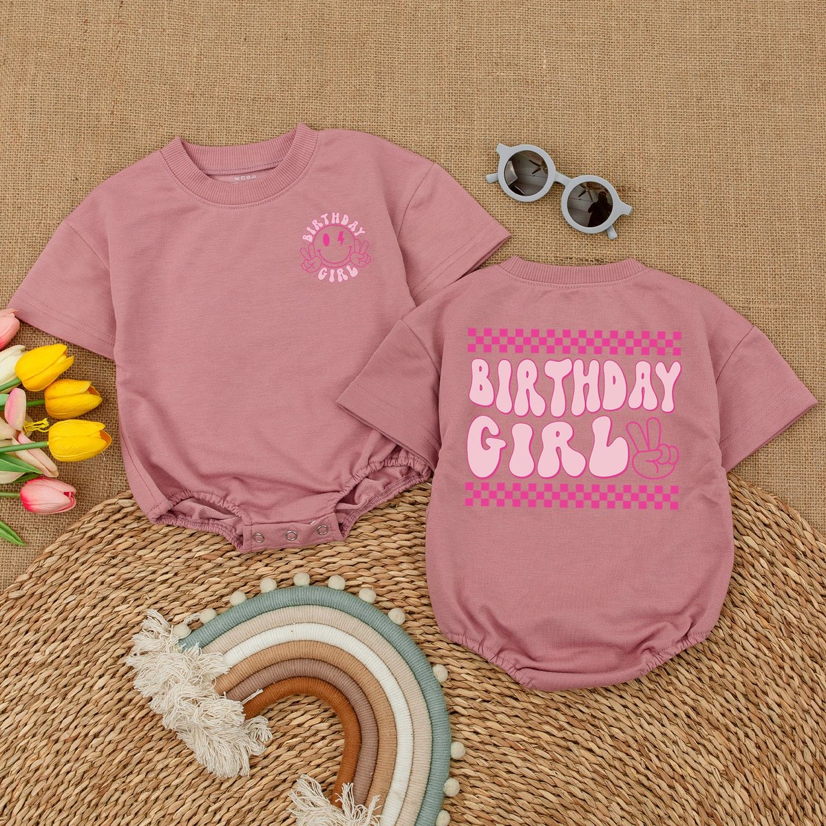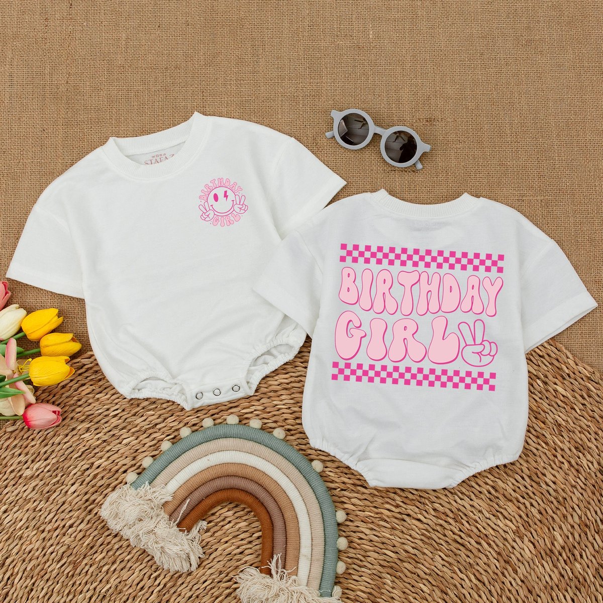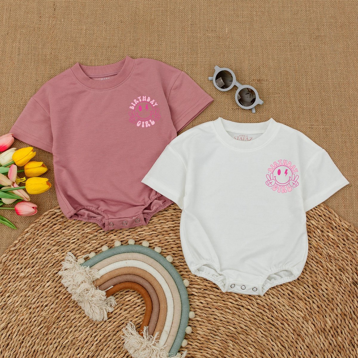Personalized One Happy Babe Romper Birthday Girl Smiley Face Bodysuit Matching Family Birthday First 172