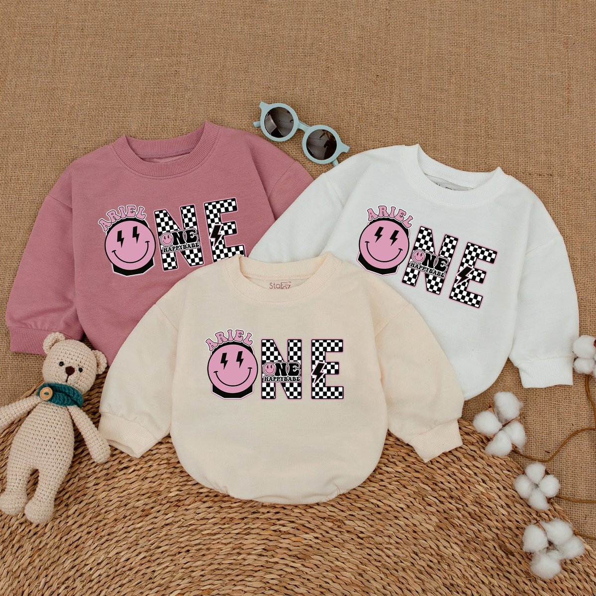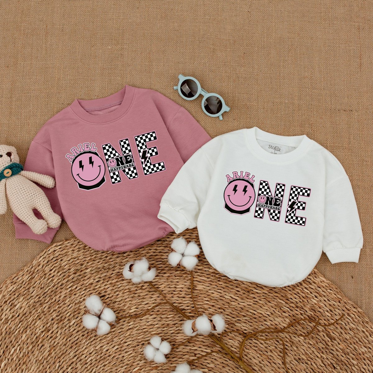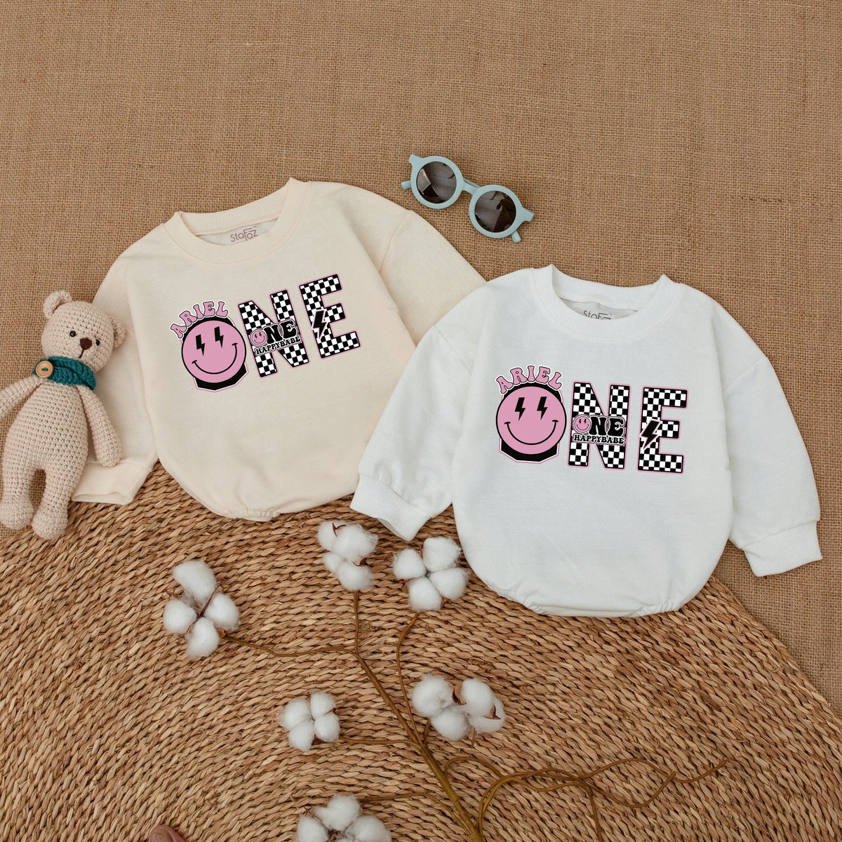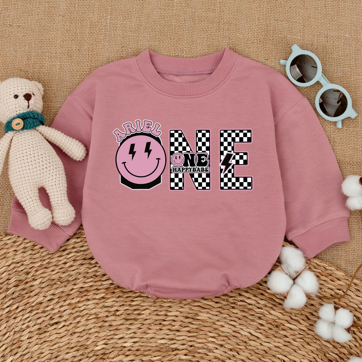 Personalized One Happy Babe Romper One Cool Dude Bodysuit Smiley Face Birthday Outfit Birthday Baby 169