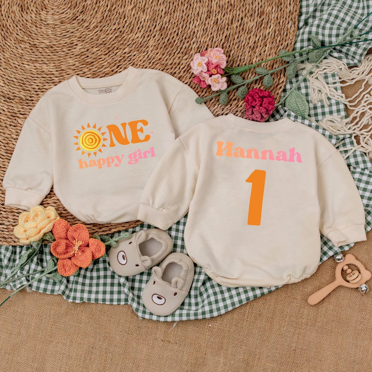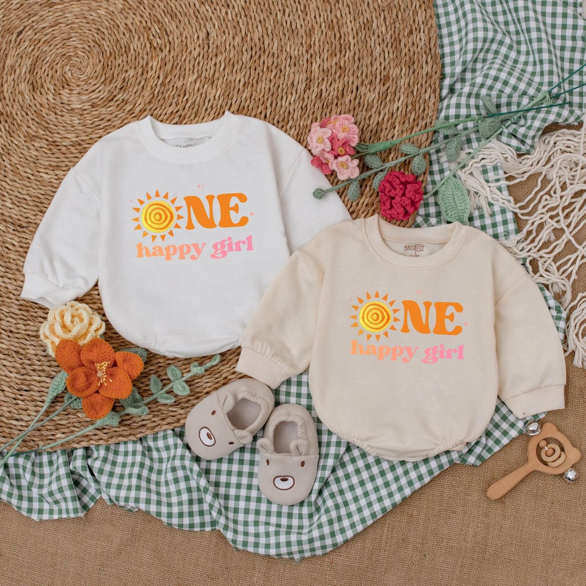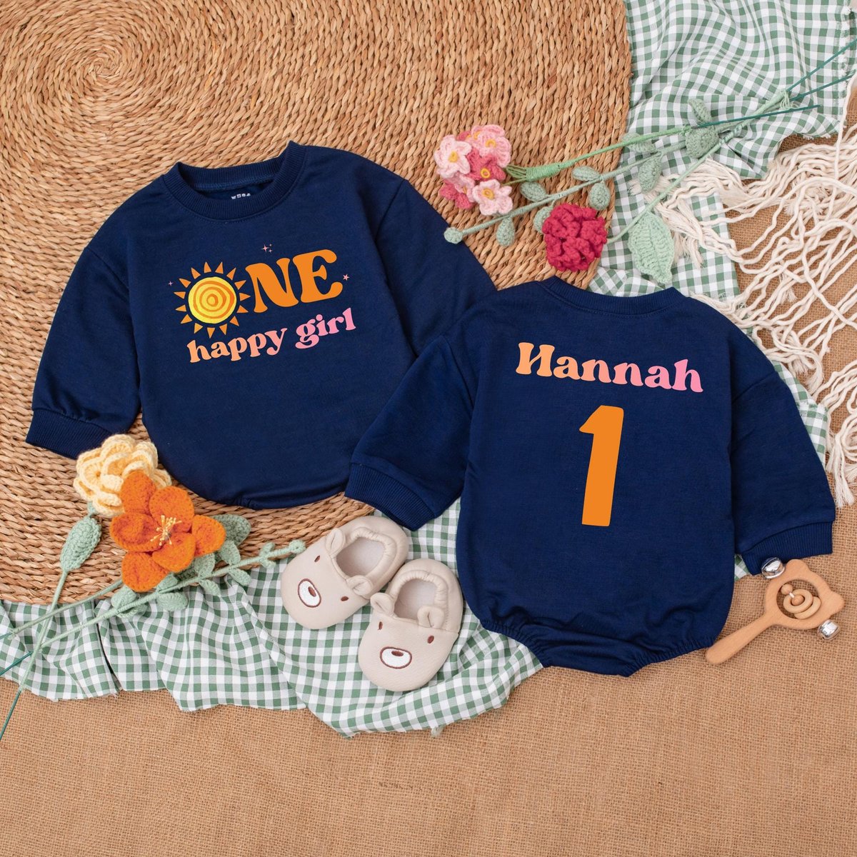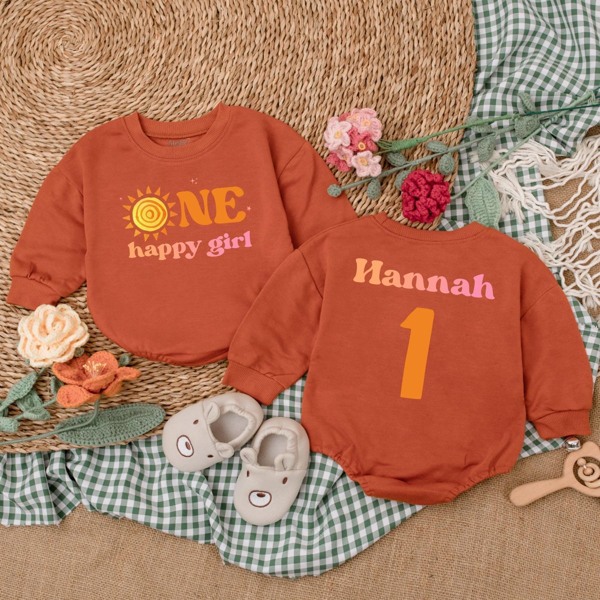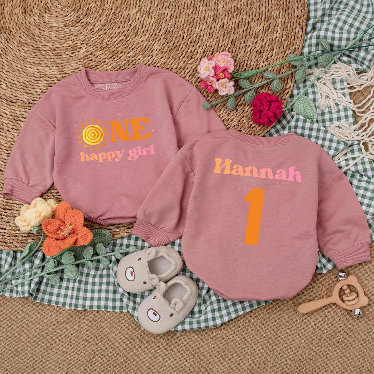 Personalized One Happy Girl Romper First Trip Around The Sun Little Sunshine Birthday Bodysuit Boho 183