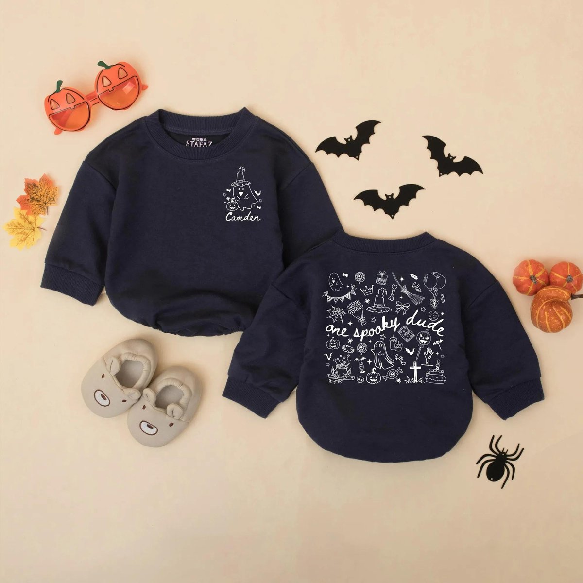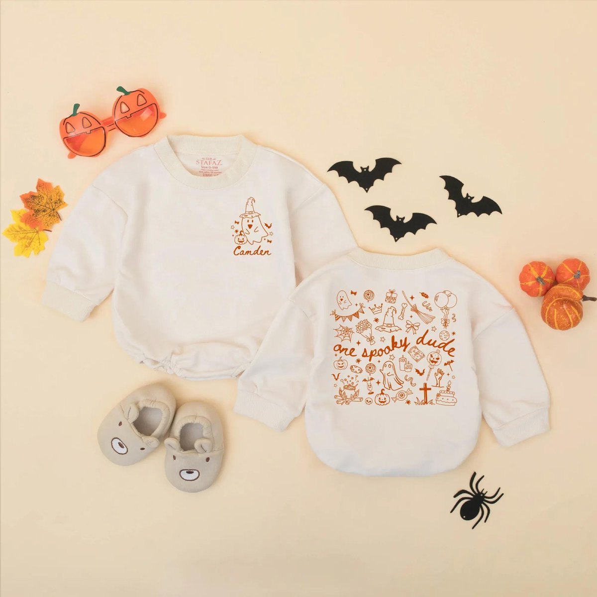 Personalized One Spooky Dude Baby Romper Halloween Birthday Bodysuit Custom Halloween Baby Outfit Fa 435