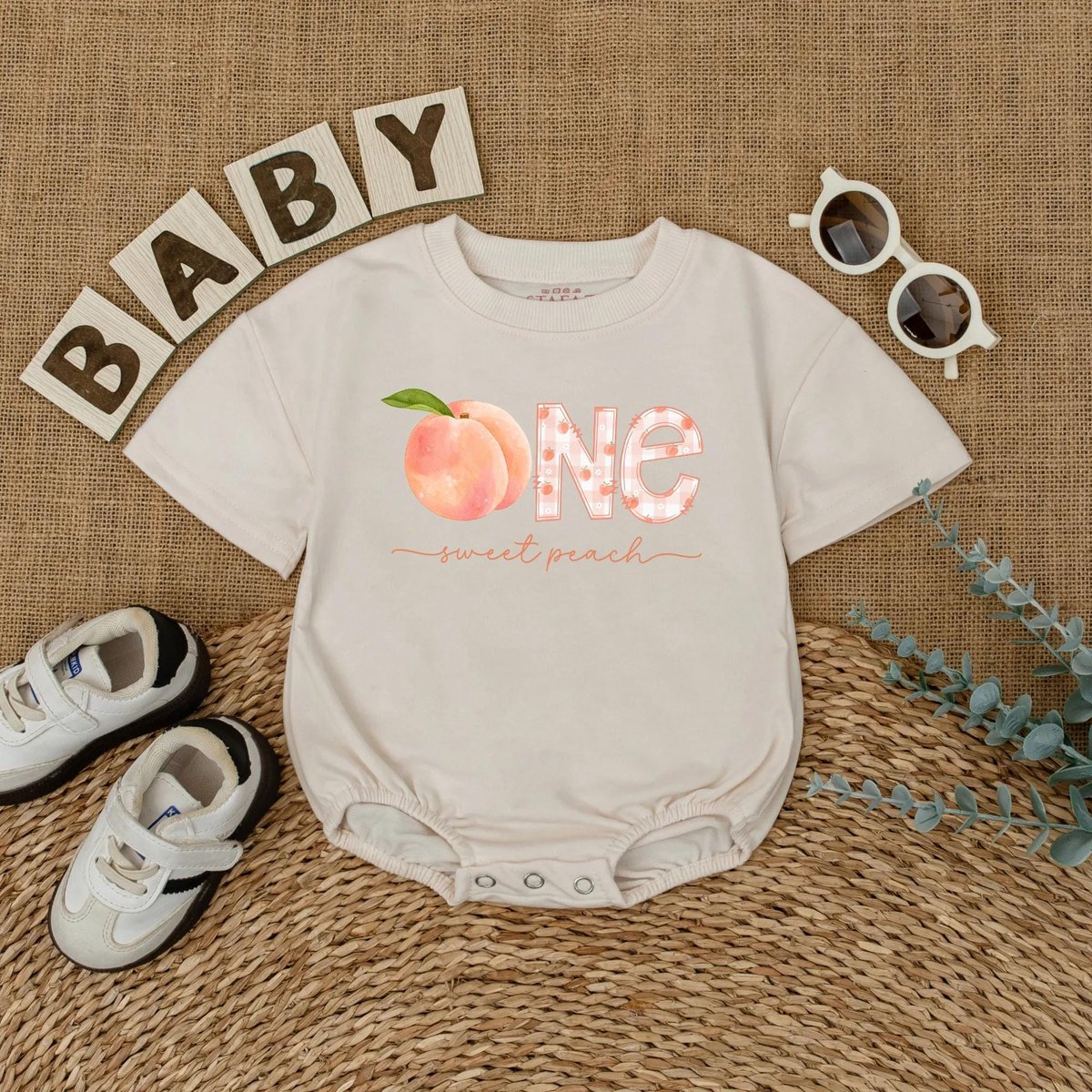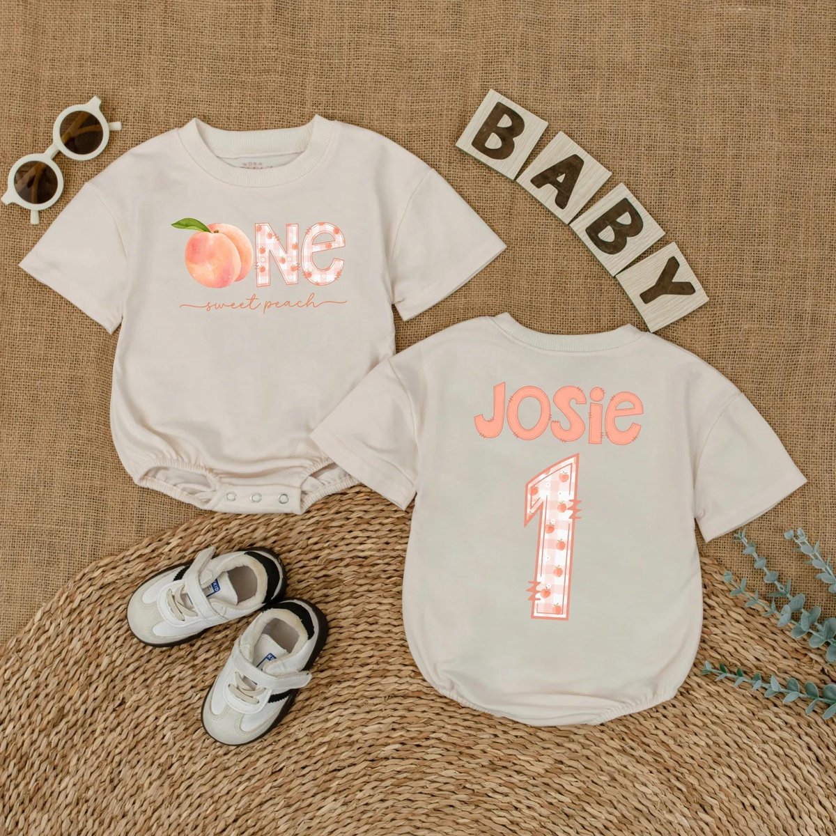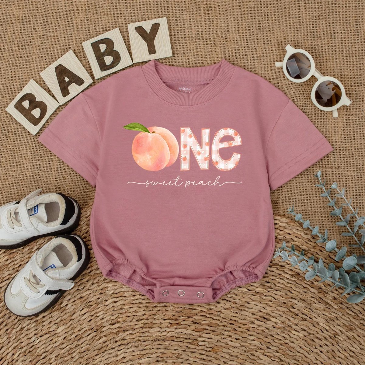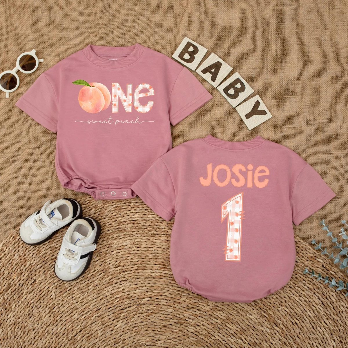 Personalized One Sweet Peach Birthday Romper One Little Peach Bodysuit Peach Birthday Party Short Sl 430