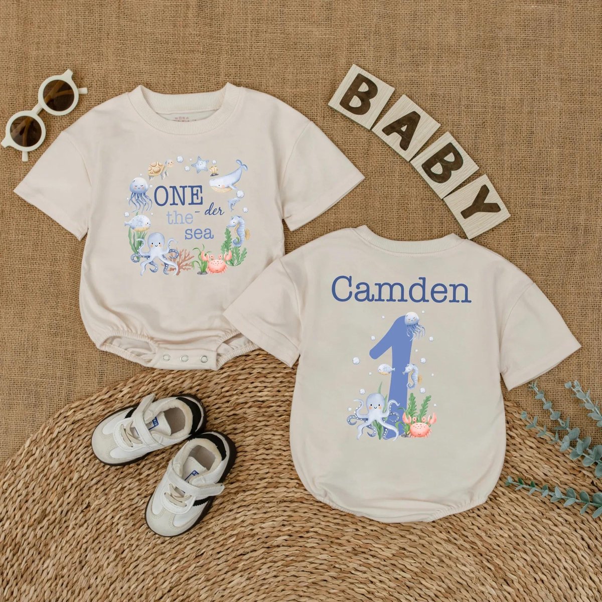 Personalized Oneder the Sea Birthday Romper Ocean Theme First Birthday Bubble Romper Boy Girl 1st Bi 434