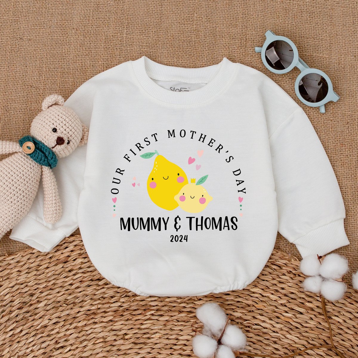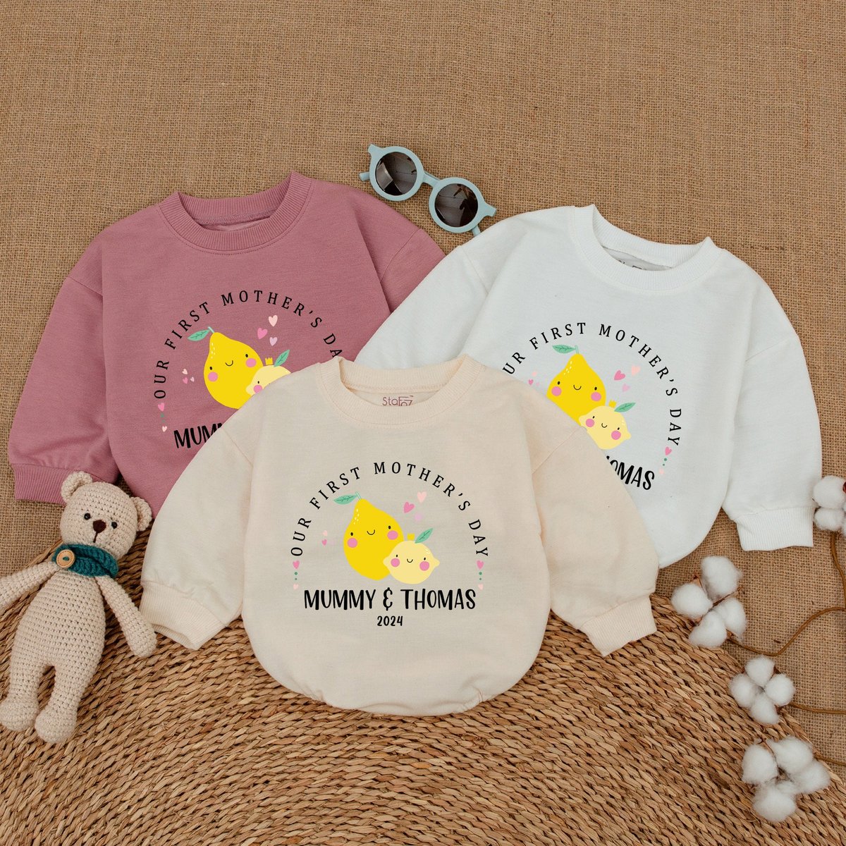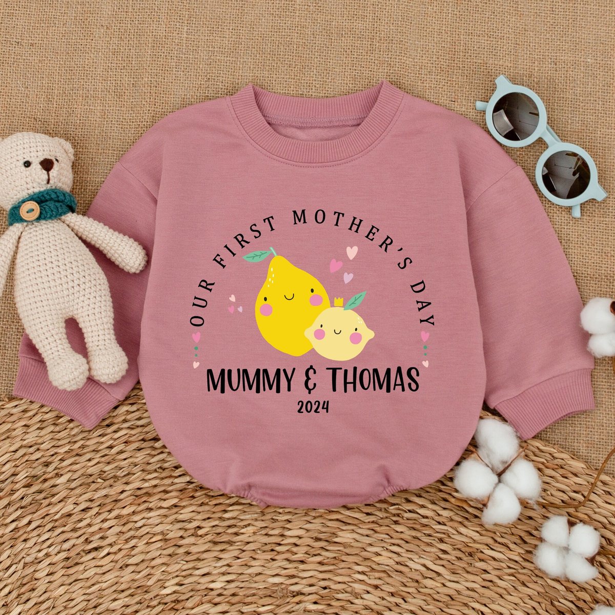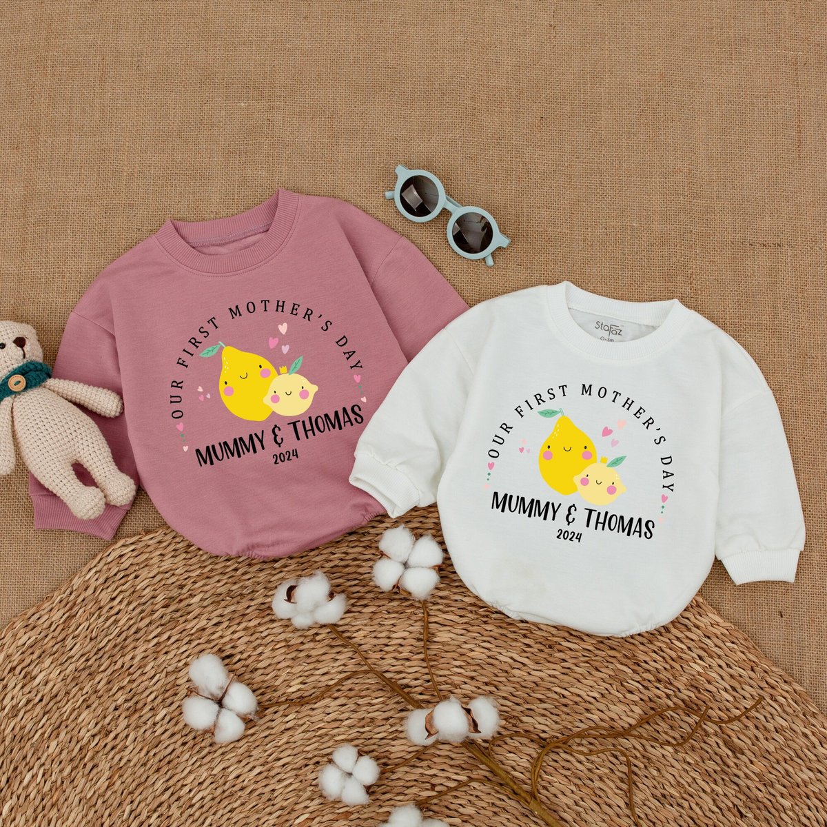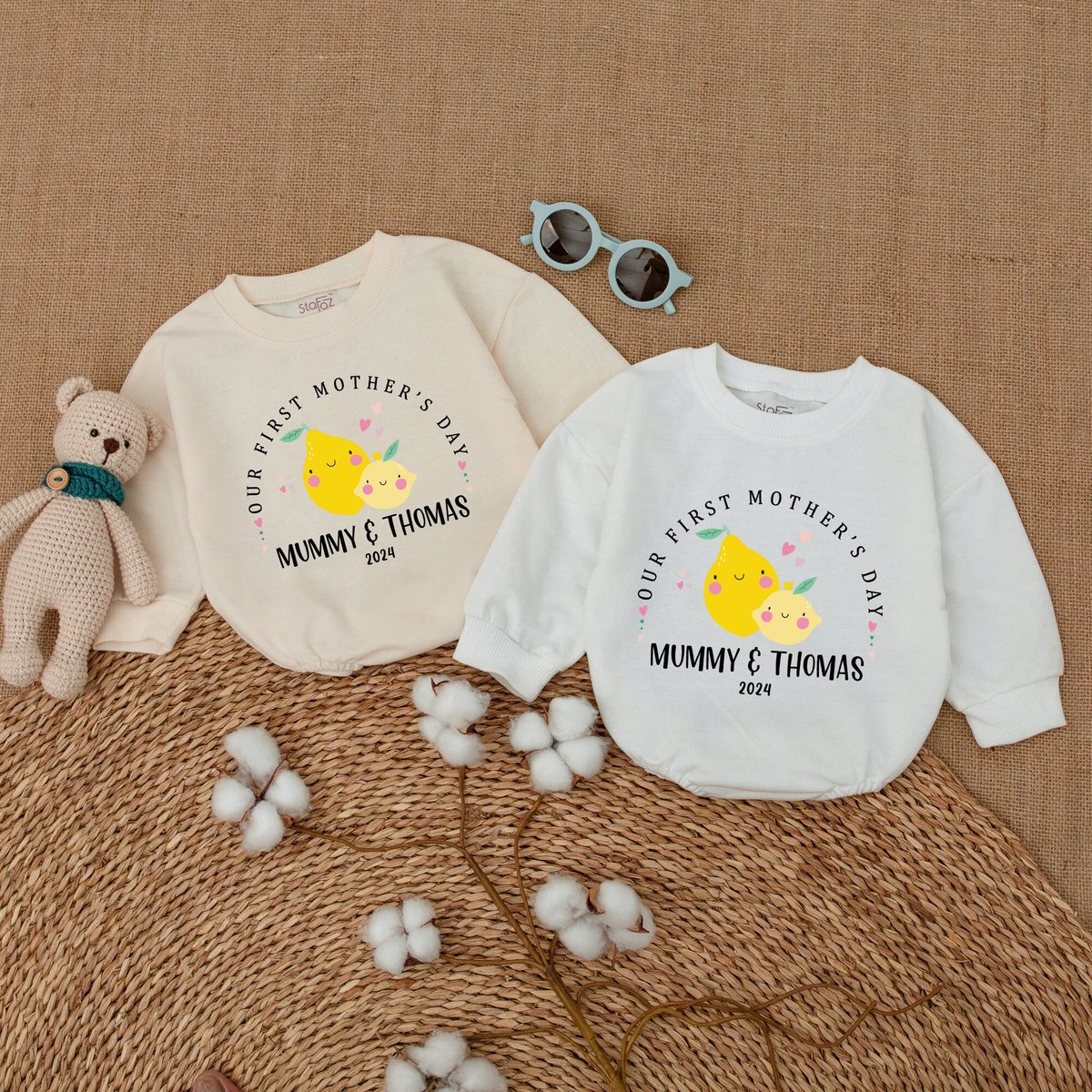 Personalized Our First Mother’s Day Bodysuit Cute Lemons Baby Romper Funny Mummy and Baby Gift Moth 171