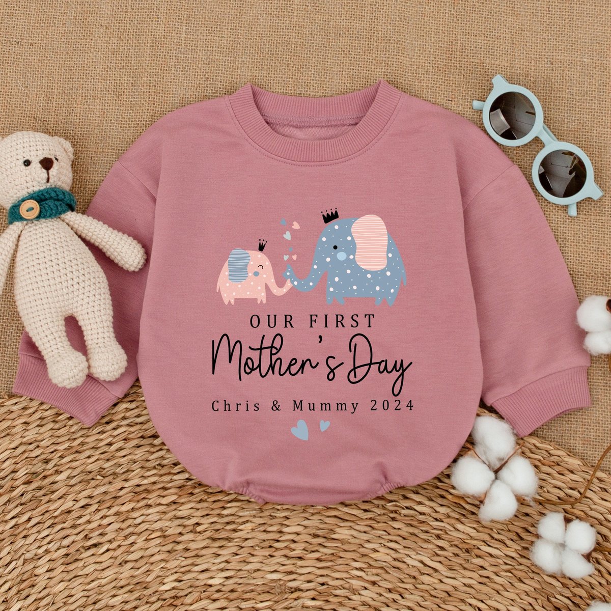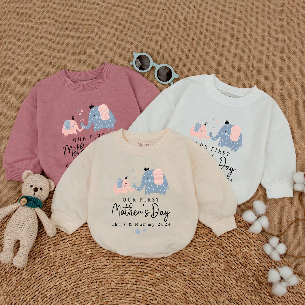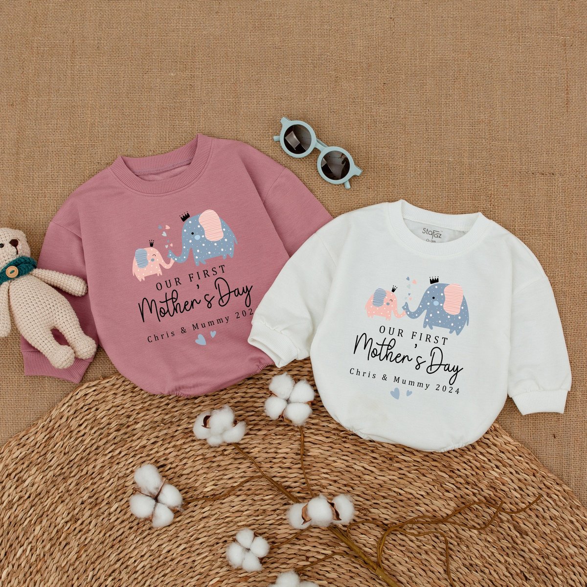 Personalized Our First Mother’s Day Romper Elephant Mom and Baby Bodysuit Happy First Mothers Day B 171