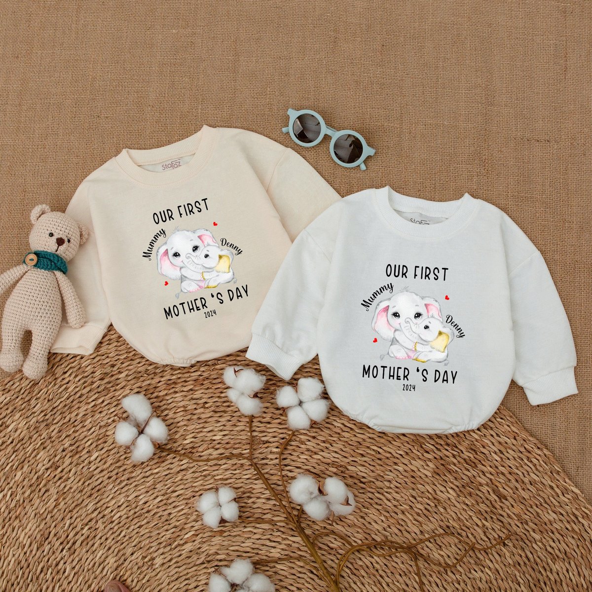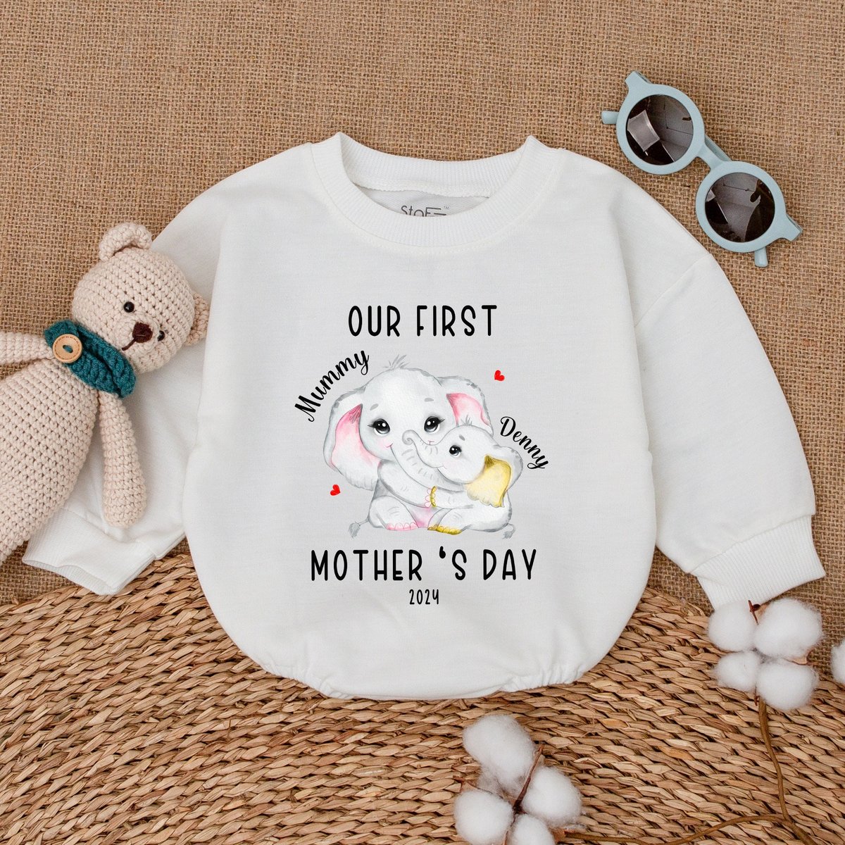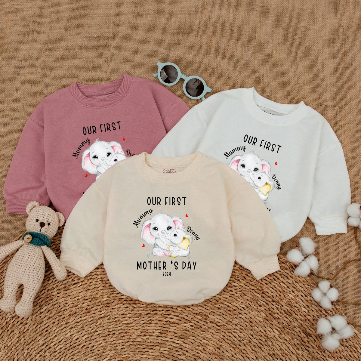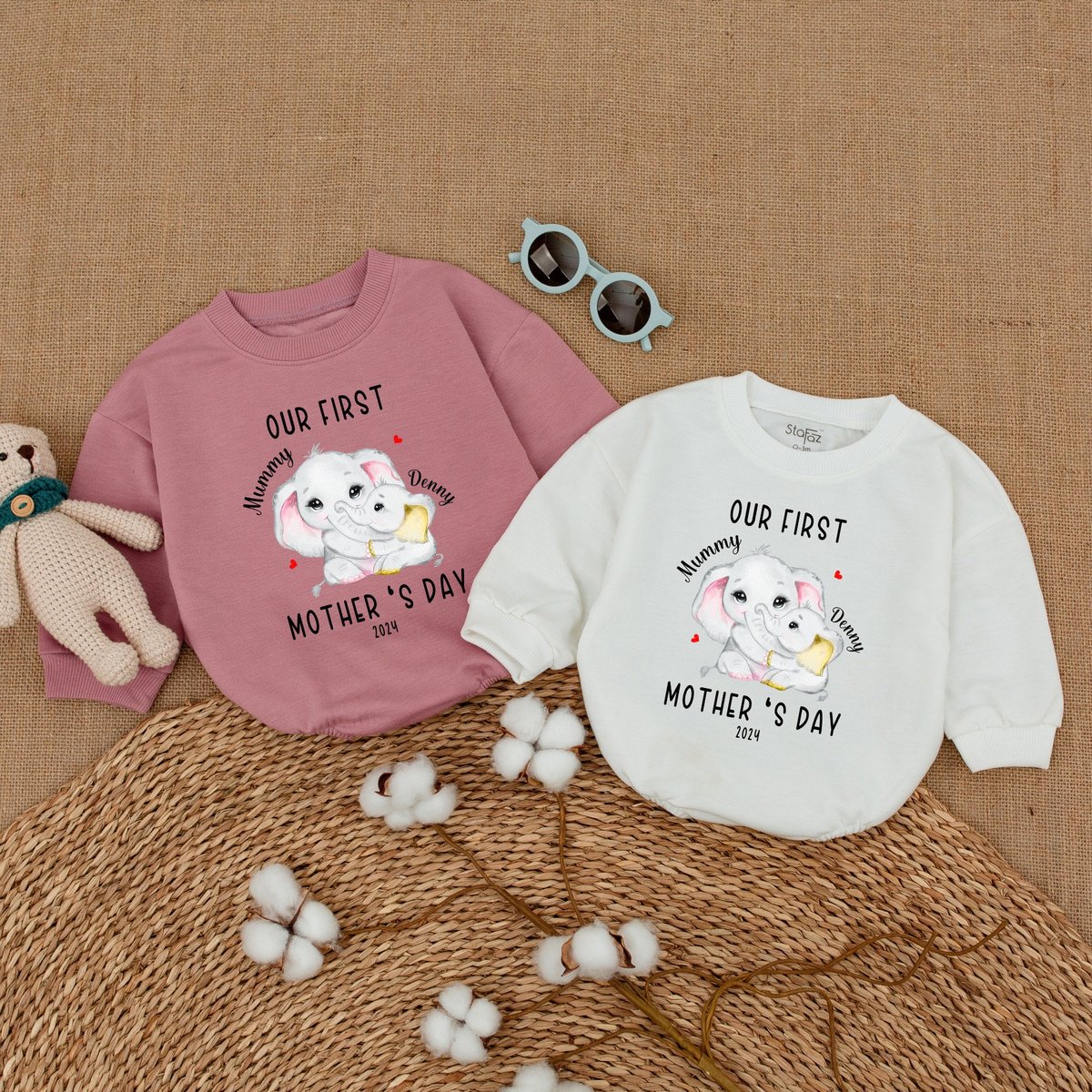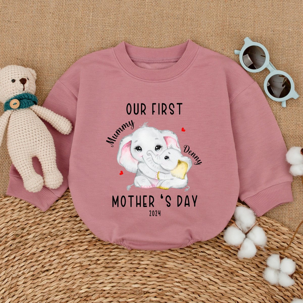 Personalized Our First Mother’s Day Romper Cute Elephants Bodysuit Mother’s Day Best Mom Ever Newb 171