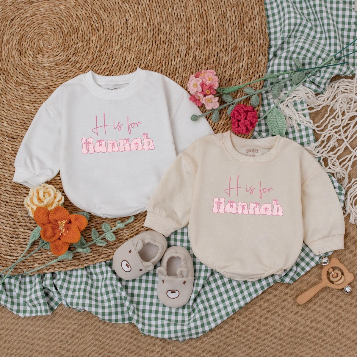 Personalized Pink Bow Baby Romper Cute Girly Baby Bodysuit Custom Name Baby Girl Outfit With Bow New 183