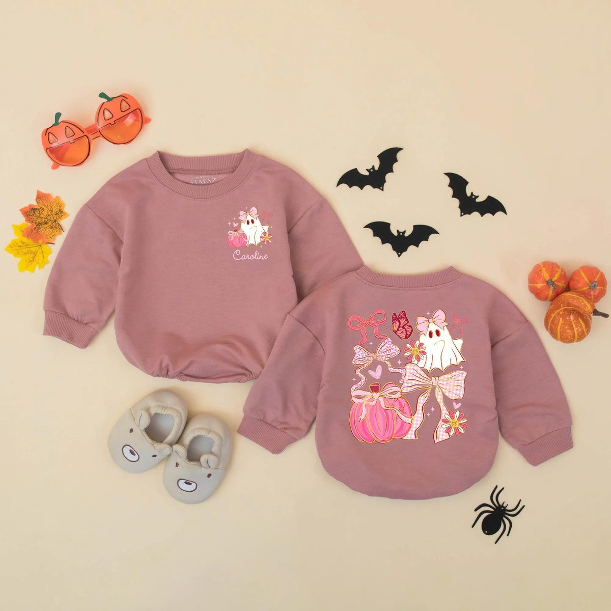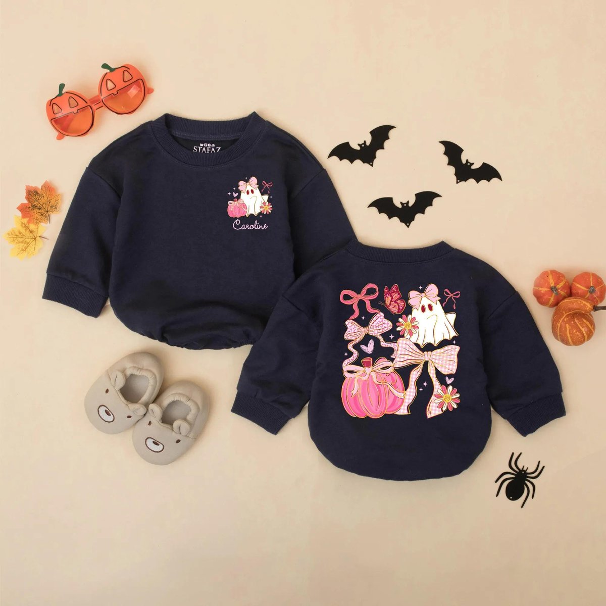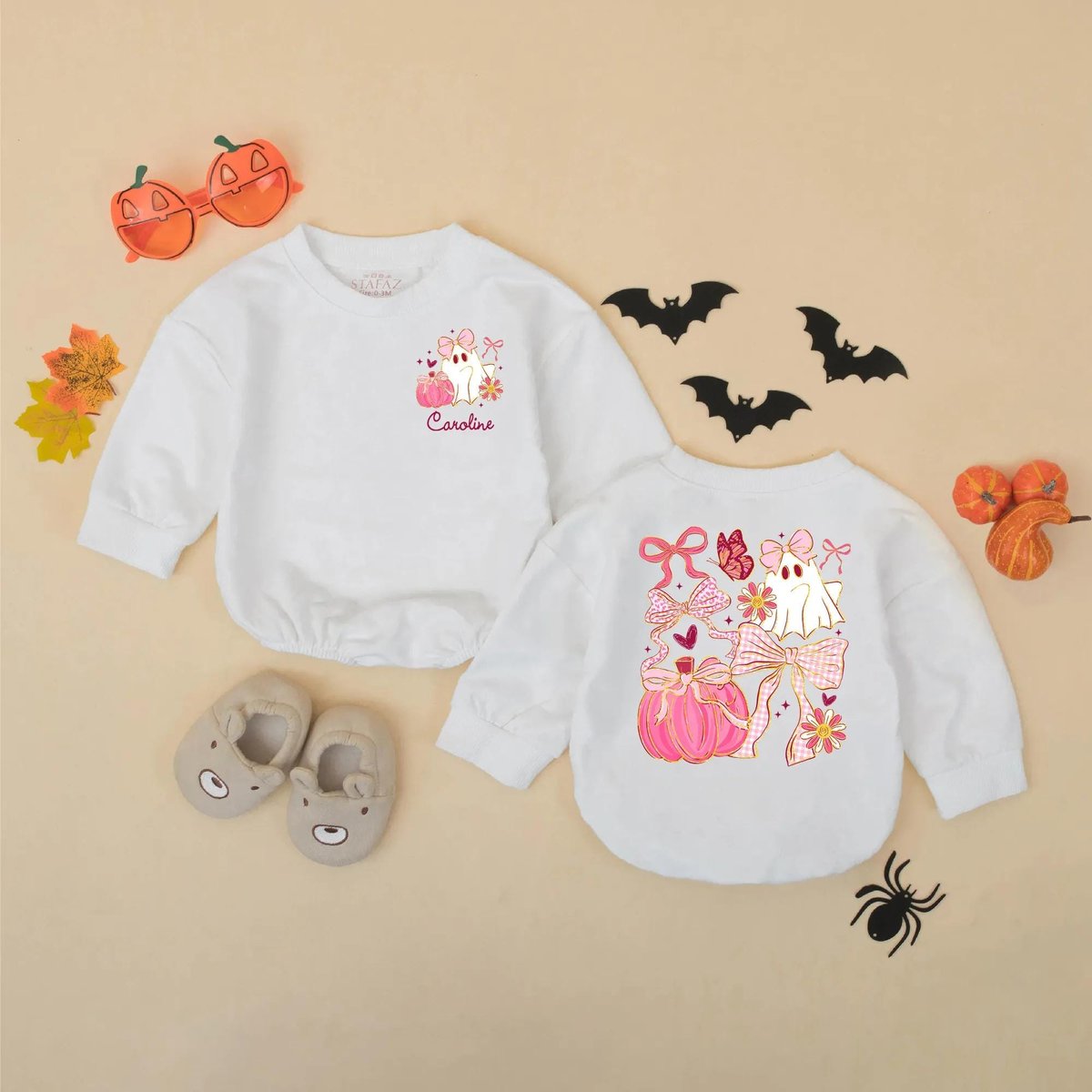 Personalized Pink Bow Ghost Baby Romper Cute First Halloween Baby Bodysuit Custom Name Baby Girl Hal 435